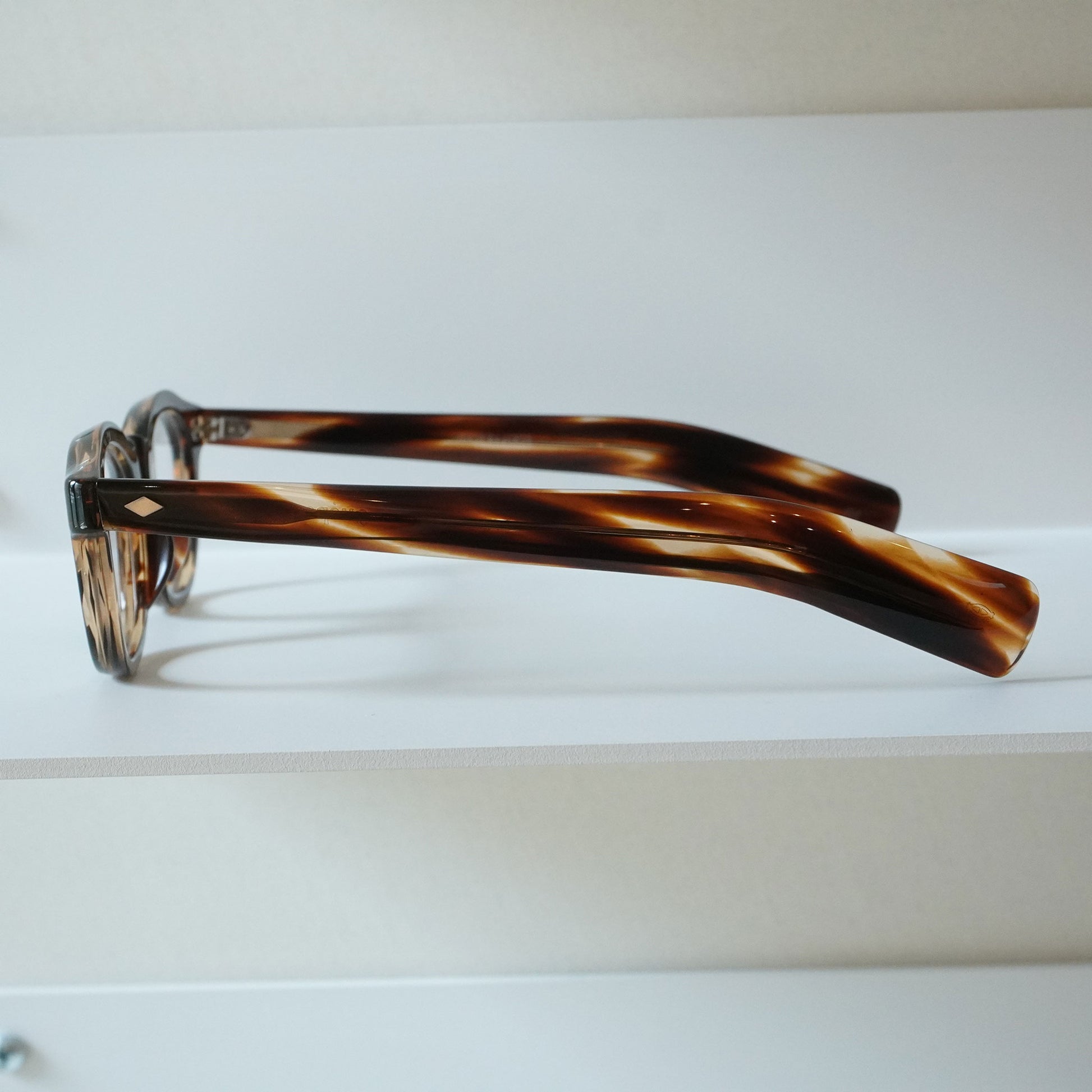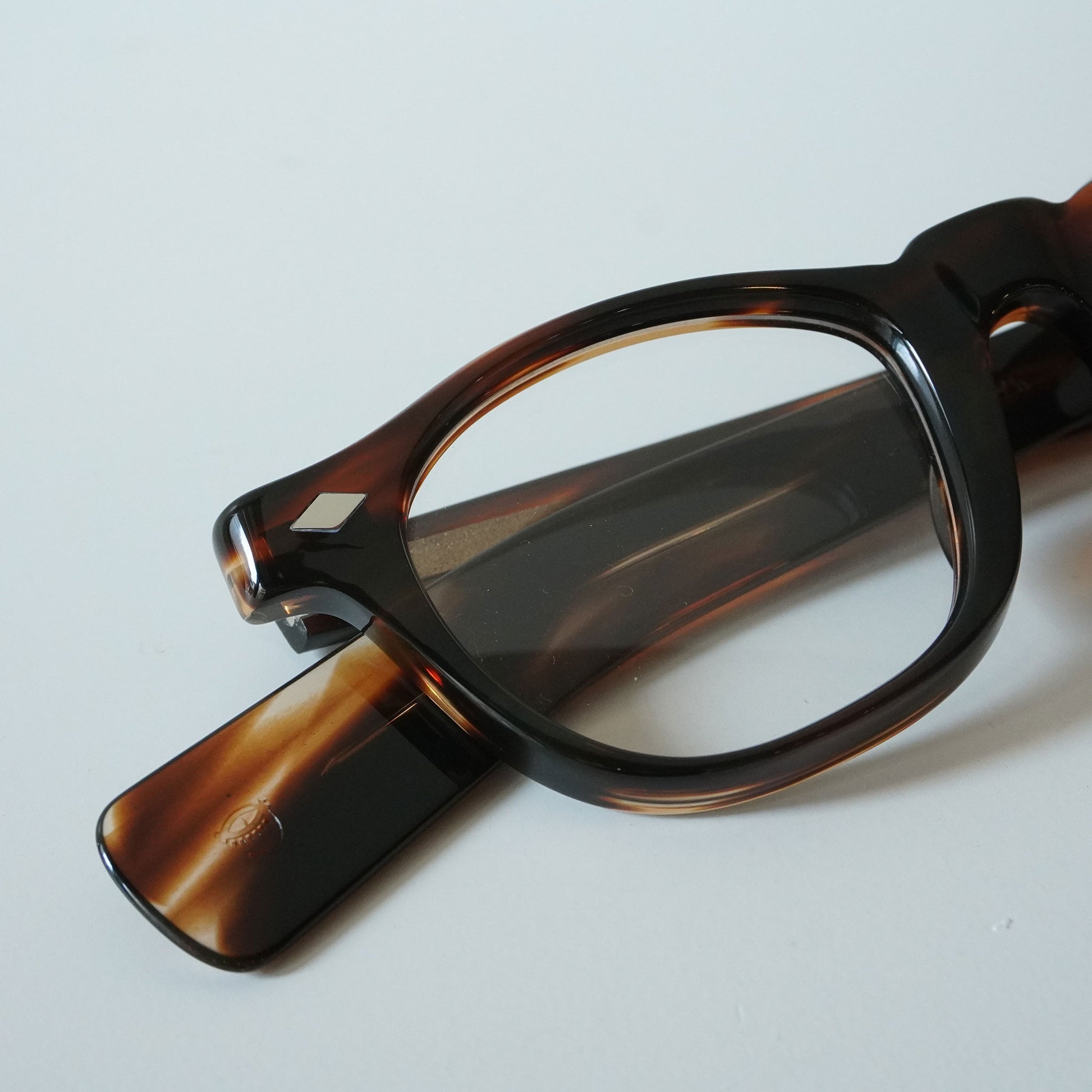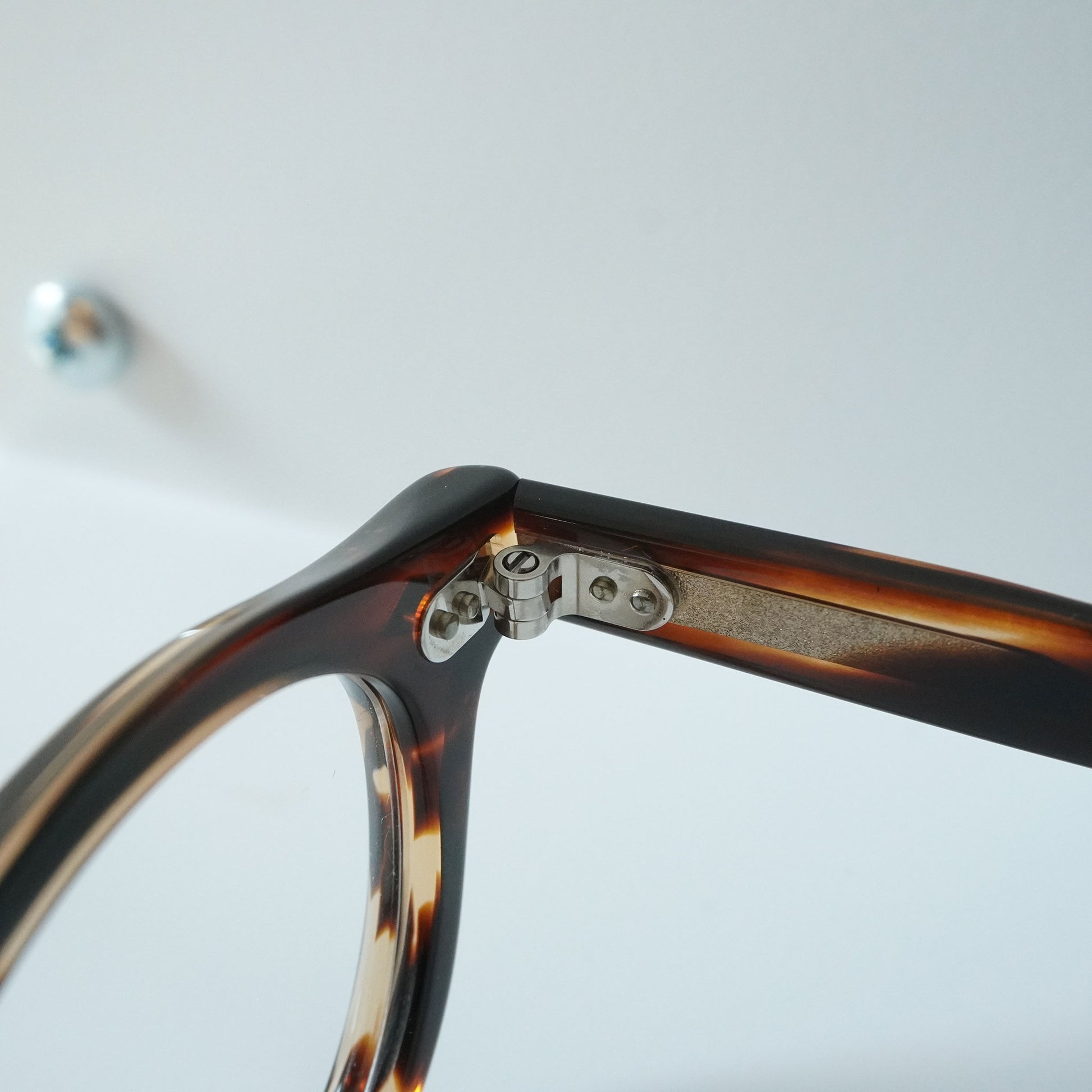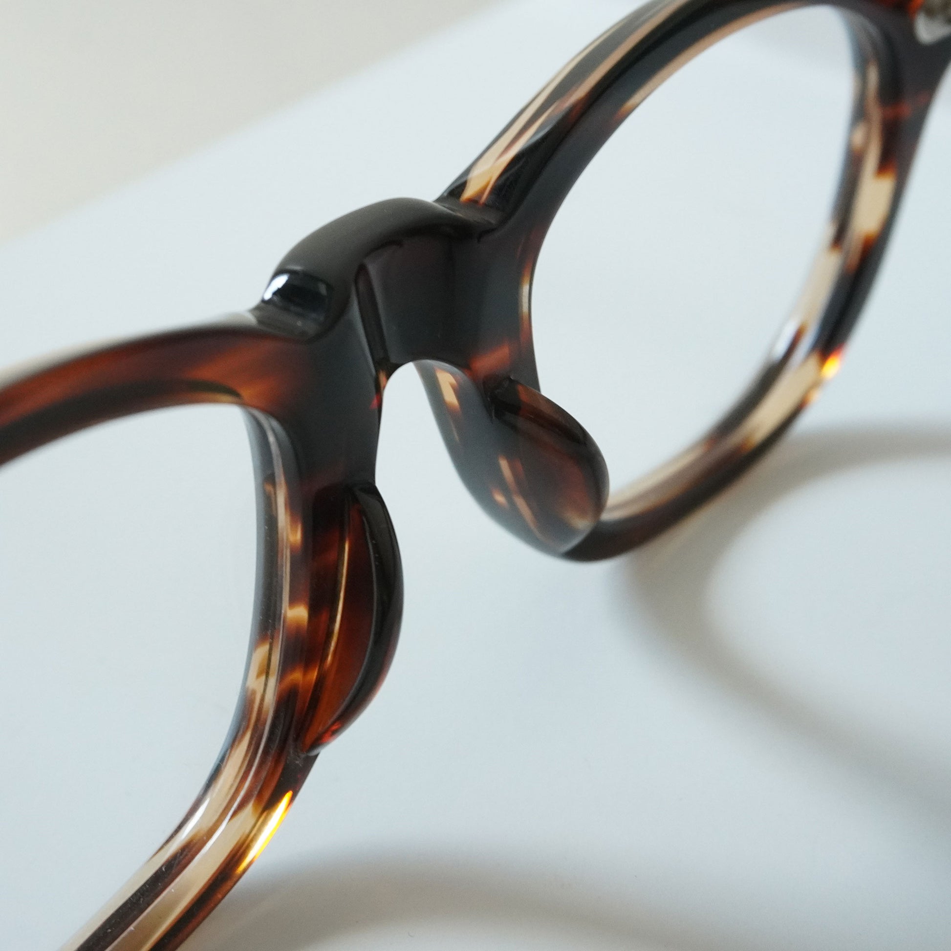 1960年代のヴィンテージ感あふれるカッティングと先にかけて極太になるテンプルが特徴的なモデル。当時、アメリカのブランドがフランスで製造していたモデルを忠実に再現。シェイプはアメリカンクラシックなウェリントン型。掛けやすいデザインとギュパールの中ではやや大きめのサイズ感、幅広い方にフィットする待望のモデル。