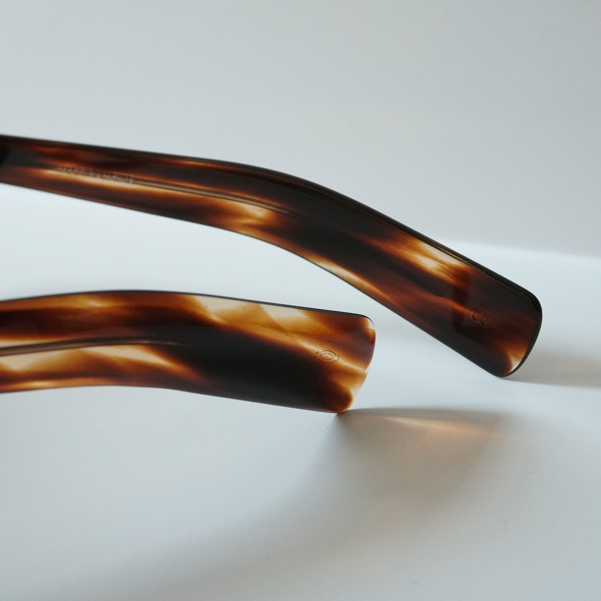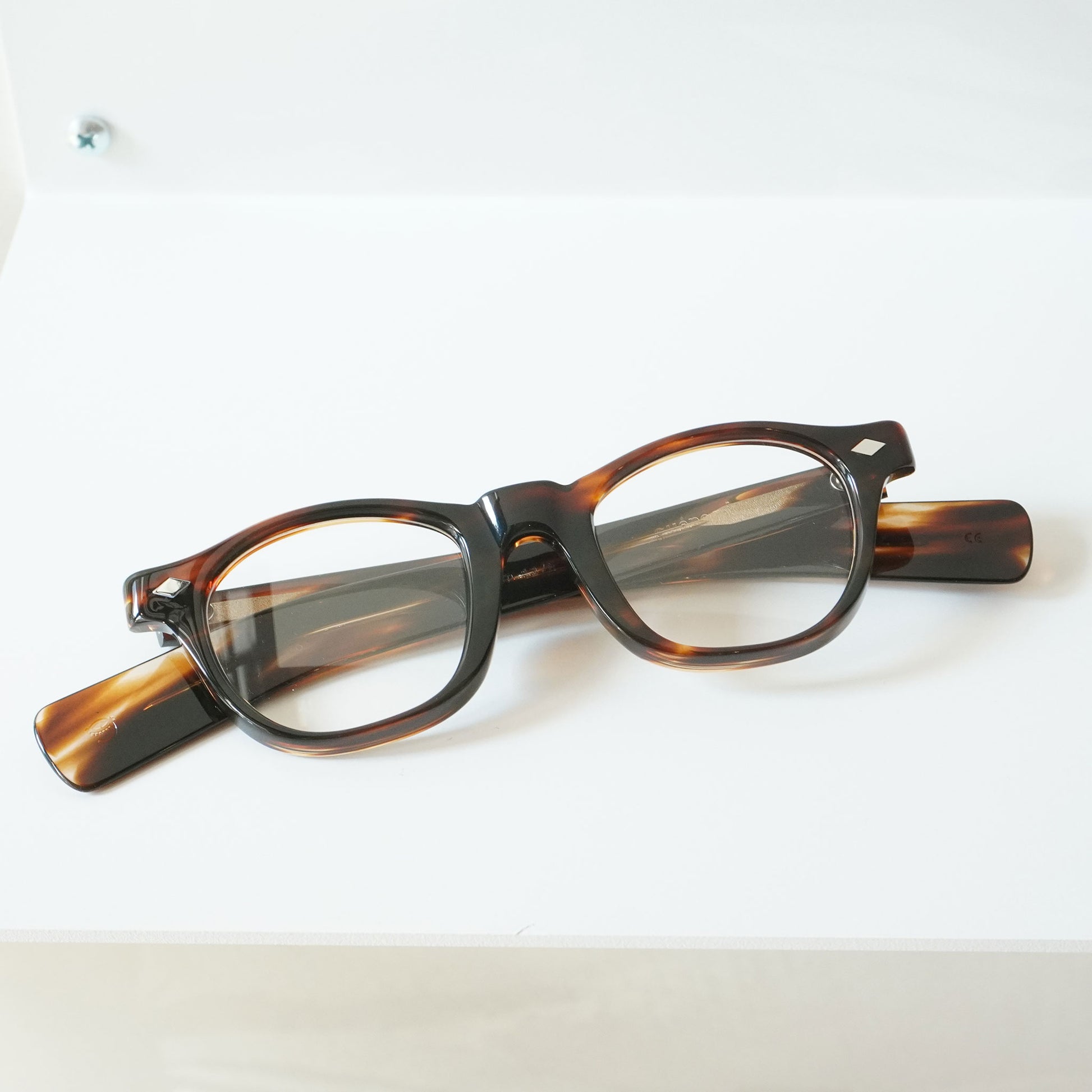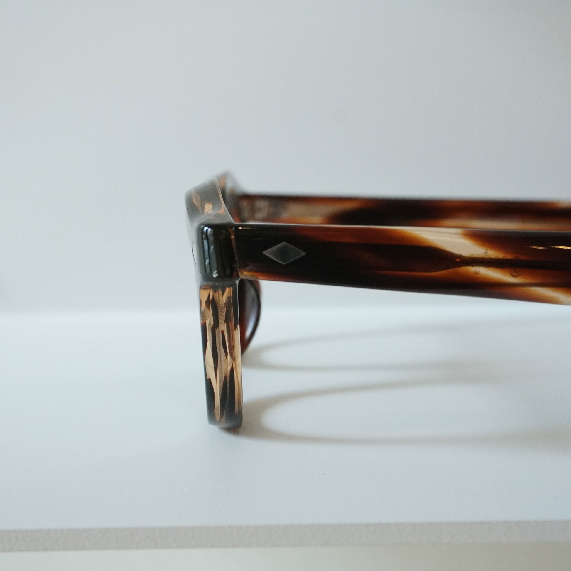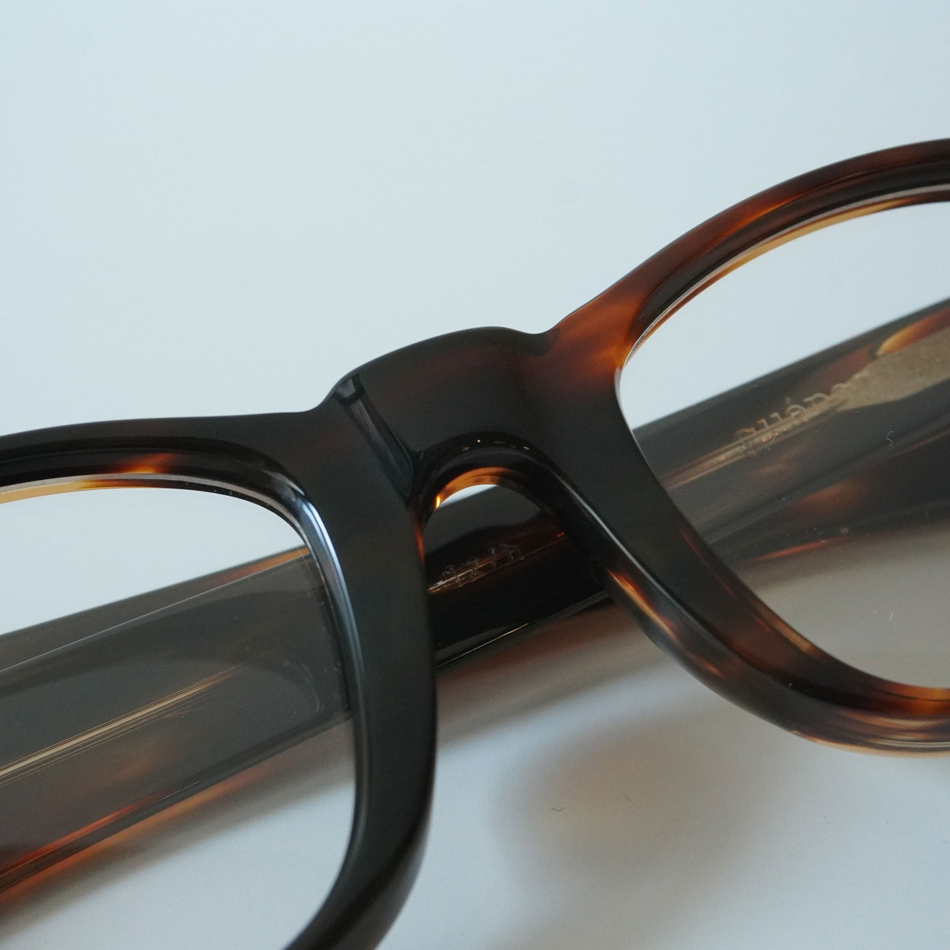 1960年代のヴィンテージ感あふれるカッティングと先にかけて極太になるテンプルが特徴的なモデル。当時、アメリカのブランドがフランスで製造していたモデルを忠実に再現。シェイプはアメリカンクラシックなウェリントン型。掛けやすいデザインとギュパールの中ではやや大きめのサイズ感、幅広い方にフィットする待望のモデル。
