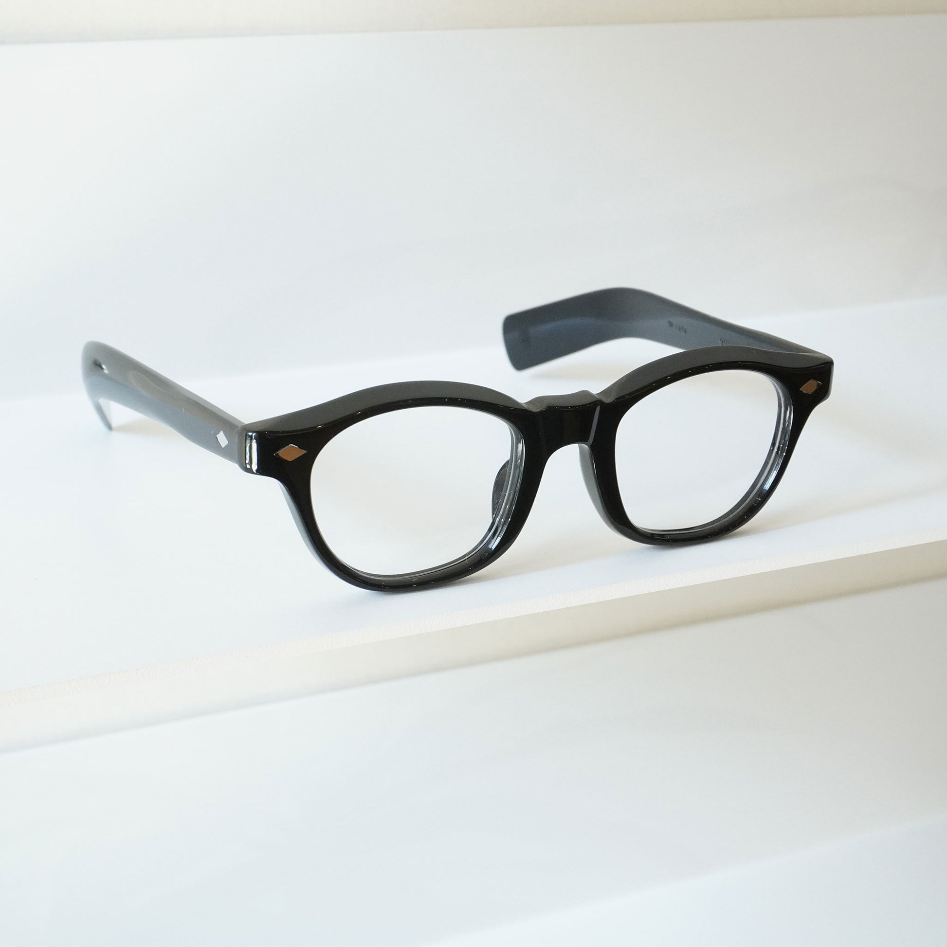 1960年代のヴィンテージ感あふれるカッティングと先にかけて極太になるテンプルが特徴的なモデル。当時、アメリカのブランドがフランスで製造していたモデルを忠実に再現。シェイプはアメリカンクラシックなウェリントン型。掛けやすいデザインとギュパールの中ではやや大きめのサイズ感、幅広い方にフィットする待望のモデル。