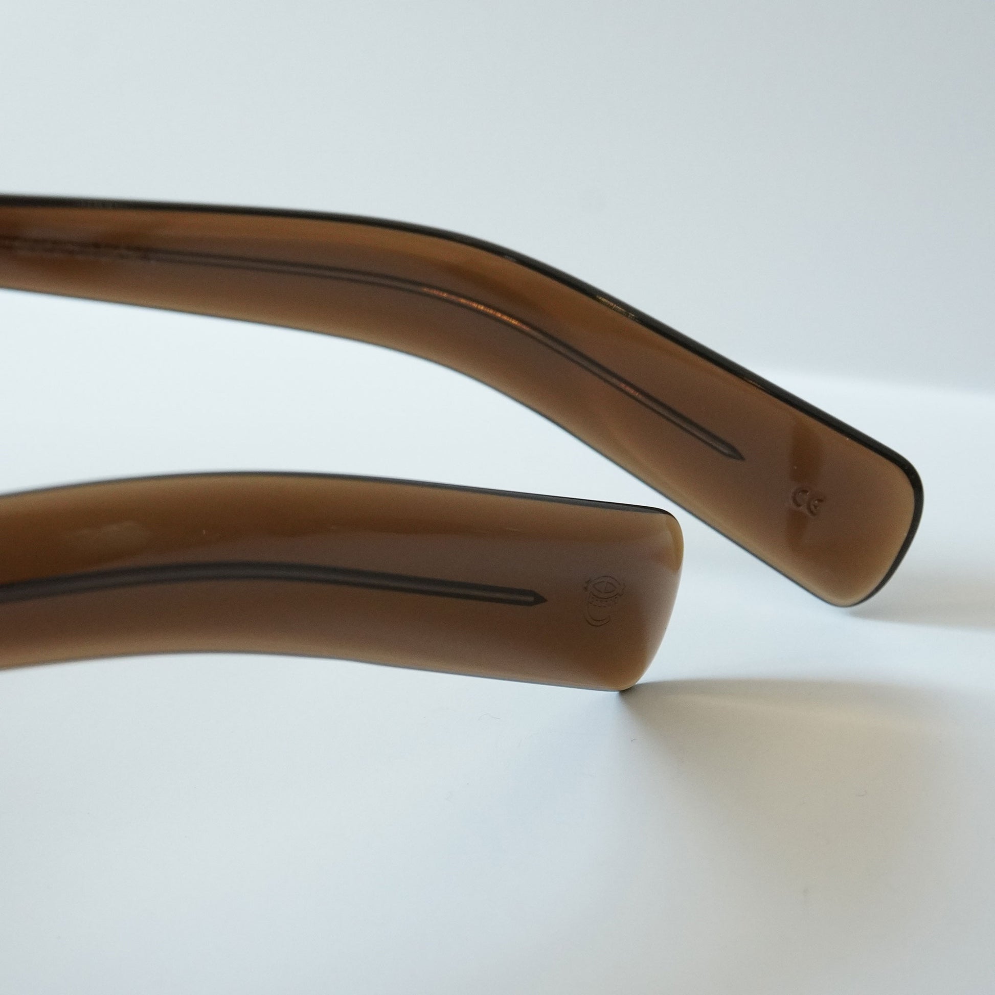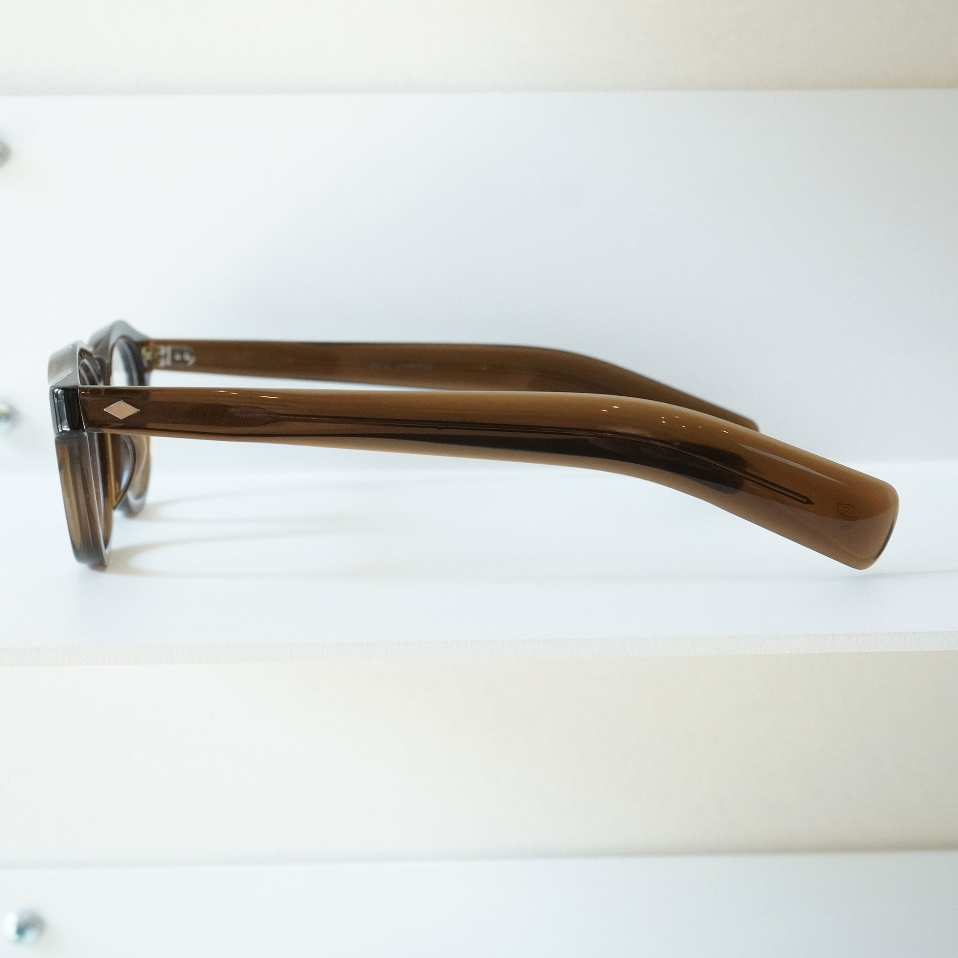 1960年代のヴィンテージ感あふれるカッティングと先にかけて極太になるテンプルが特徴的なモデル。当時、アメリカのブランドがフランスで製造していたモデルを忠実に再現。シェイプはアメリカンクラシックなウェリントン型。掛けやすいデザインとギュパールの中ではやや大きめのサイズ感、幅広い方にフィットする待望のモデル。