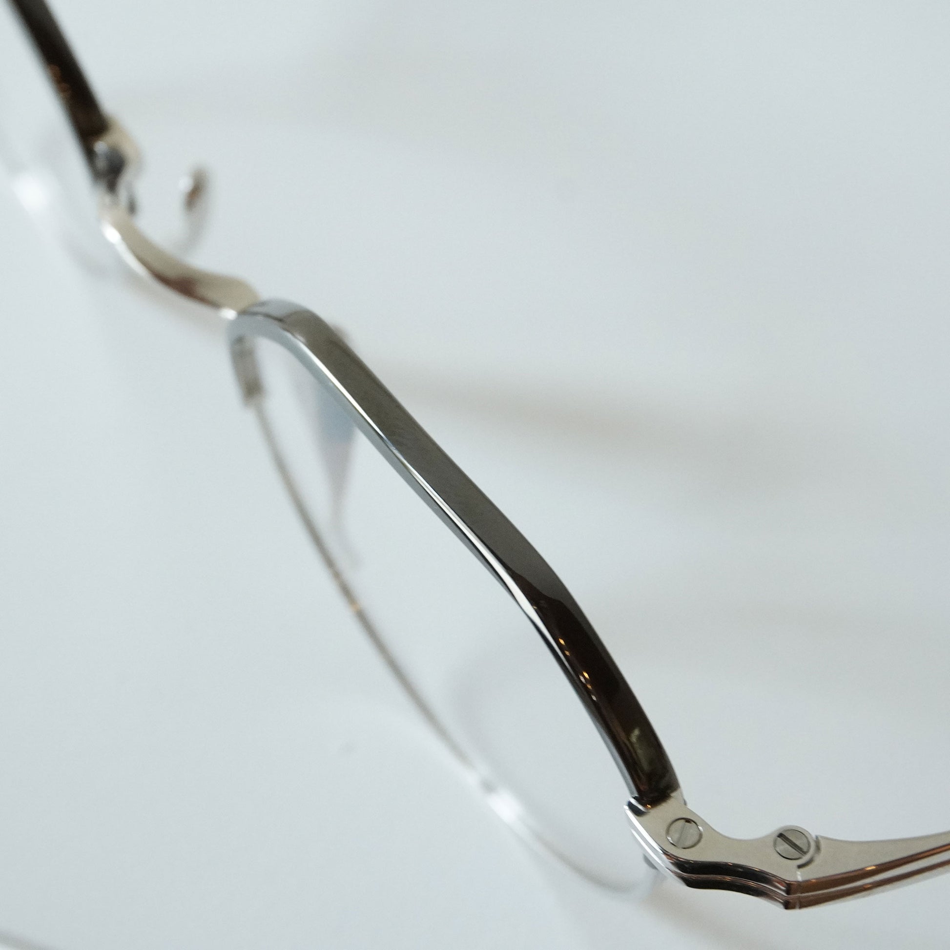 クラウンパントシェイプの上品なモデル。上部はメッキ塗装をしカラーの違いを楽しめるブローのようなデザインになっています。クラシックなデザインですが、やや大きめのサイズ感が今の時代に合うモデルです。