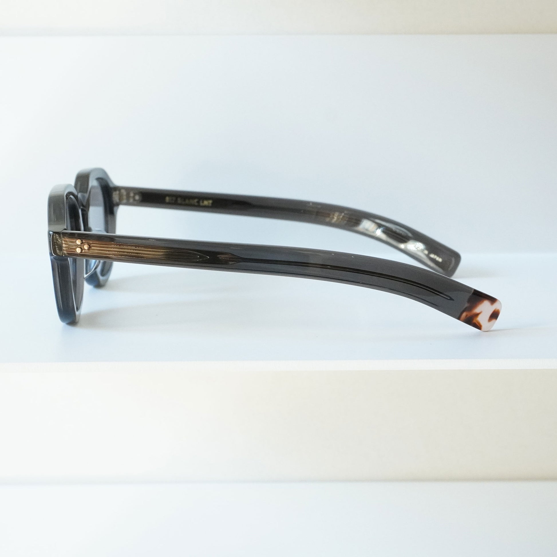 BLANC は仏語で " 白 " を表し、何色にでも染まることができるピュアでシンプルなイメージと、絵画で「光」・「光沢」などを表現するときに白い絵の具を使うところから名付けられた。ブランドシグニチャーは左テンプルエンドのサイン。