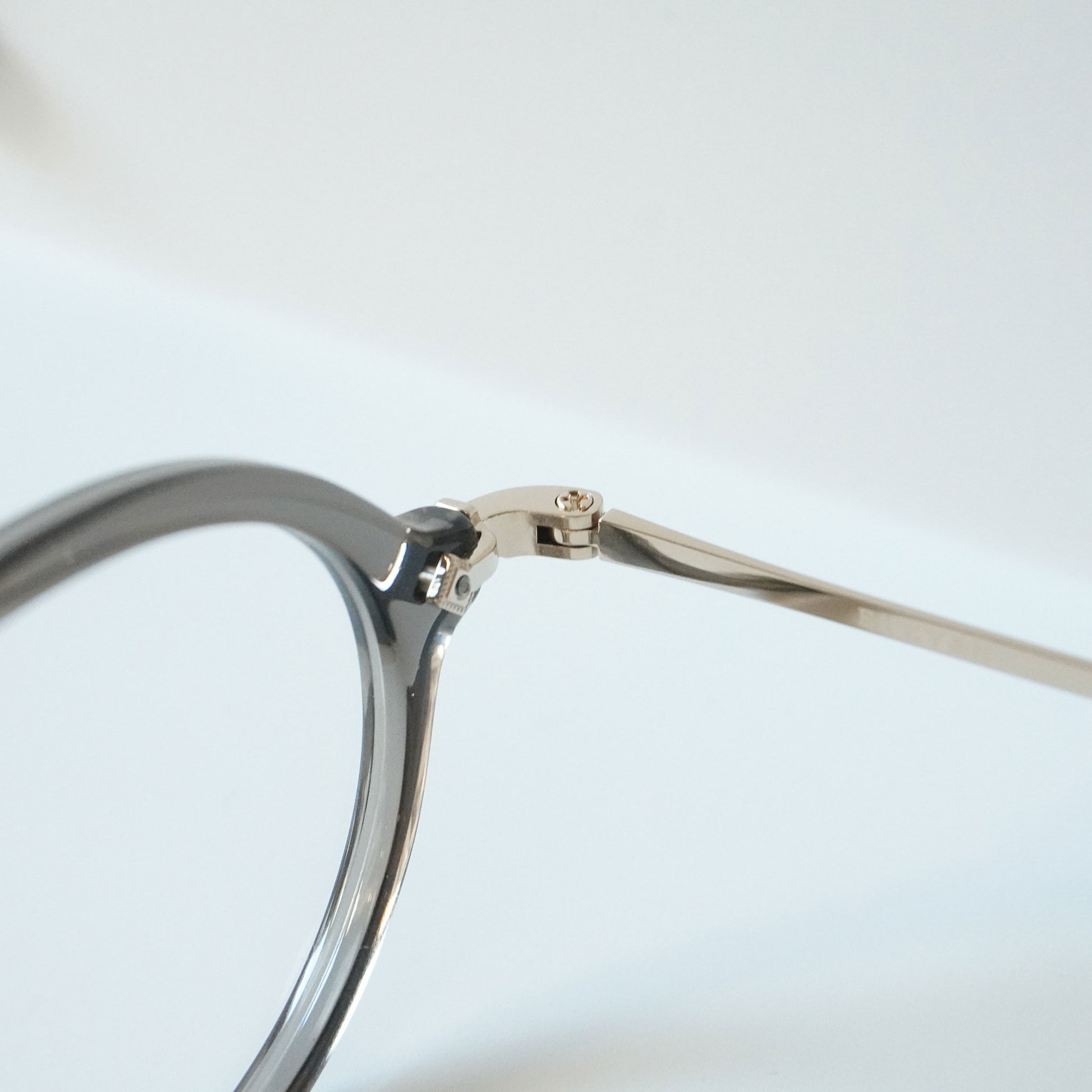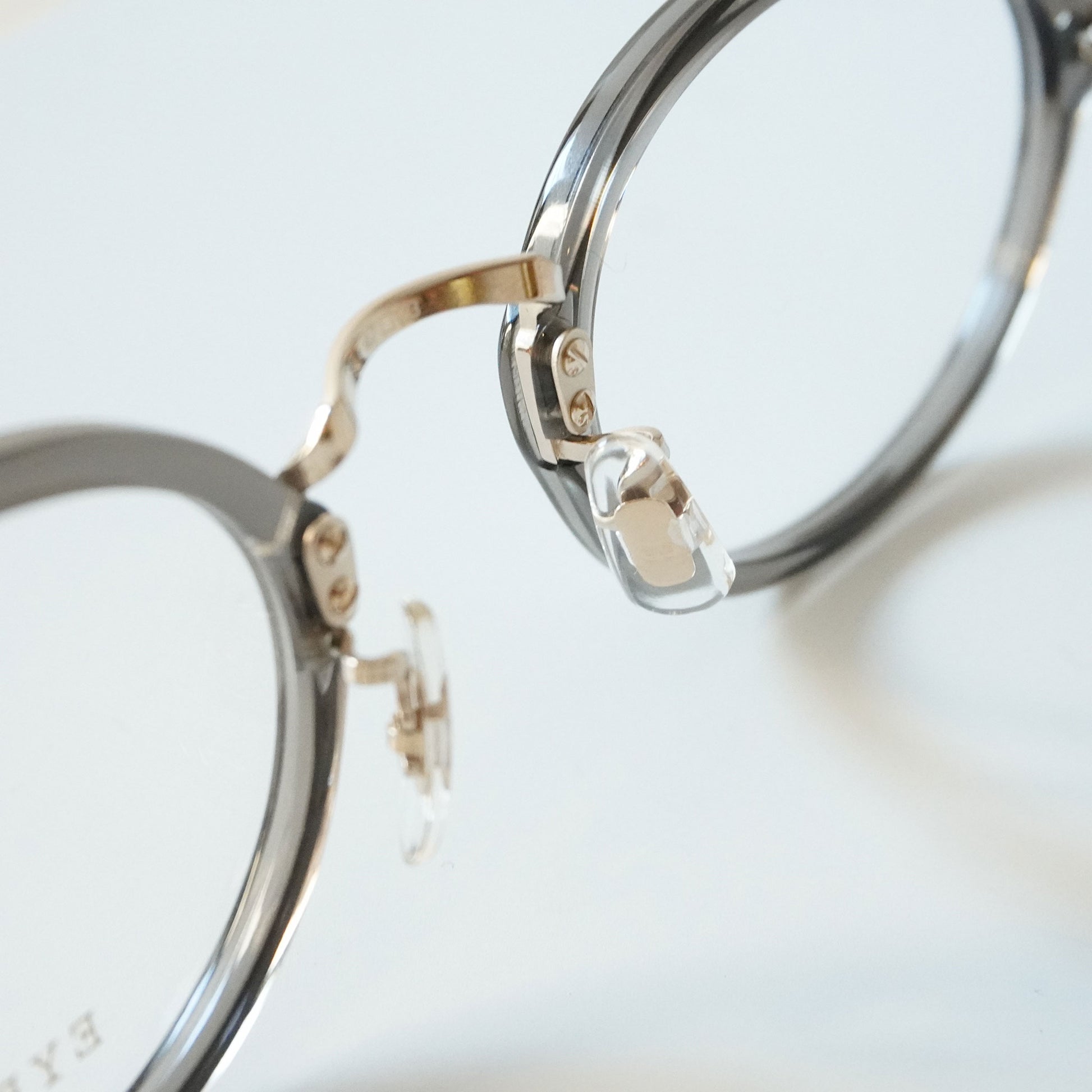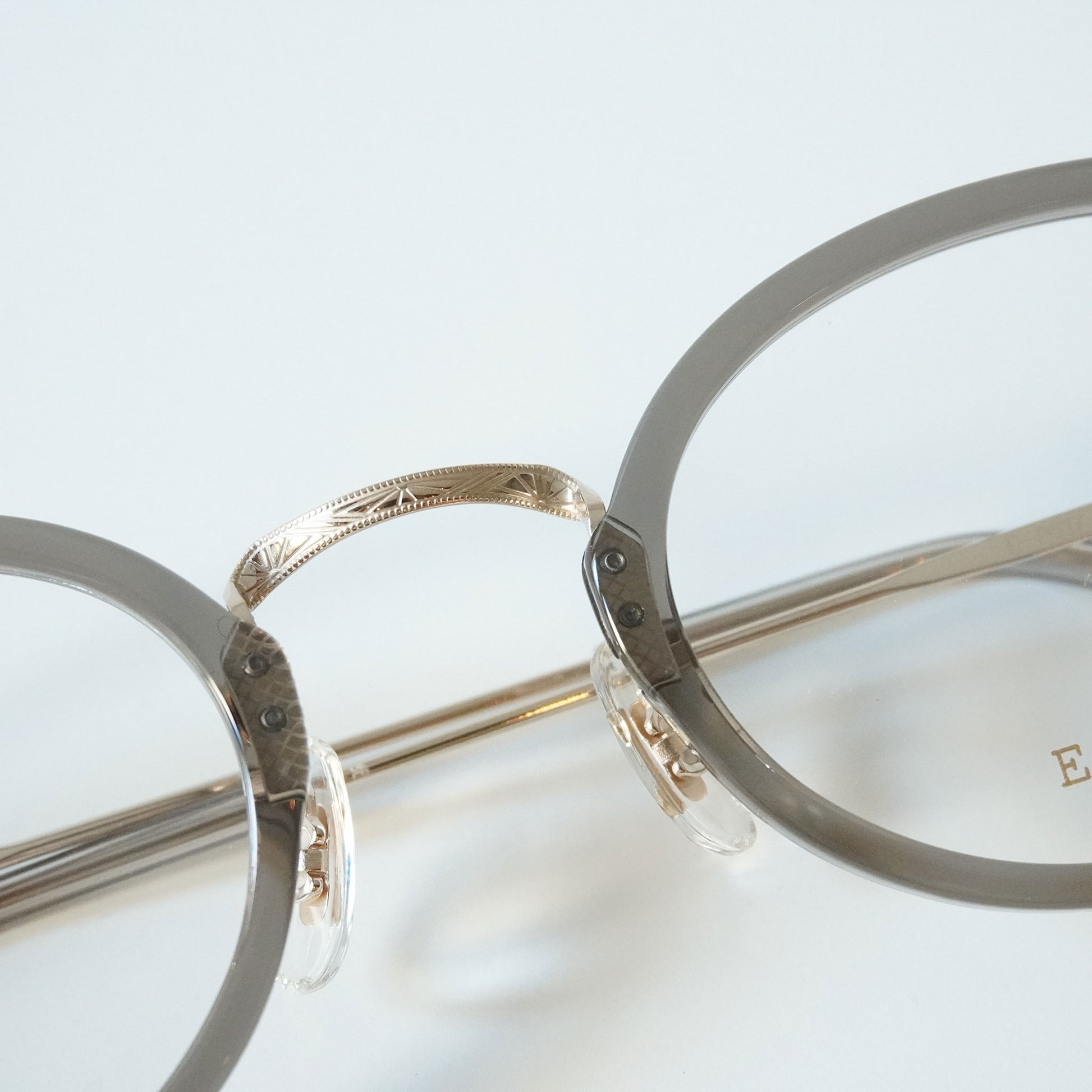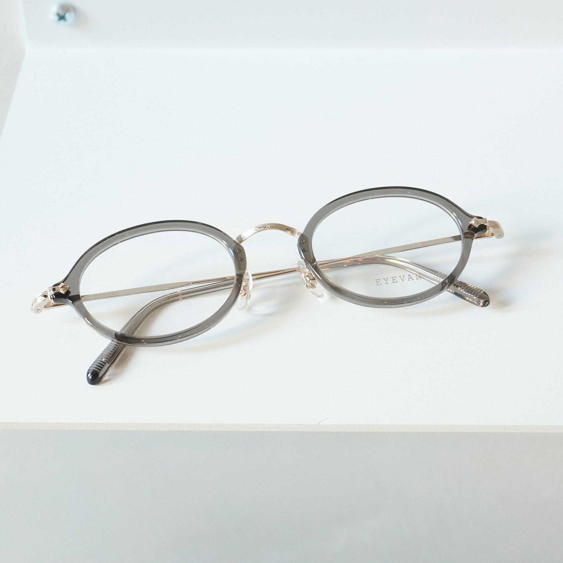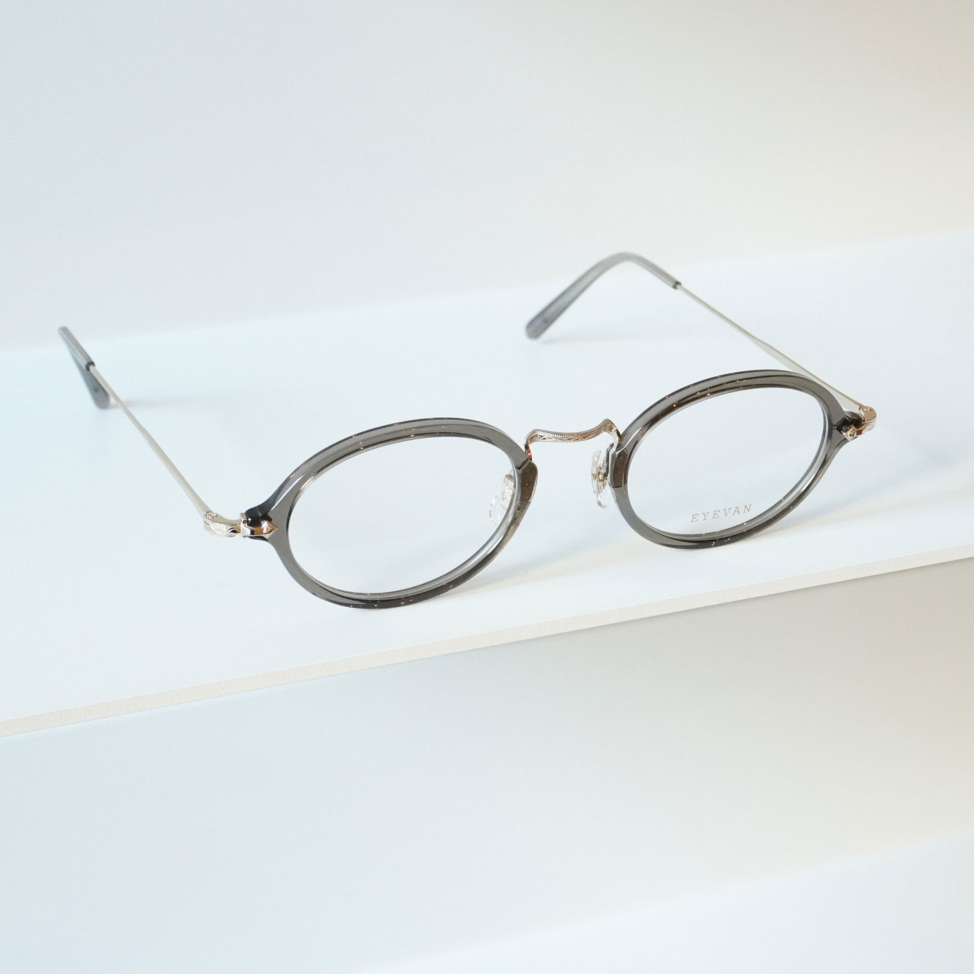 EYEVANのアイコン的存在であるE-500番台シリーズの系譜を継ぐ、E-0513につづくコンビネーションフレーム。ブリッジには、クリングス一体型のアーチバックブリッジを採用。テンプルは、芯材にβチタンを使用することでしなやかな弾性を持たせた長モダンタイプとし、掛け心地にも配慮している。フロントは、デザインチームが所有する1980年代のメタルフレームのレンズシェイプからサンプリングし、デザインに落とし込んでいます。