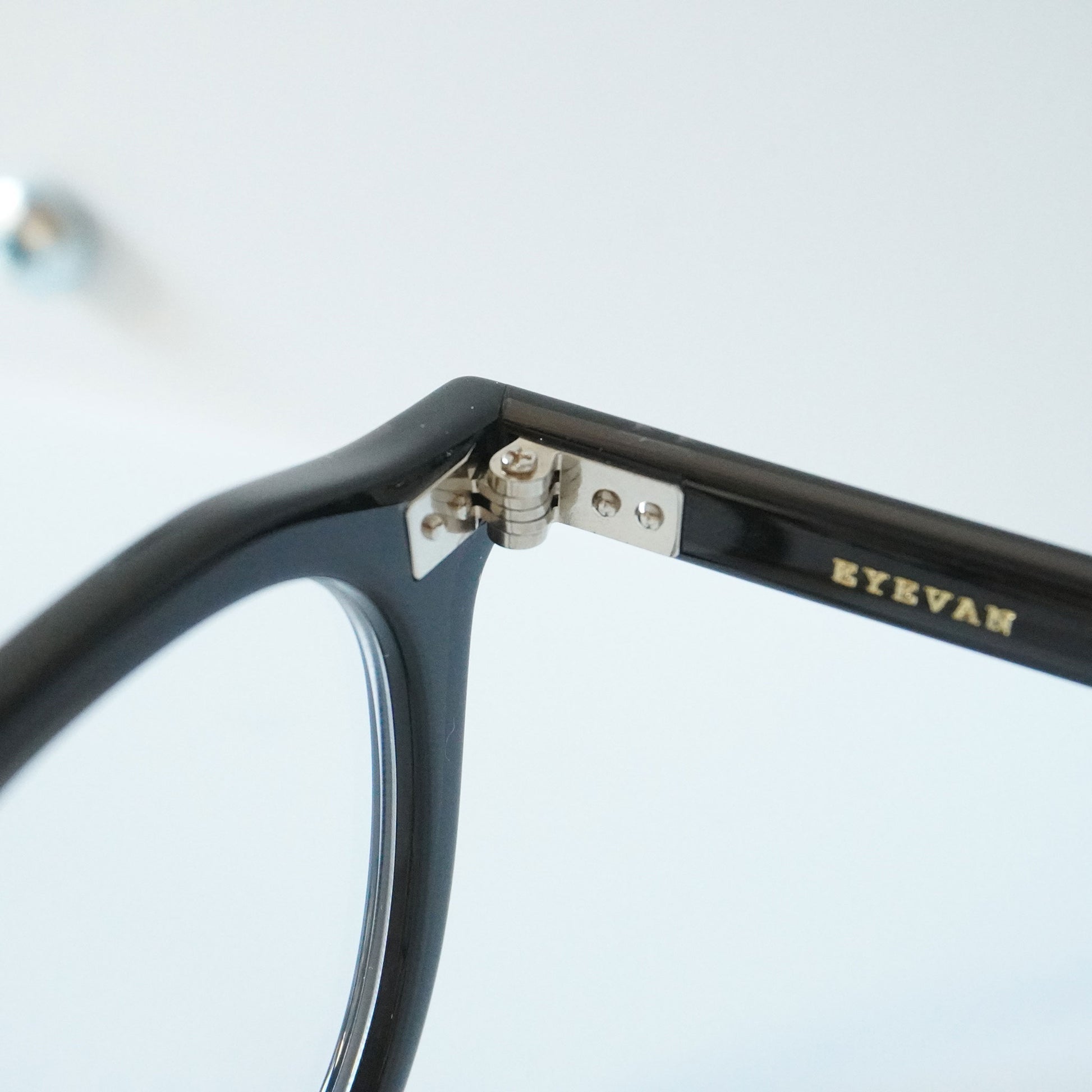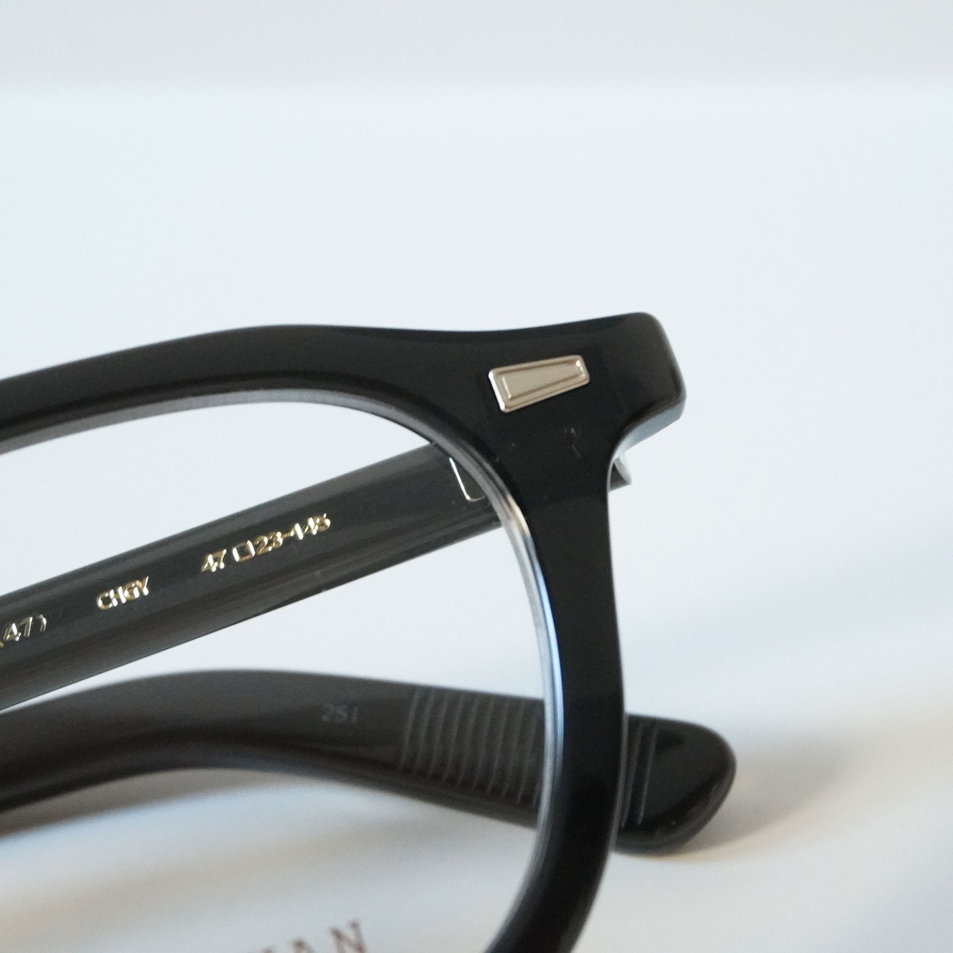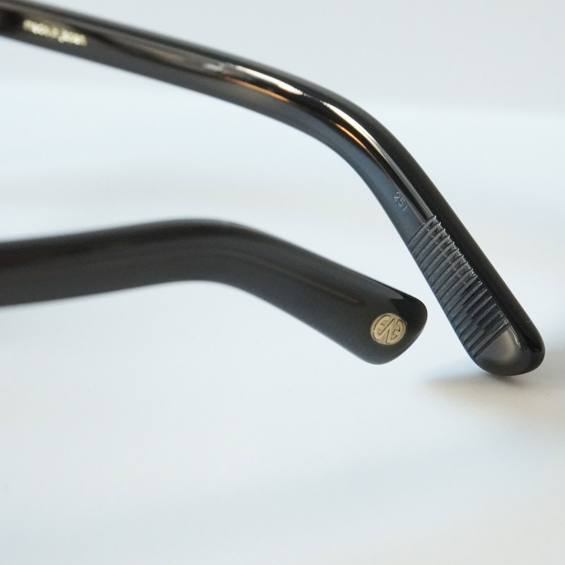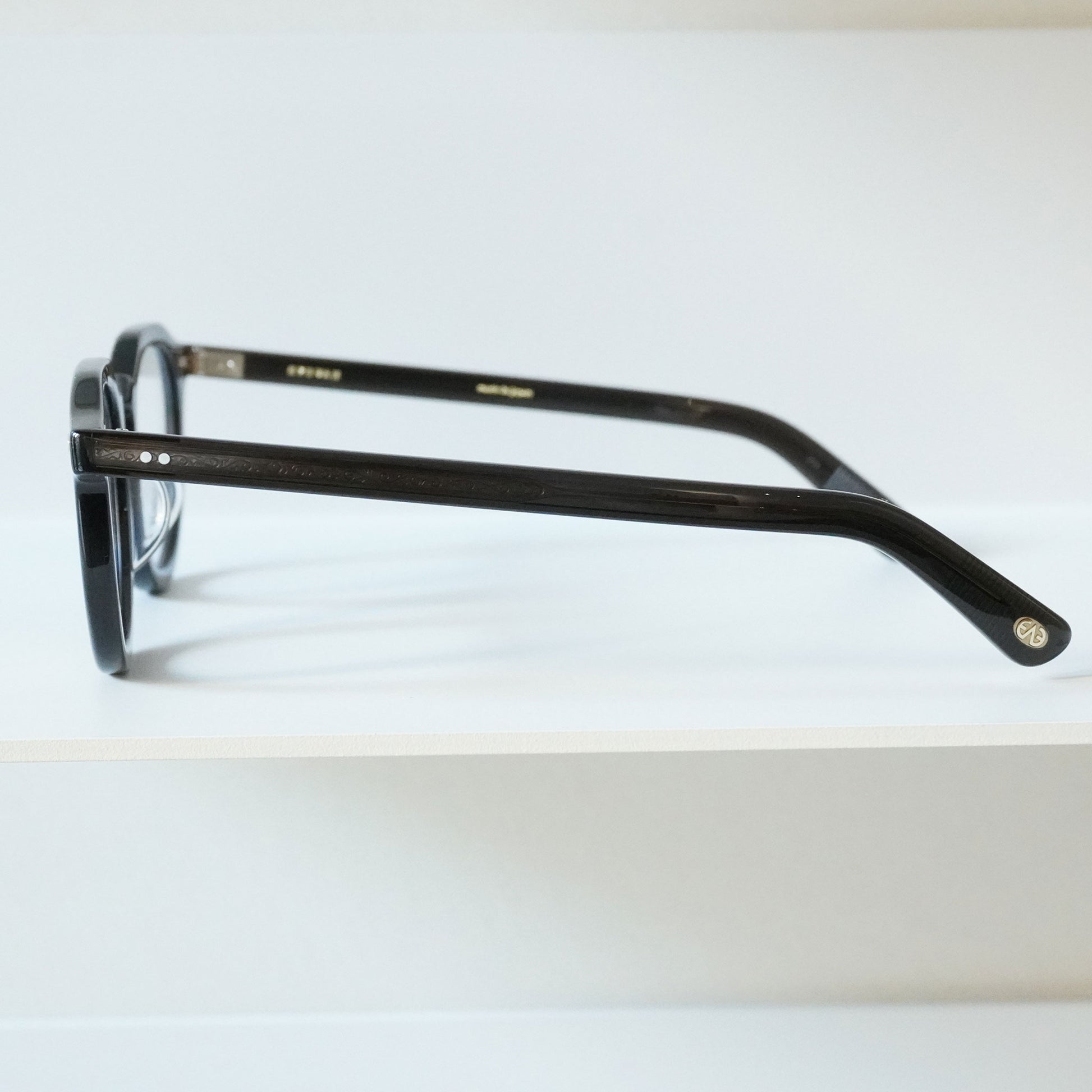 1950年代のフレンチヴィンテージをベースに、ウェリントンとクラウンパントの中間的なレンズシェイプをホーンリムに融合させた、2024SSシーズンモデル『Albedo』のリメイク。リムはやや太めに再構築し、テンプルは新たなデザインを採用。ヨロイには成形精度に優れたサンプラチナを用い、通常の3倍以上のプレス工程を経て完成する、オリジナル のかしめ飾りを組み合わせた。