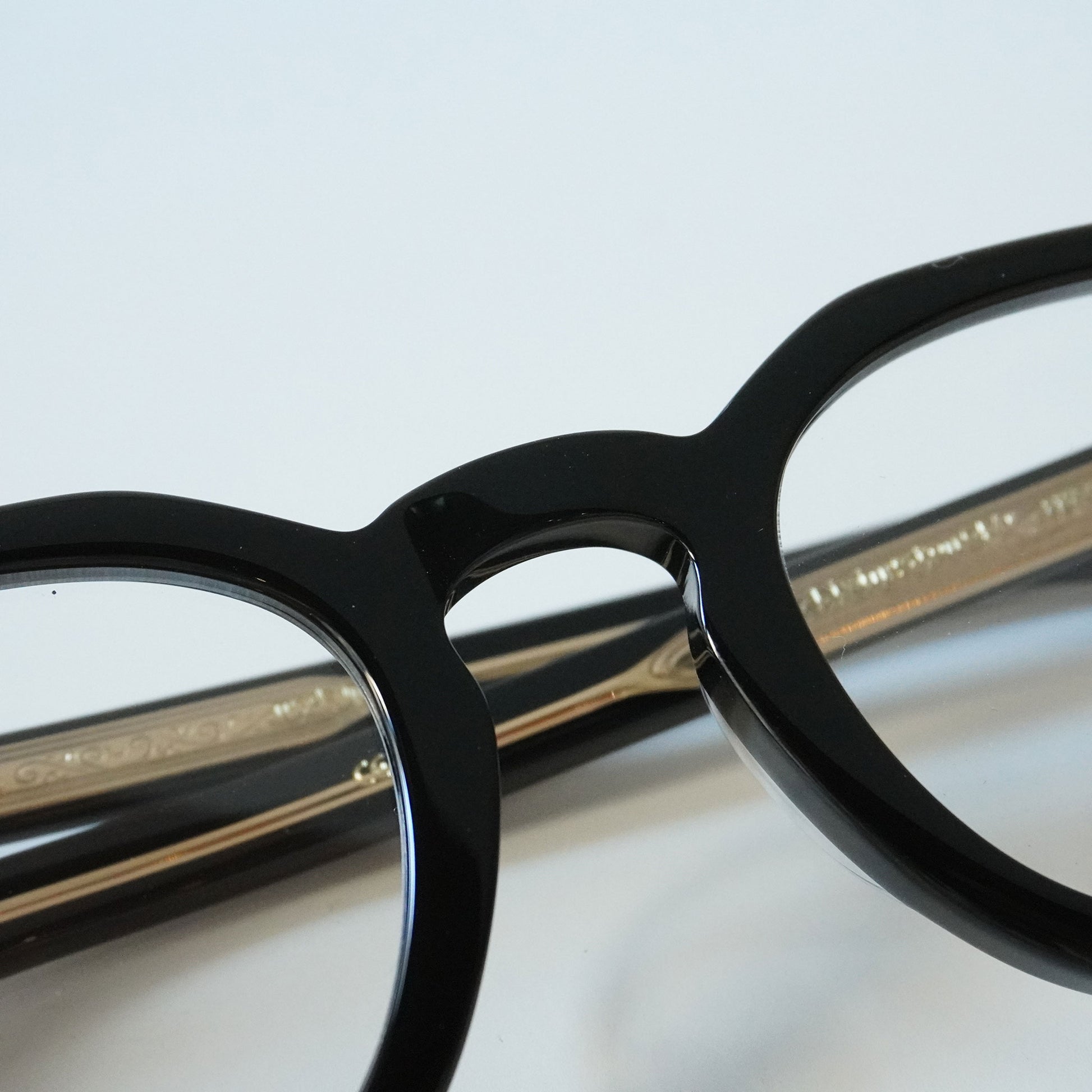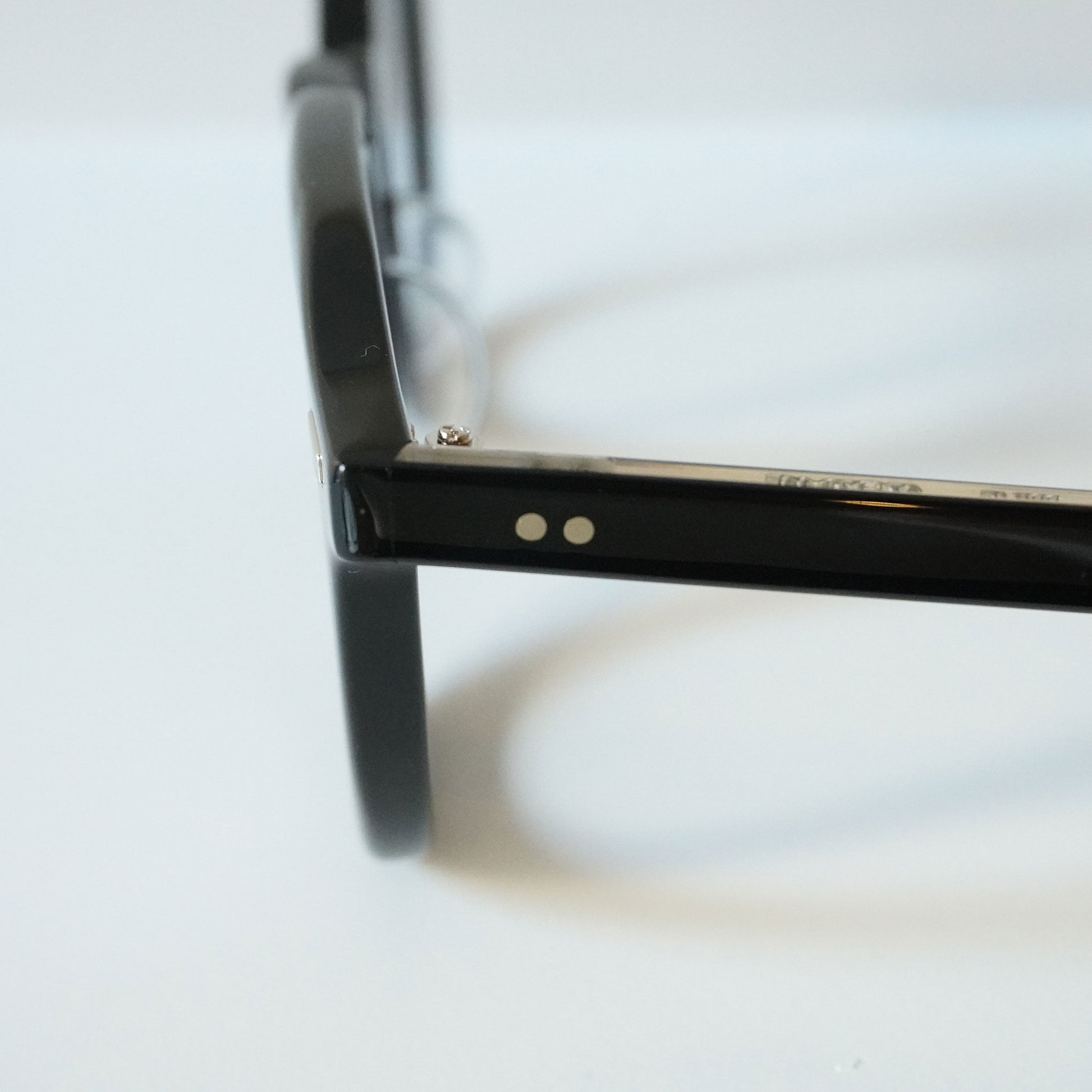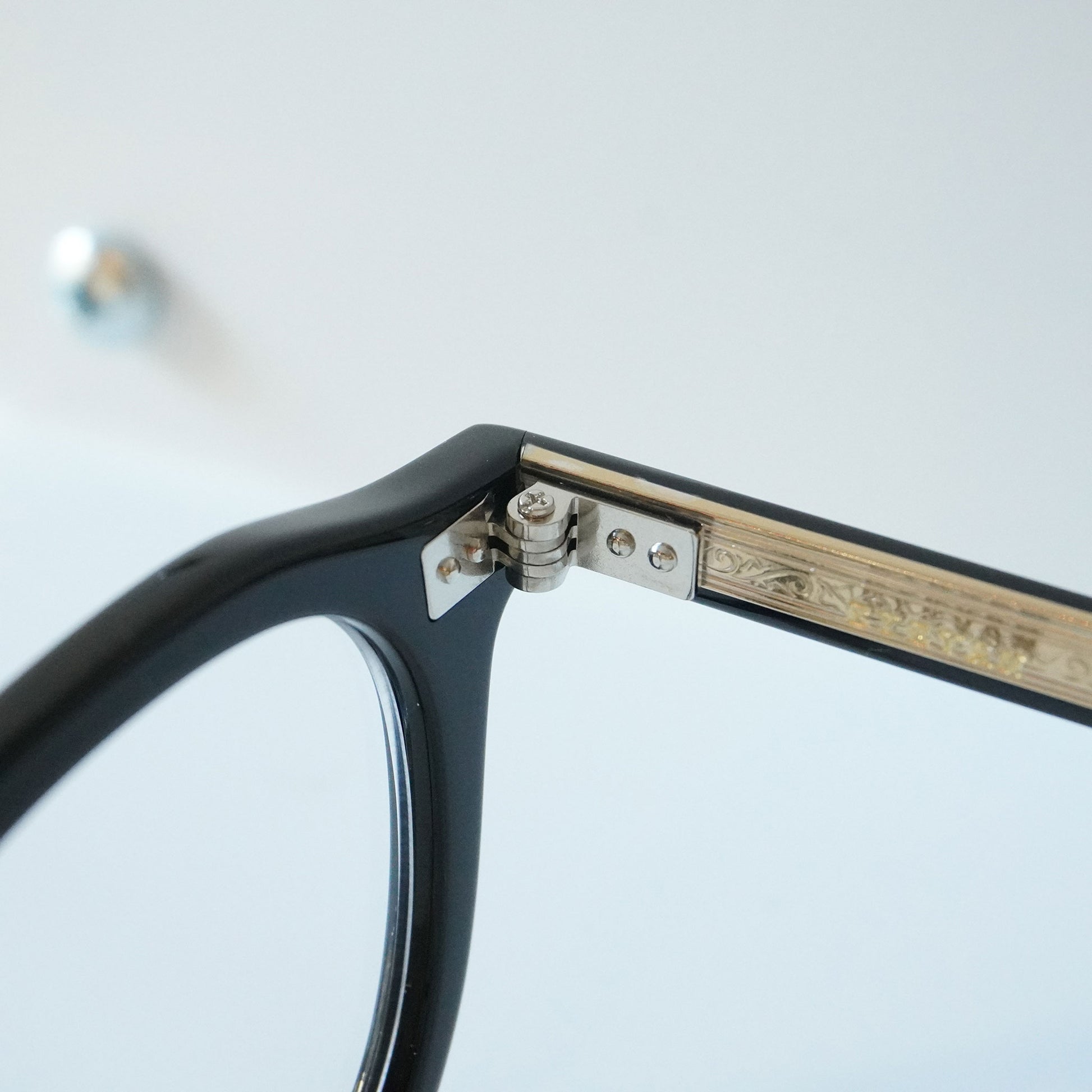 1950年代のフレンチヴィンテージをベースに、ウェリントンとクラウンパントの中間的なレンズシェイプをホーンリムに融合させた、2024SSシーズンモデル『Albedo』のリメイク。リムはやや太めに再構築し、テンプルは新たなデザインを採用。ヨロイには成形精度に優れたサンプラチナを用い、通常の3倍以上のプレス工程を経て完成する、オリジナル のかしめ飾りを組み合わせた。