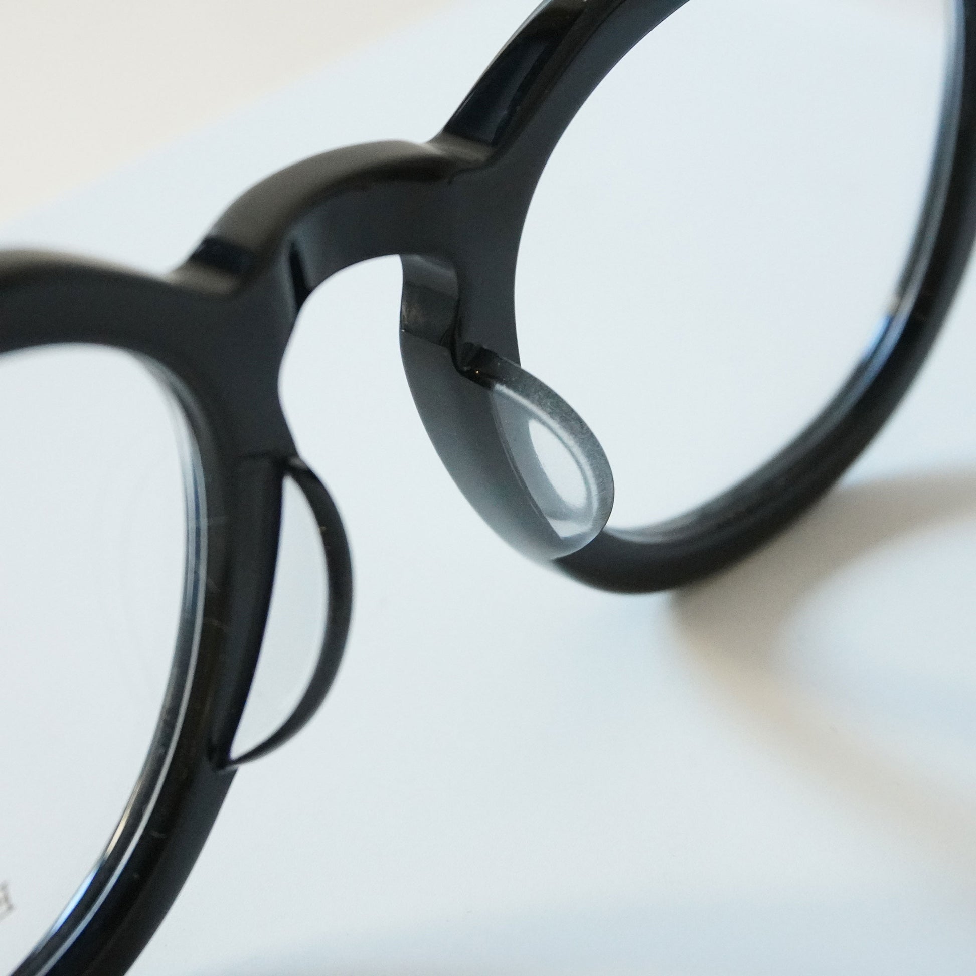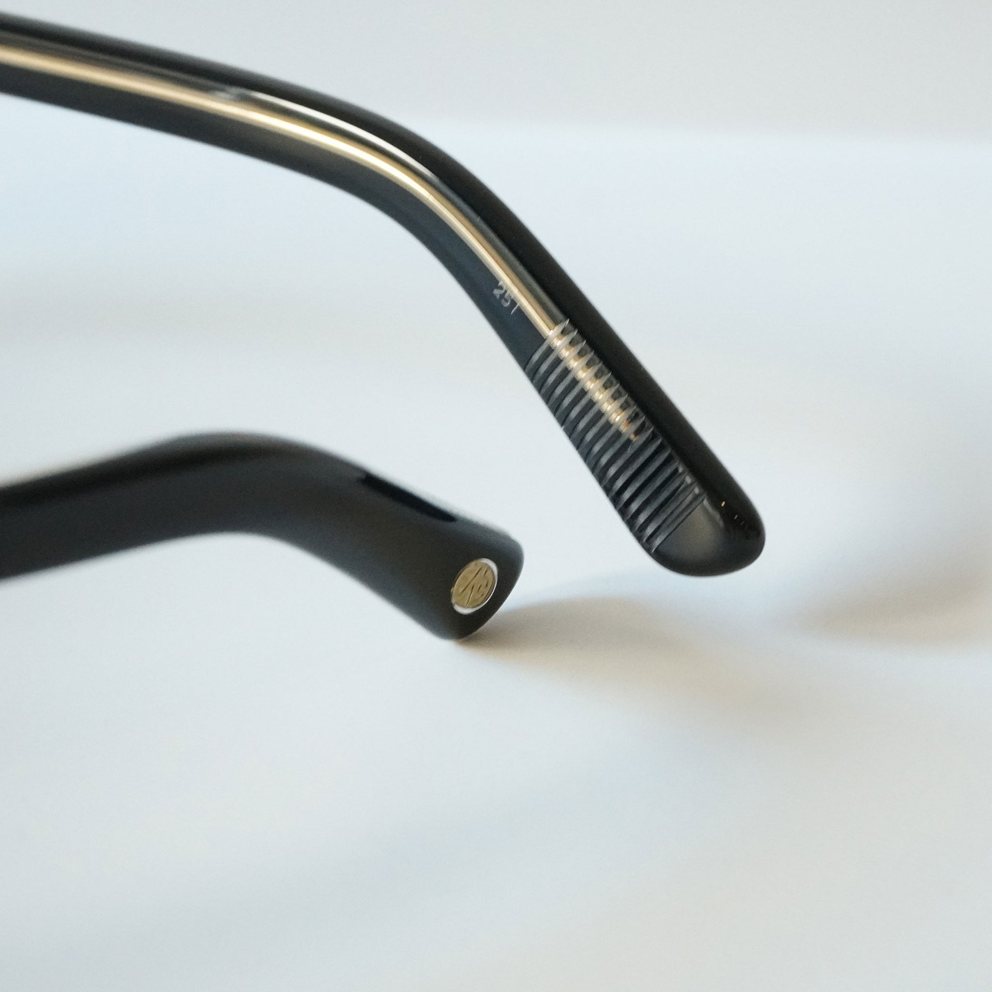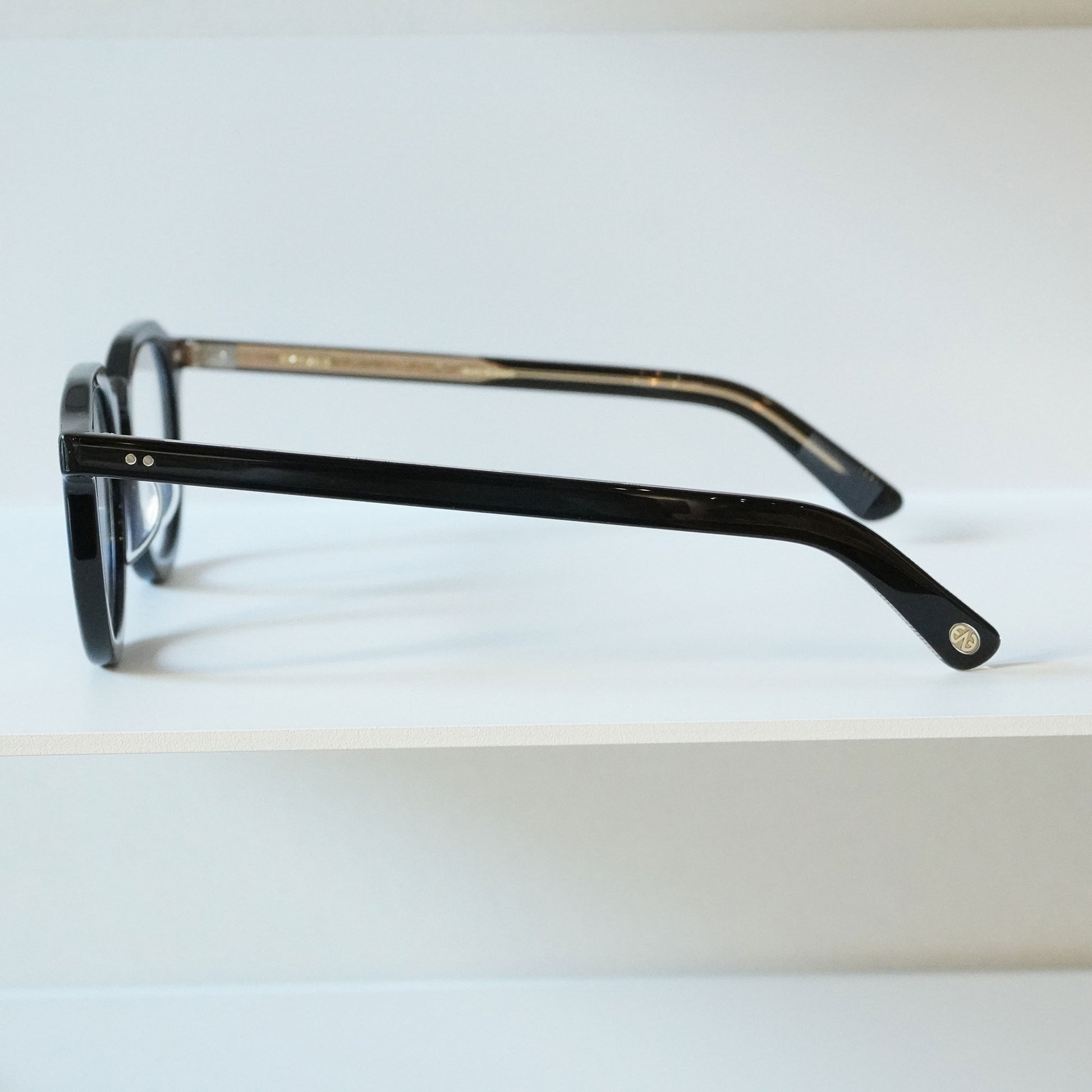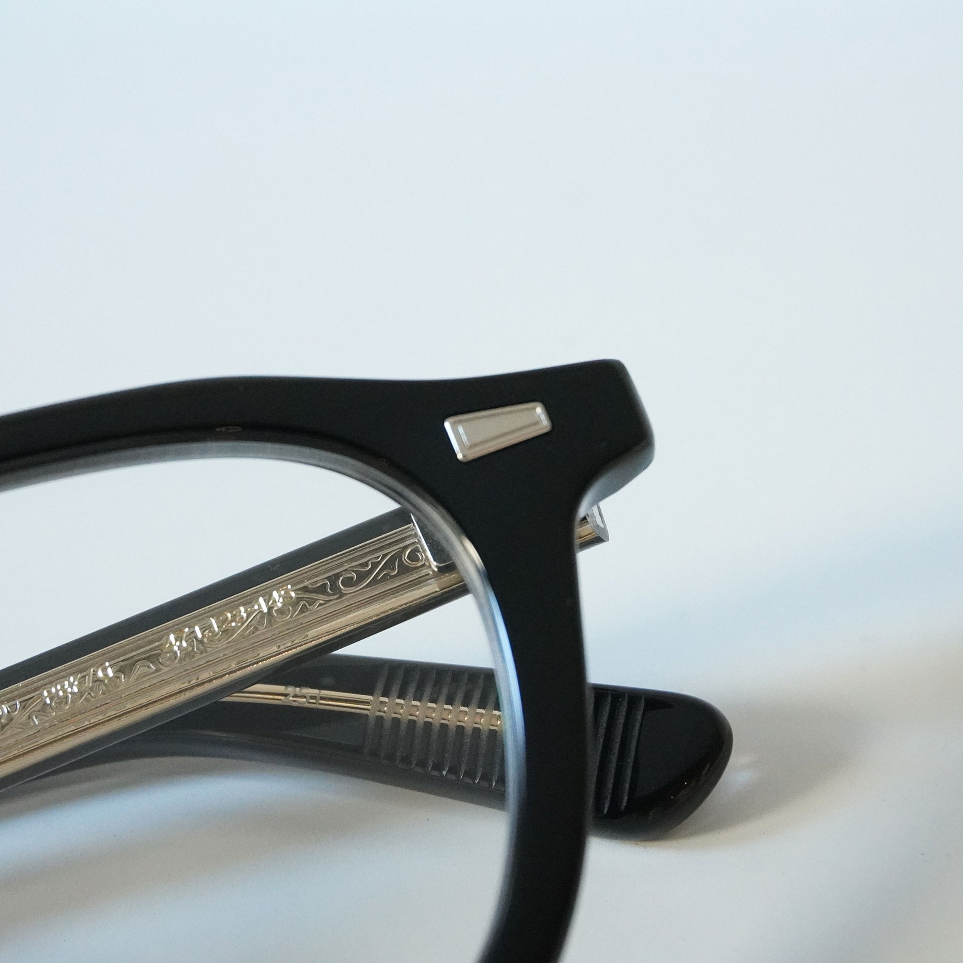 1950年代のフレンチヴィンテージをベースに、ウェリントンとクラウンパントの中間的なレンズシェイプをホーンリムに融合させた、2024SSシーズンモデル『Albedo』のリメイク。リムはやや太めに再構築し、テンプルは新たなデザインを採用。ヨロイには成形精度に優れたサンプラチナを用い、通常の3倍以上のプレス工程を経て完成する、オリジナル のかしめ飾りを組み合わせた。