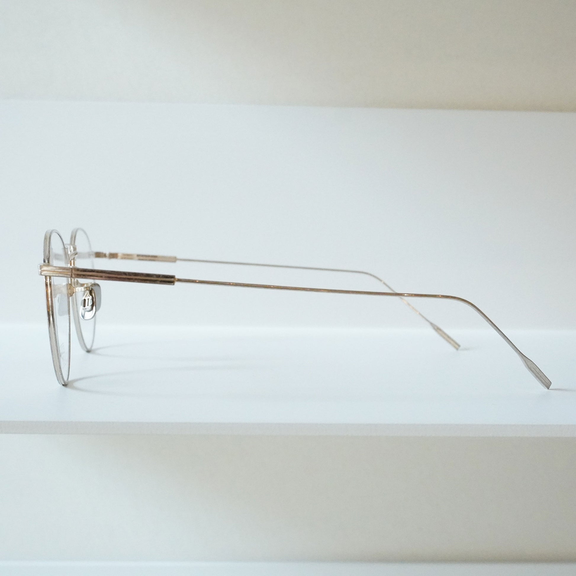 このモデルの象徴となるブリッジパーツは高速道路のジャンクションからインスパイアされた“曲線の交差”をテーマとしたもの。前後それぞれ逆方向に張り出した上部ブリッジと下部ブリッジはワンピースで構成され、その製造難易度はブランド史上最も高いレベルを要した。精密で構築的なそれぞれのパーツが持つ緊張感に対し、やや大振りでリラックスした印象の玉型を合わせプロダクト全体の空気感を和らげた。