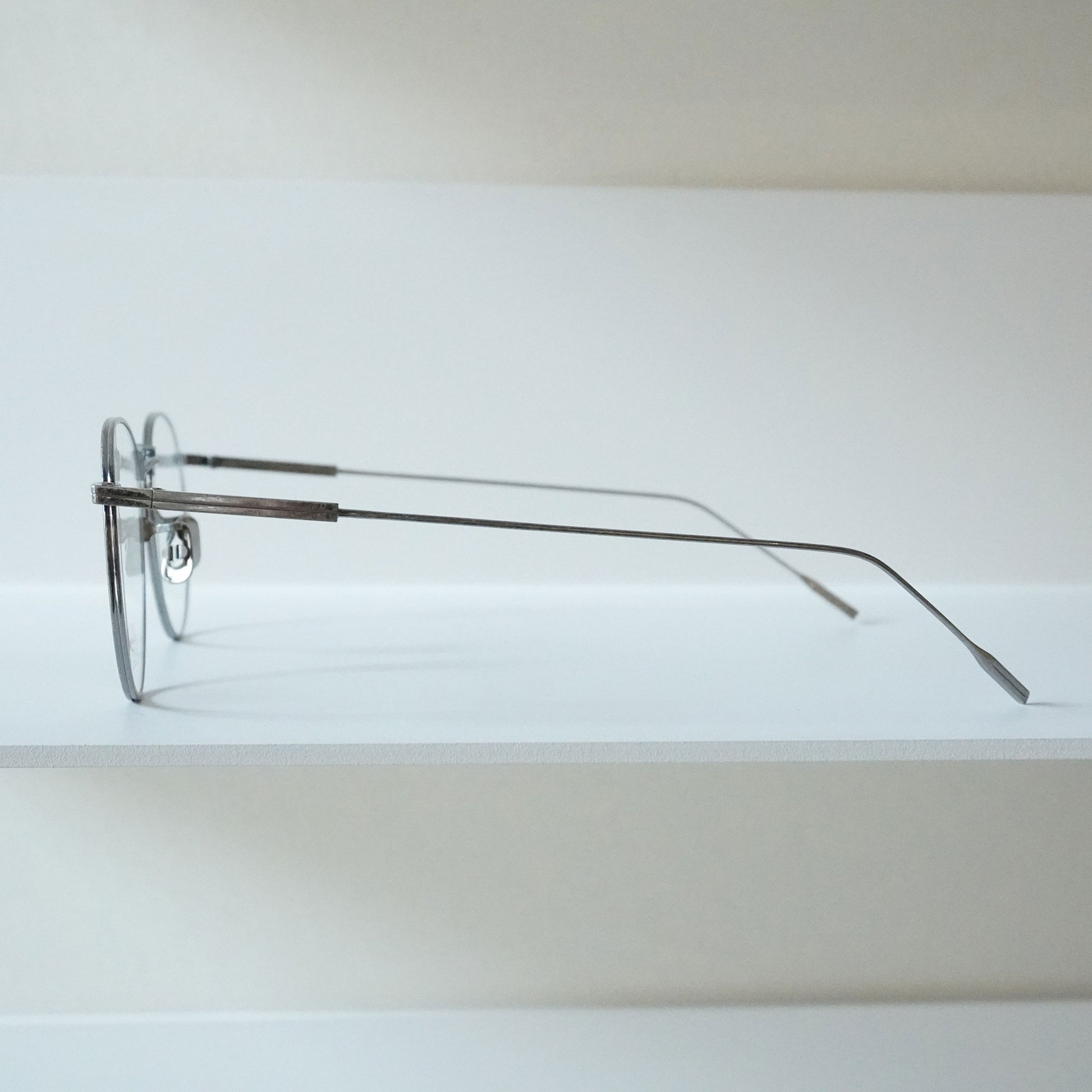 このモデルの象徴となるブリッジパーツは高速道路のジャンクションからインスパイアされた“曲線の交差”をテーマとしたもの。前後それぞれ逆方向に張り出した上部ブリッジと下部ブリッジはワンピースで構成され、その製造難易度はブランド史上最も高いレベルを要した。精密で構築的なそれぞれのパーツが持つ緊張感に対し、やや大振りでリラックスした印象の玉型を合わせプロダクト全体の空気感を和らげた。