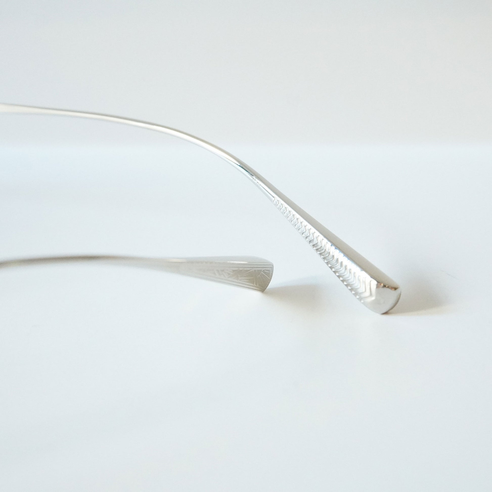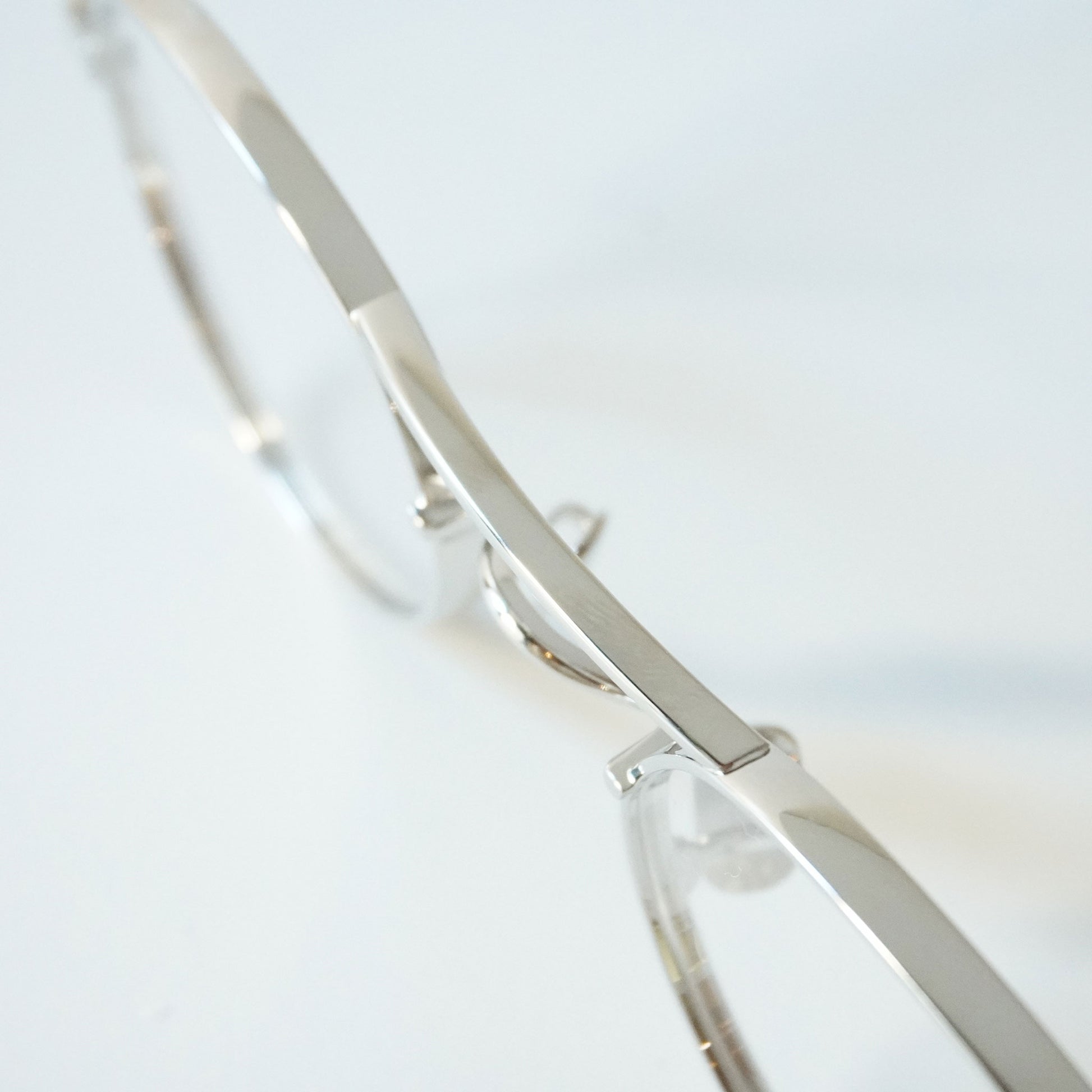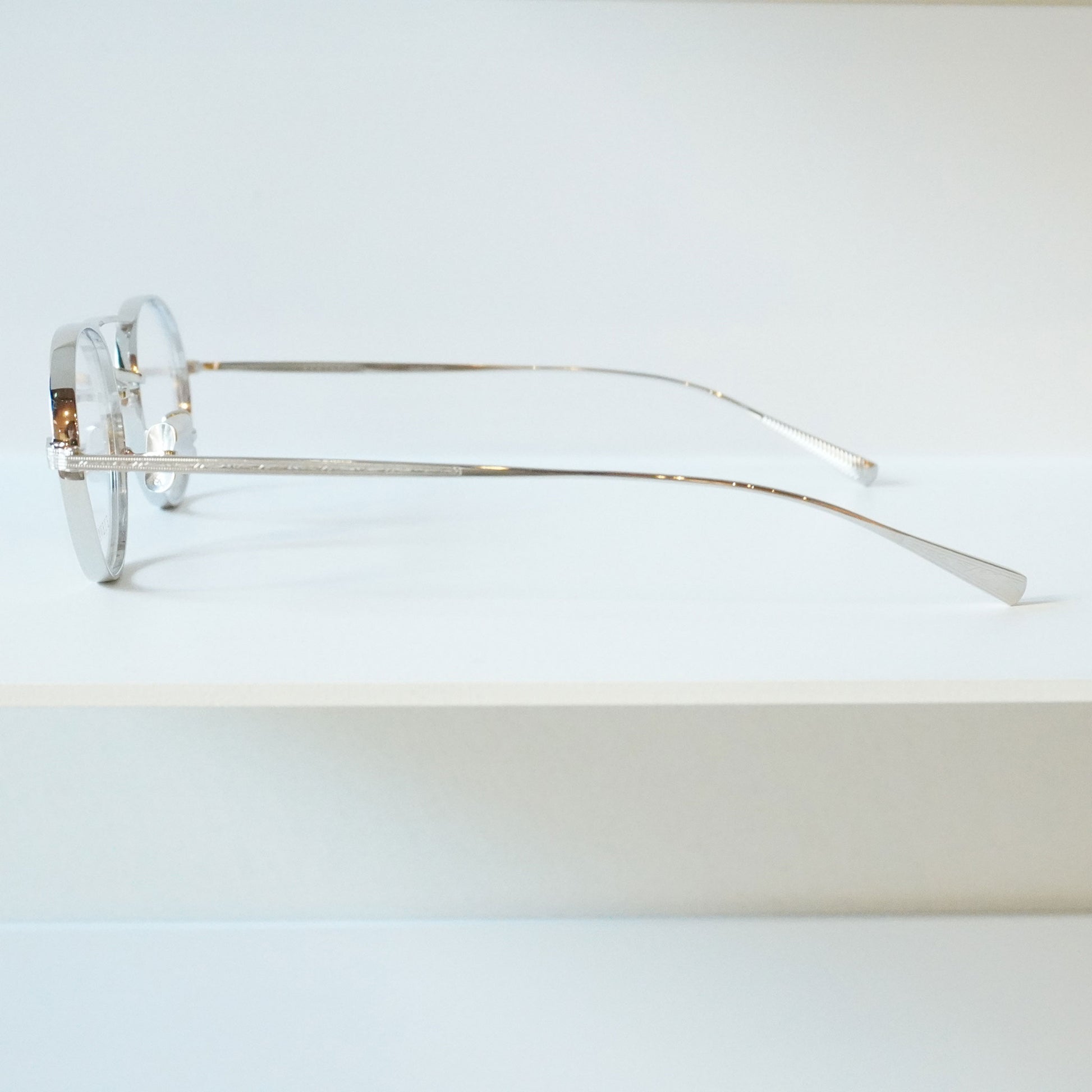 2023SSシーズンモデル『Creston』から派生した、ダブルブリッジが特徴的なニューモデル。フロントデザインは、デザインチームが長年温めてきた1980年代のアメリカンヴィンテージをソースに構築された。わずかに厚みを持たせたオリジナルリムに、丁番の内側にまで彫刻を施した職人による手掘りマスターのヨロイ、繊細な模様を刻んだチタンテンプルを組み合わせ、柔らかな曲線を描くブリッジには新たに型から起こしたトップバーをあわせた。重厚な造形でありながら、現代的な空気を纏った仕上がりとなっている。