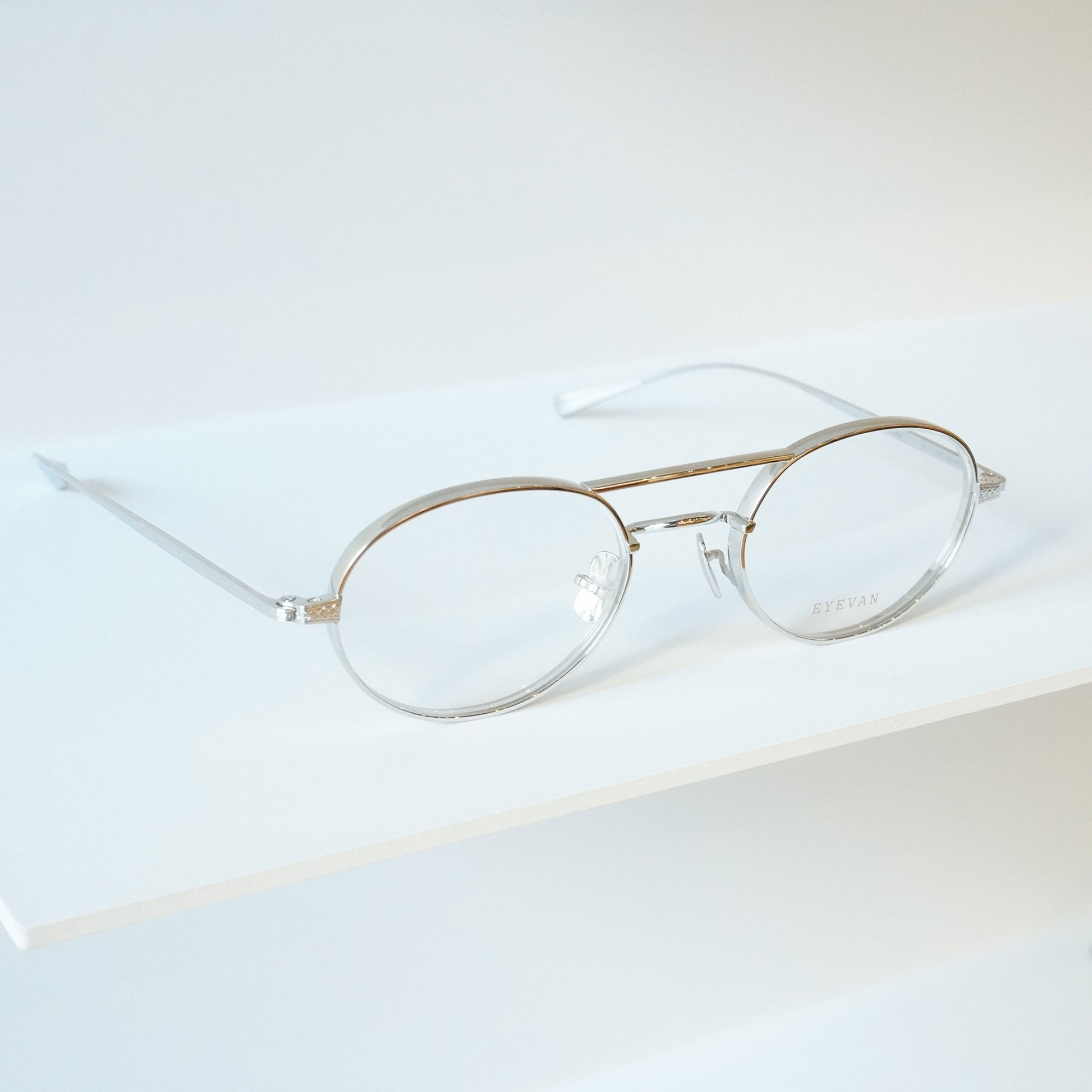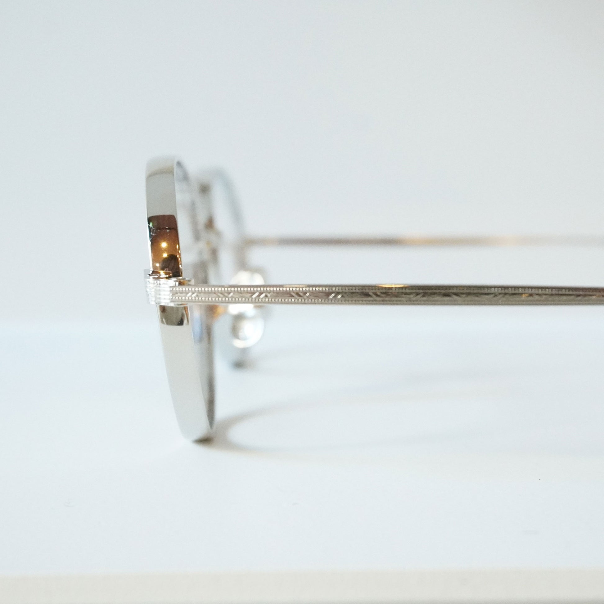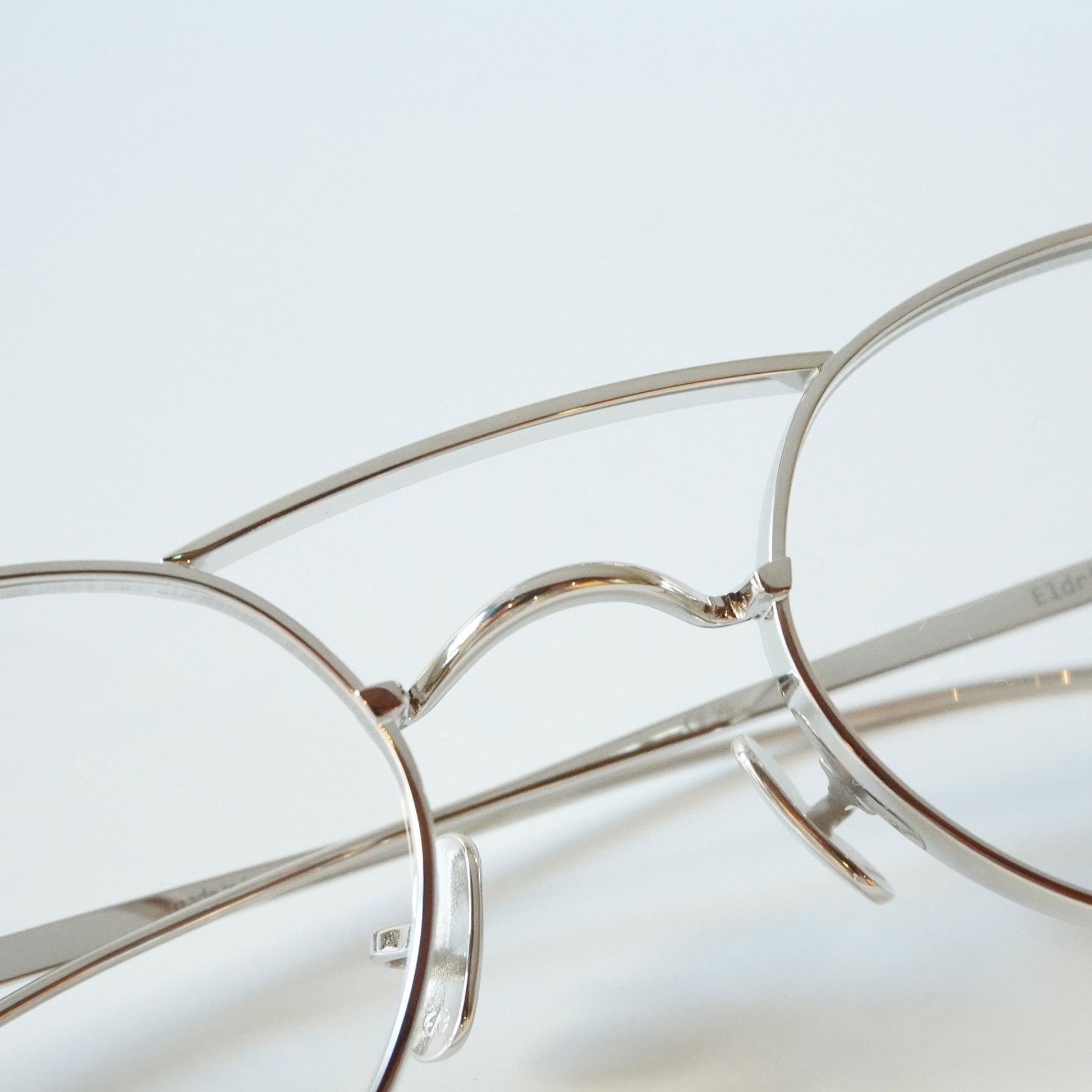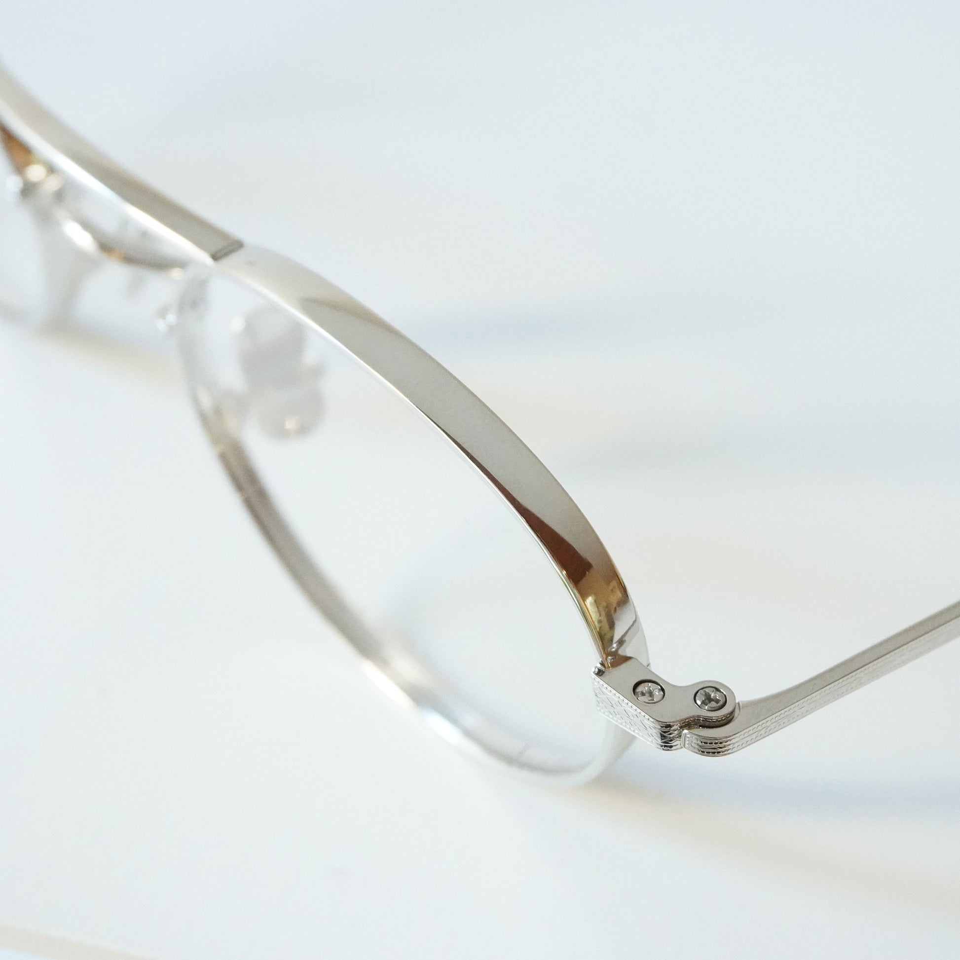 2023SSシーズンモデル『Creston』から派生した、ダブルブリッジが特徴的なニューモデル。フロントデザインは、デザインチームが長年温めてきた1980年代のアメリカンヴィンテージをソースに構築された。わずかに厚みを持たせたオリジナルリムに、丁番の内側にまで彫刻を施した職人による手掘りマスターのヨロイ、繊細な模様を刻んだチタンテンプルを組み合わせ、柔らかな曲線を描くブリッジには新たに型から起こしたトップバーをあわせた。重厚な造形でありながら、現代的な空気を纏った仕上がりとなっている。
