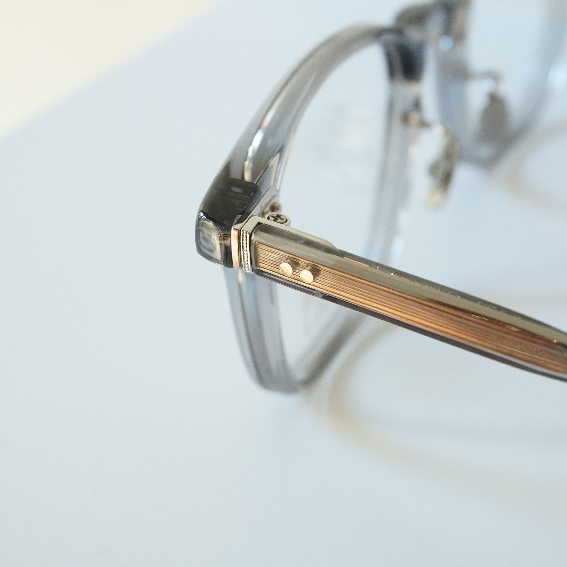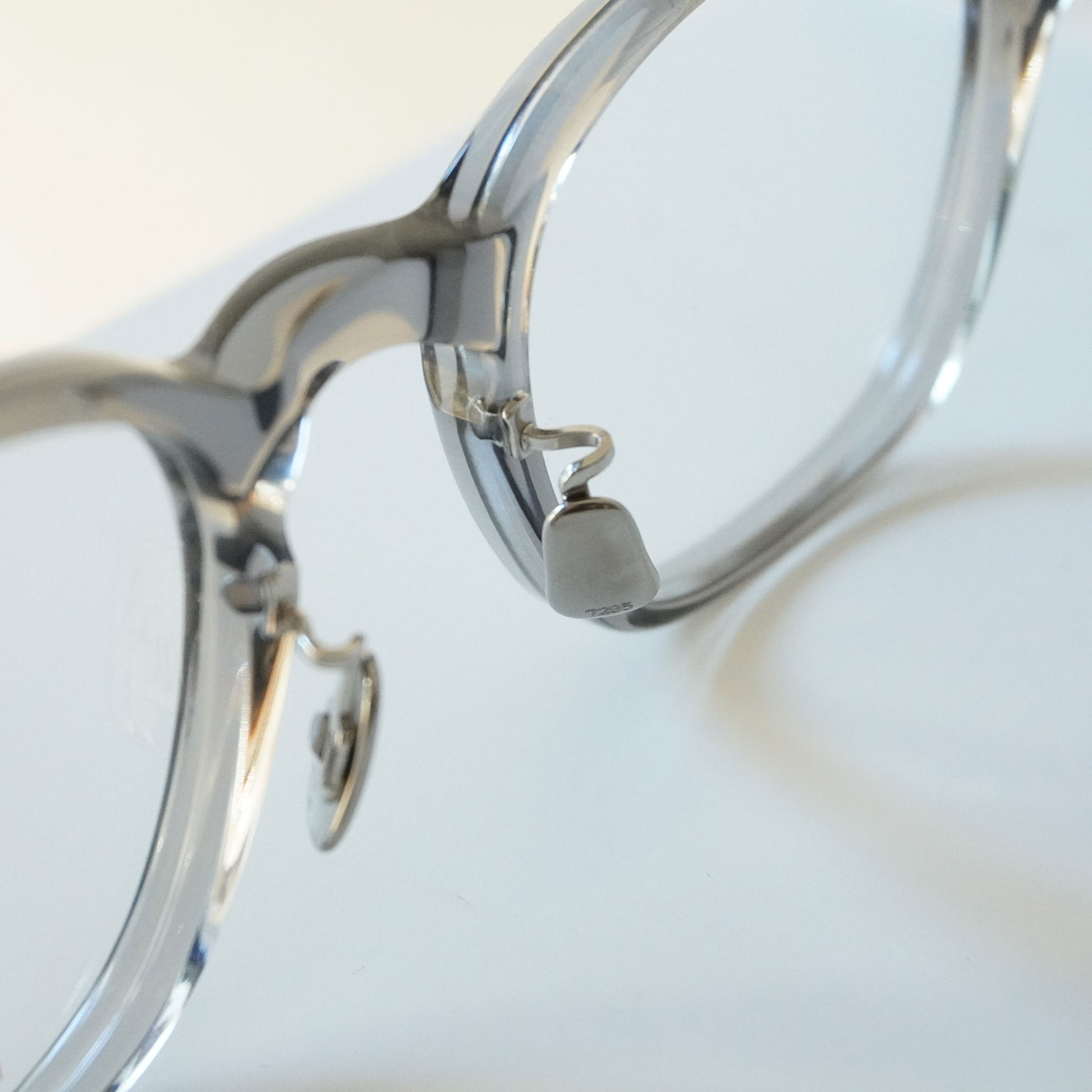 2018SSモデル「320」のリファインモデル。やや縦幅を抑えたウェリントン型にUSヴィンテージを想起させるキーホールがクラシックな佇まい。ブランドのアイコンパーツであるミリタリー丁番、研ぎ出しによるサンプラチナ製オリジナル飾りカシメなど細部にまでブランドの拘りが凝縮されている。7285としての“オーセンティック”なスタイルをストレートに表現した形。