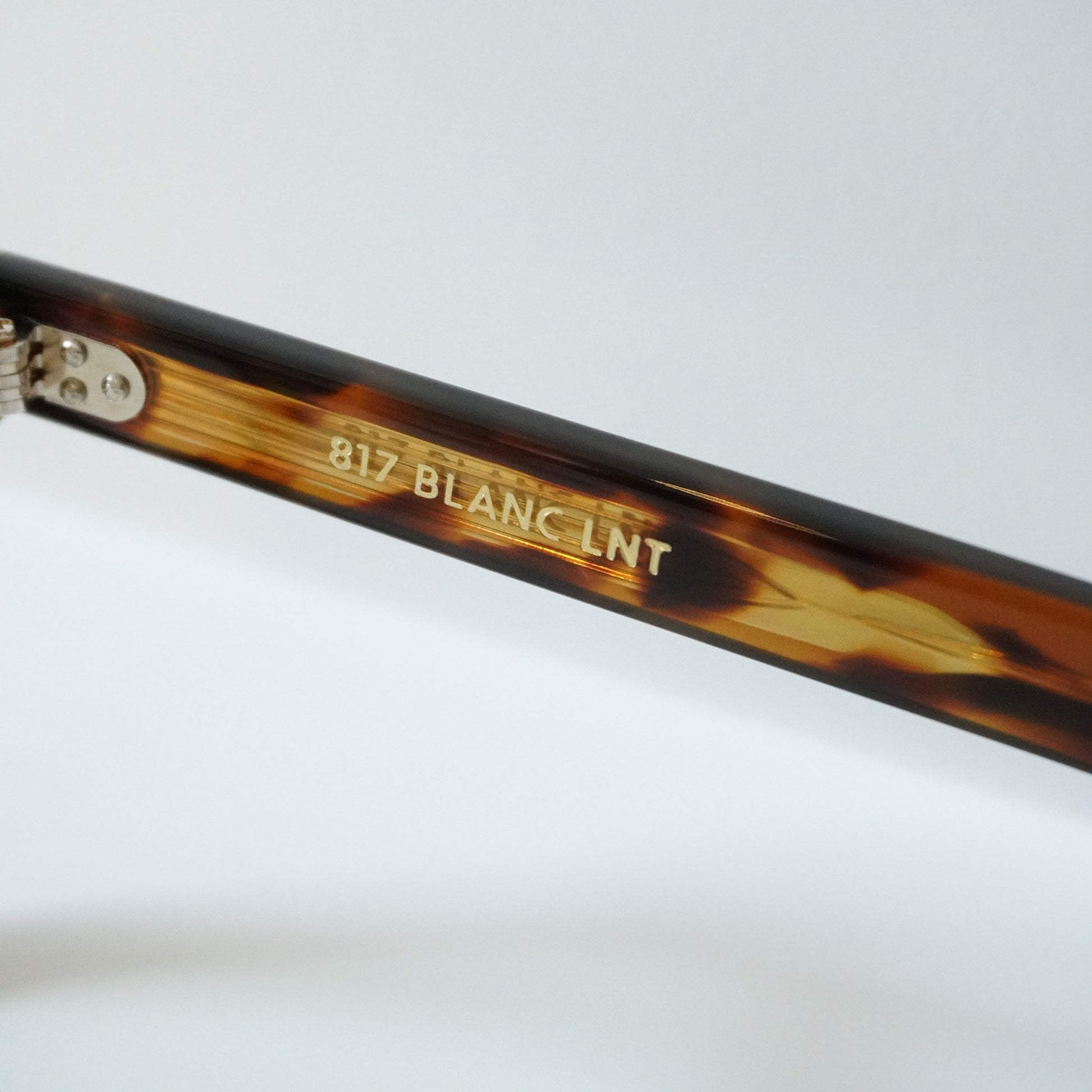 BLANC は仏語で " 白 " を表し、何色にでも染まることができるピュアでシンプルなイメージと、絵画で「光」・「光沢」などを表現するときに白い絵の具を使うところから名付けられた。ブランドシグニチャーは左テンプルエンドのサイン。