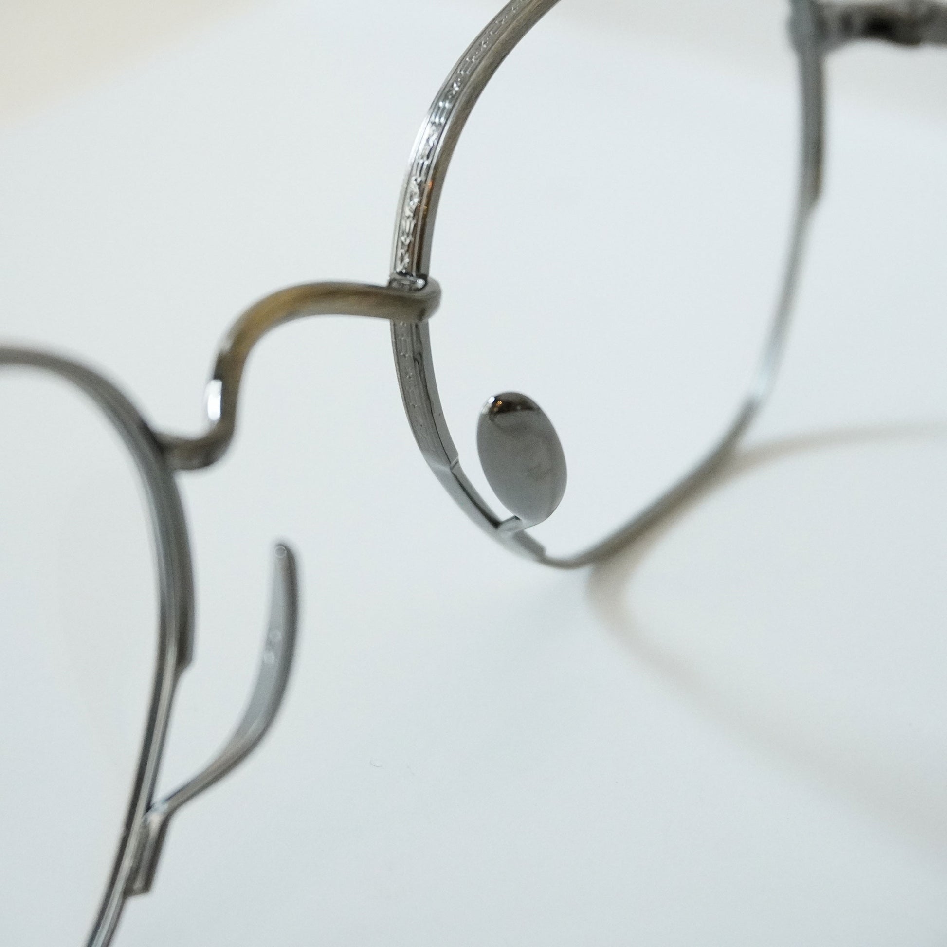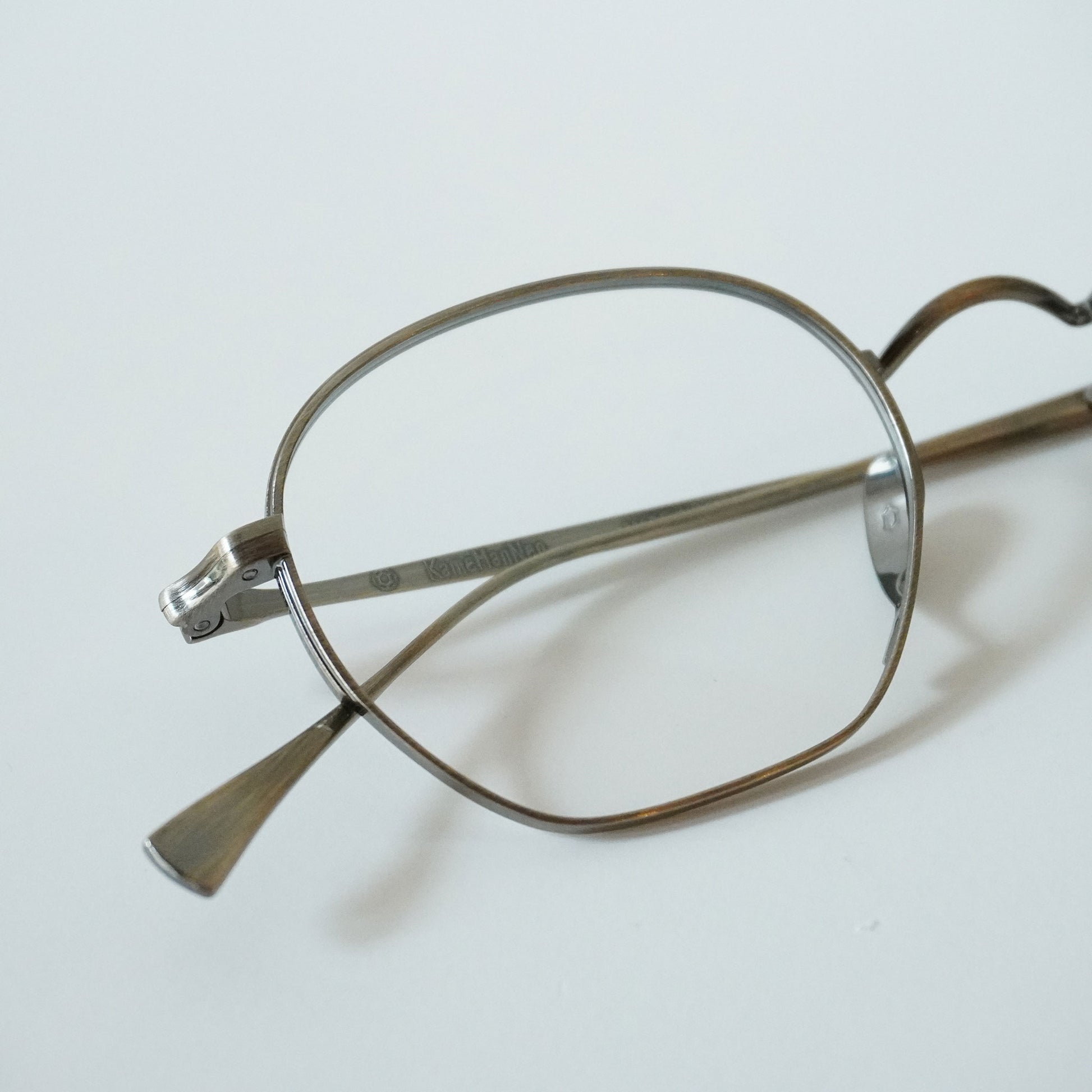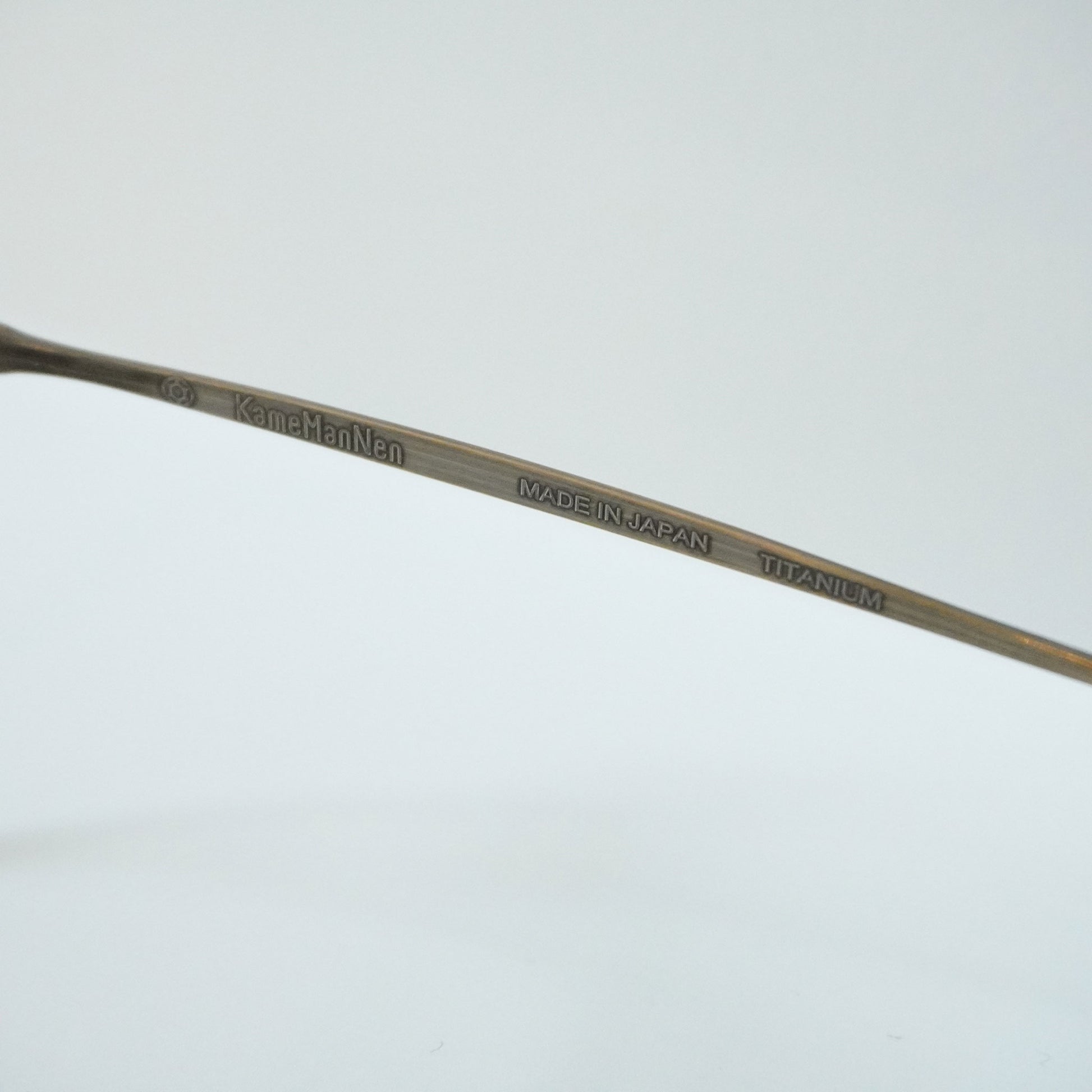 直線と曲線が調和した六角形に近い独自のフォルムに、“亀甲彫金”と“四葉”の意匠を掛け合わせたKMN5502。伝統と革新が交差するこのフレームには、健康・長寿・安全といった普遍的な願いが込められています。角度によって浮かび上がる繊細な彫金が、掛ける人の気分を引き立てます。