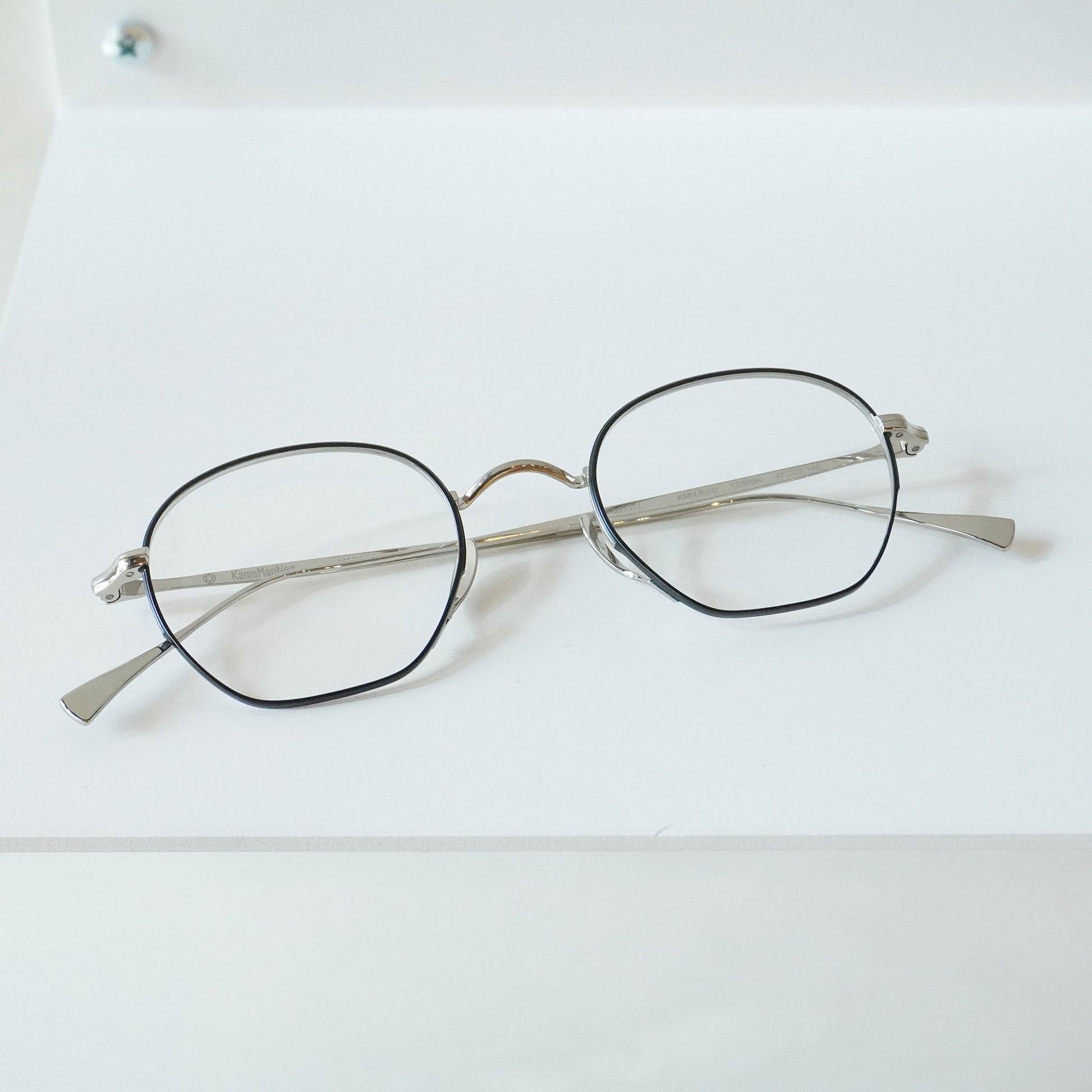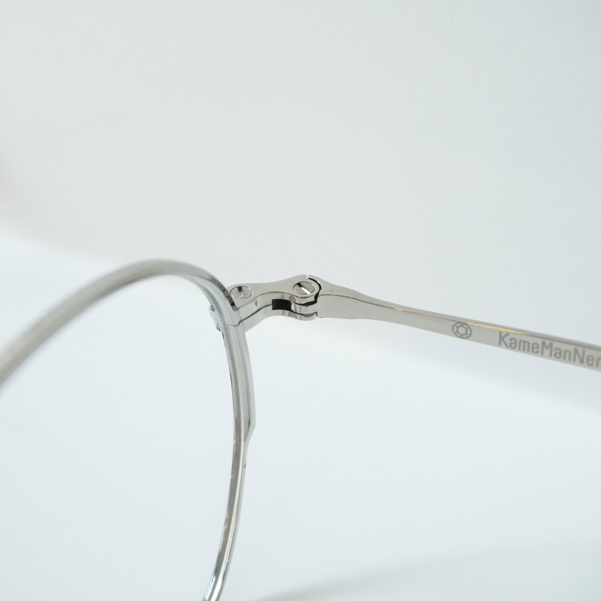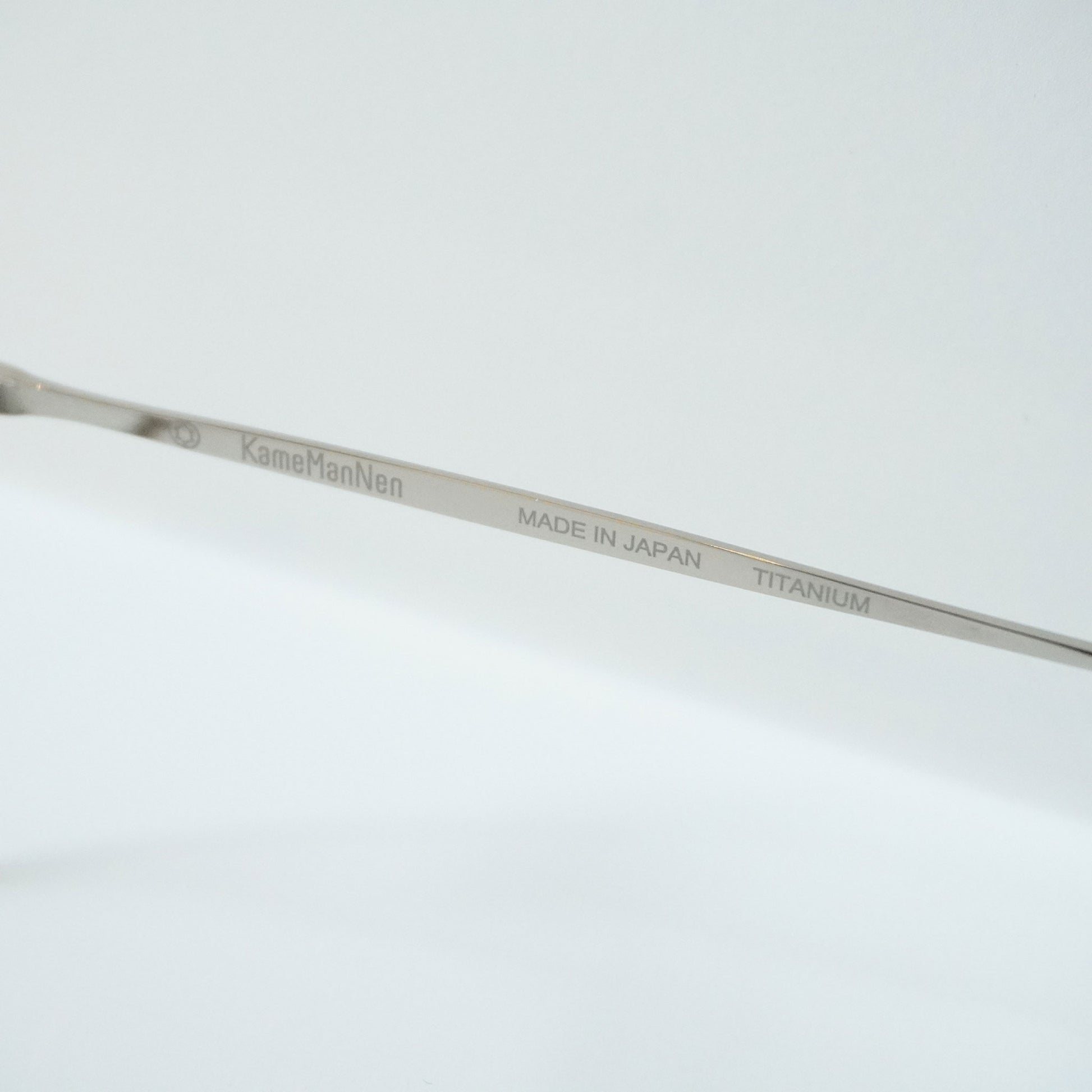 直線と曲線が調和した六角形に近い独自のフォルムに、“亀甲彫金”と“四葉”の意匠を掛け合わせたKMN5502。伝統と革新が交差するこのフレームには、健康・長寿・安全といった普遍的な願いが込められています。角度によって浮かび上がる繊細な彫金が、掛ける人の気分を引き立てます。