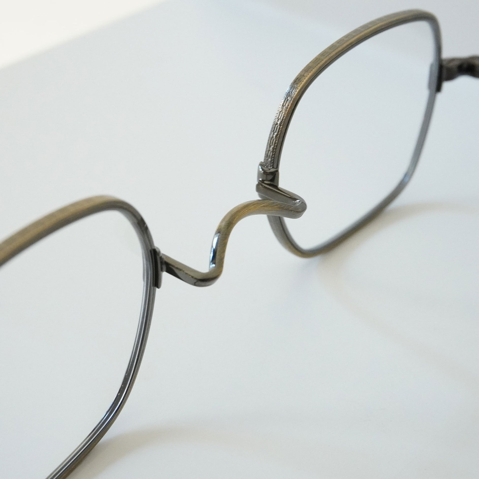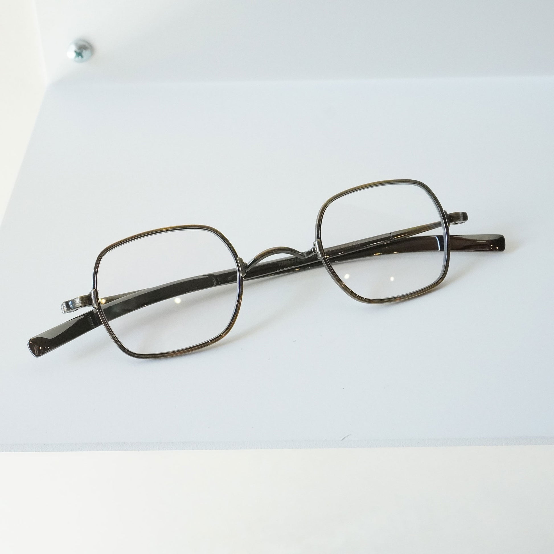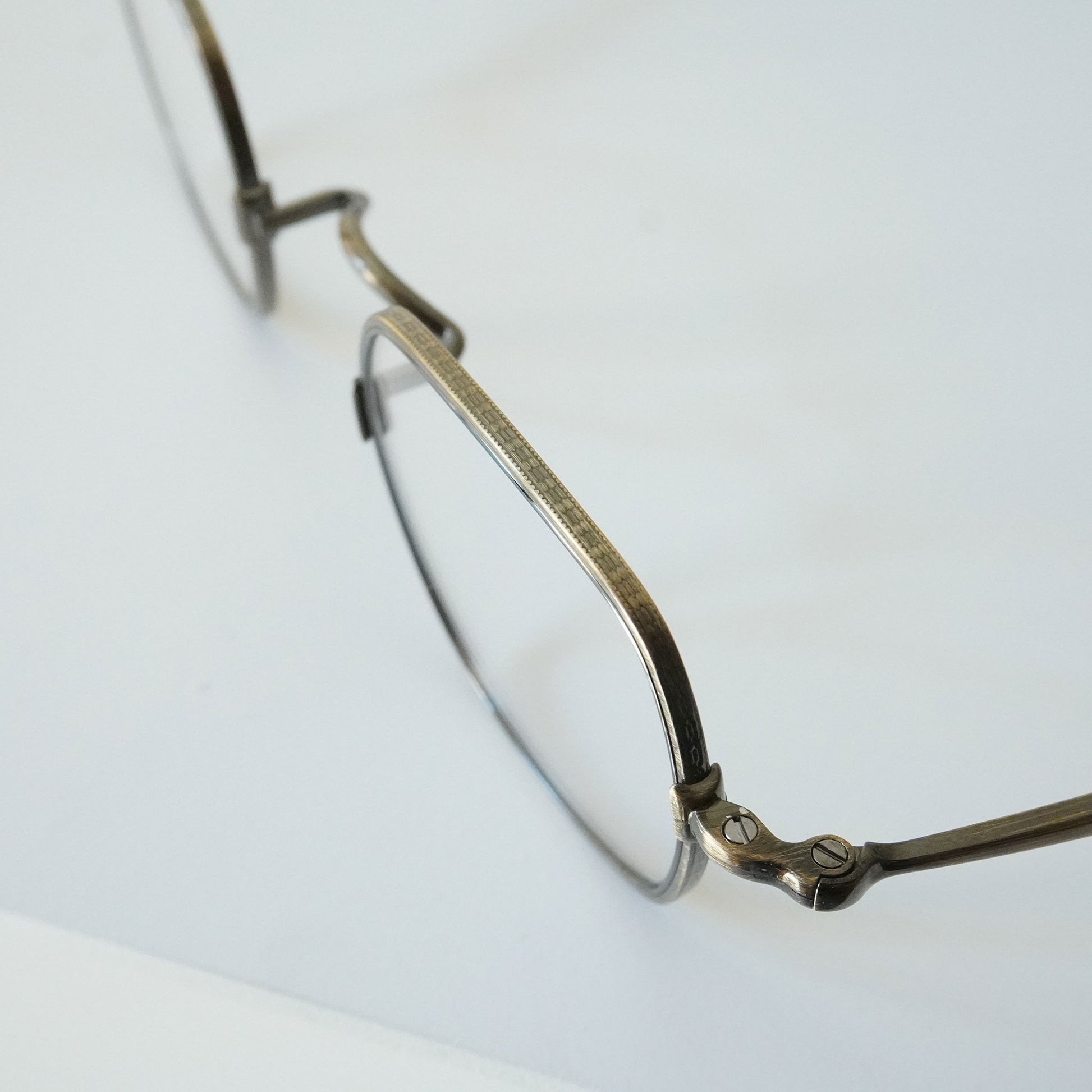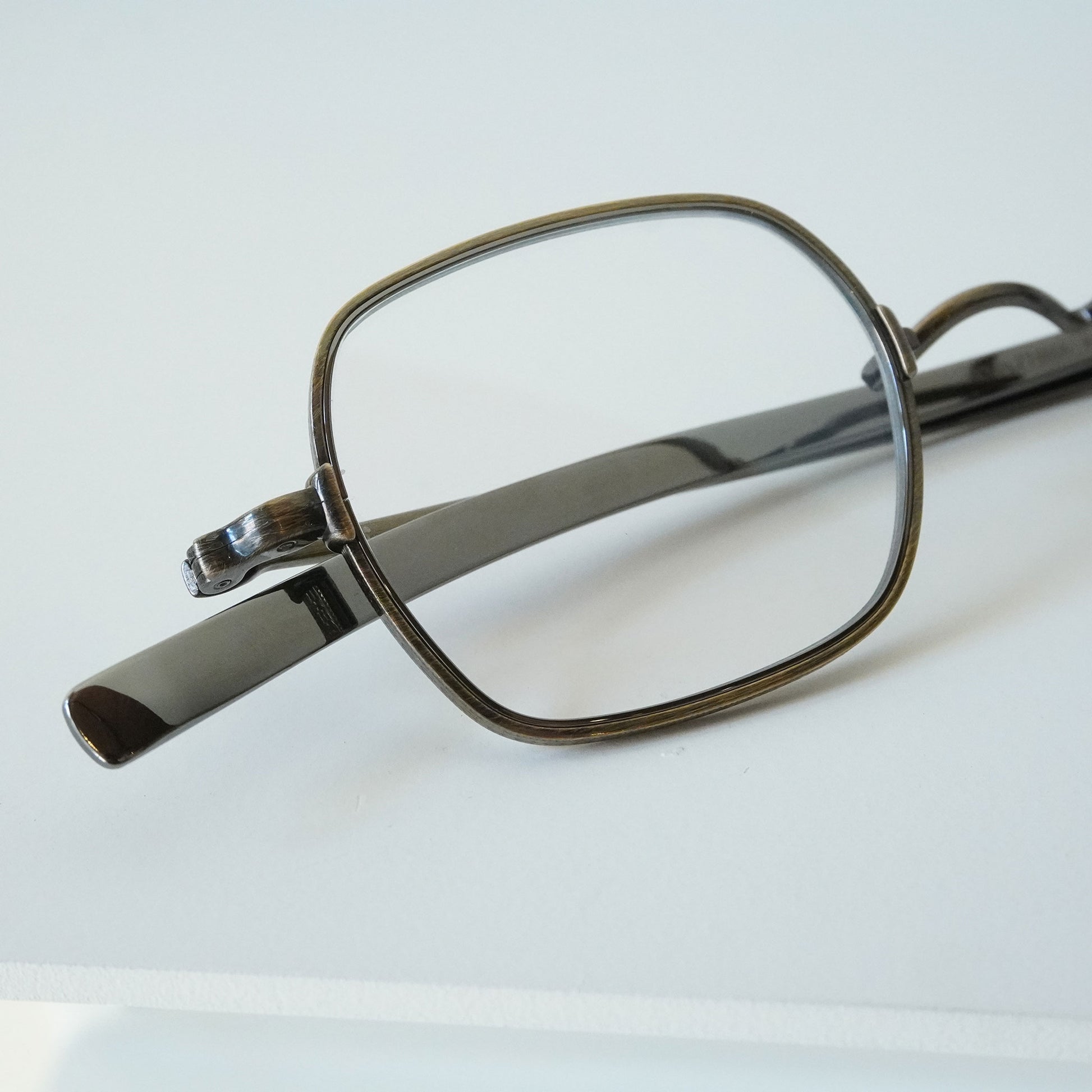 四角いレンズシェイプの一山メガネ。レトロだけど新しさを感じさせるオールチタンで製作された上品なモデルです。