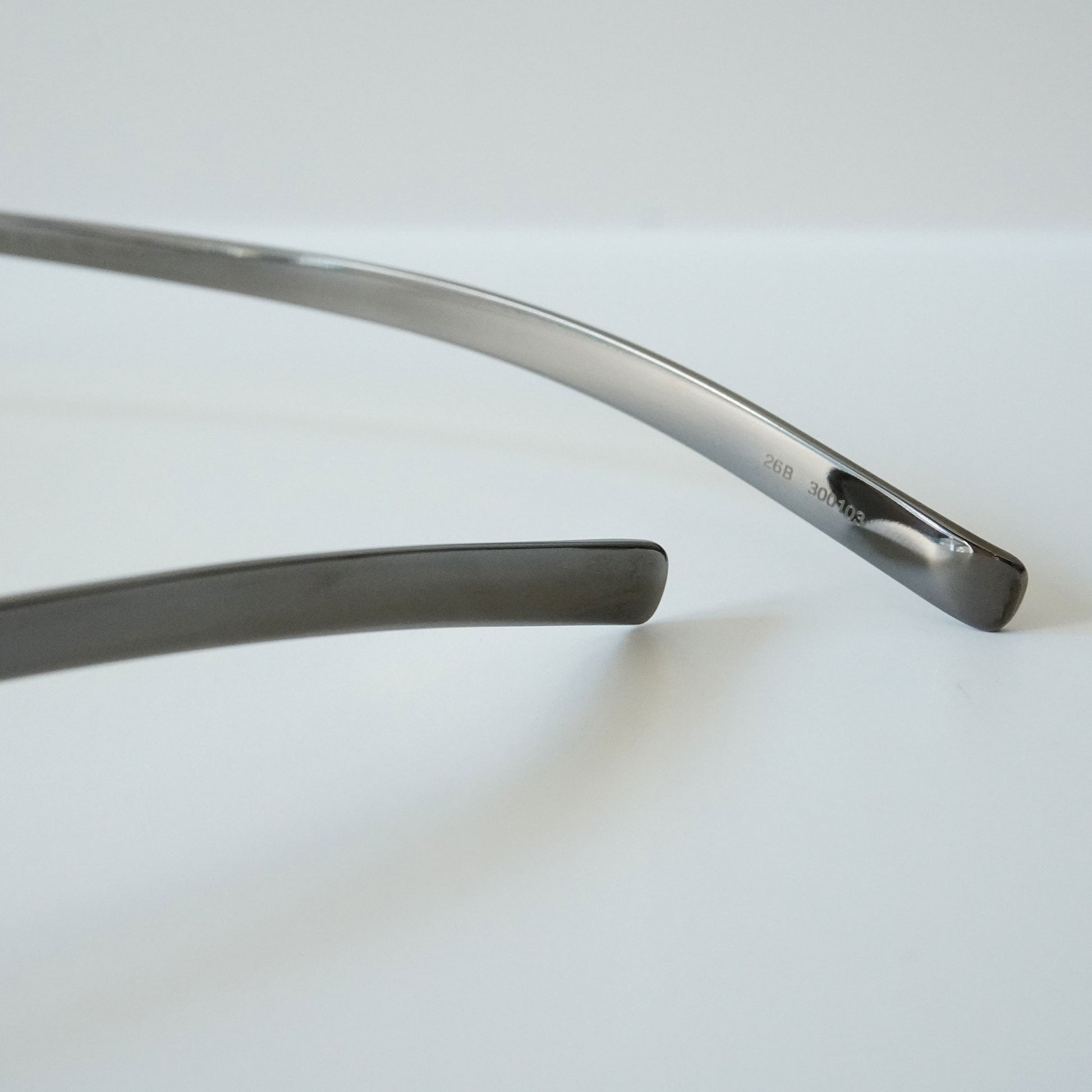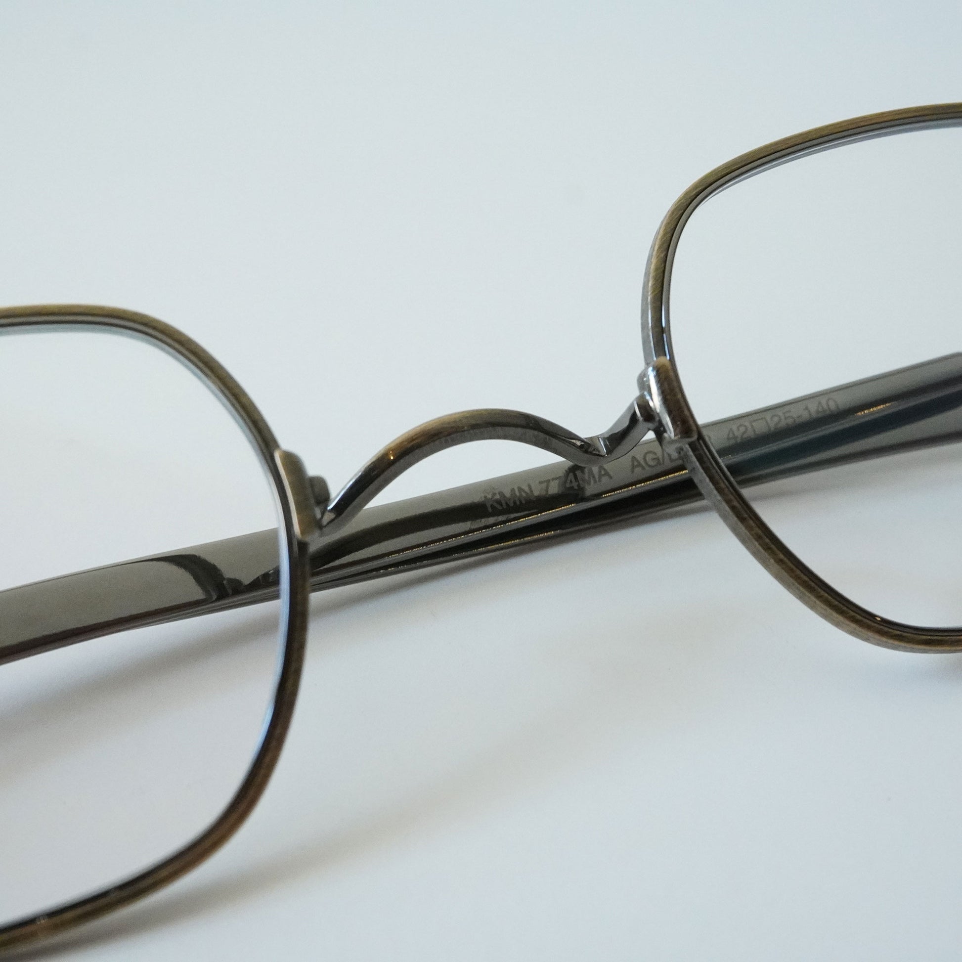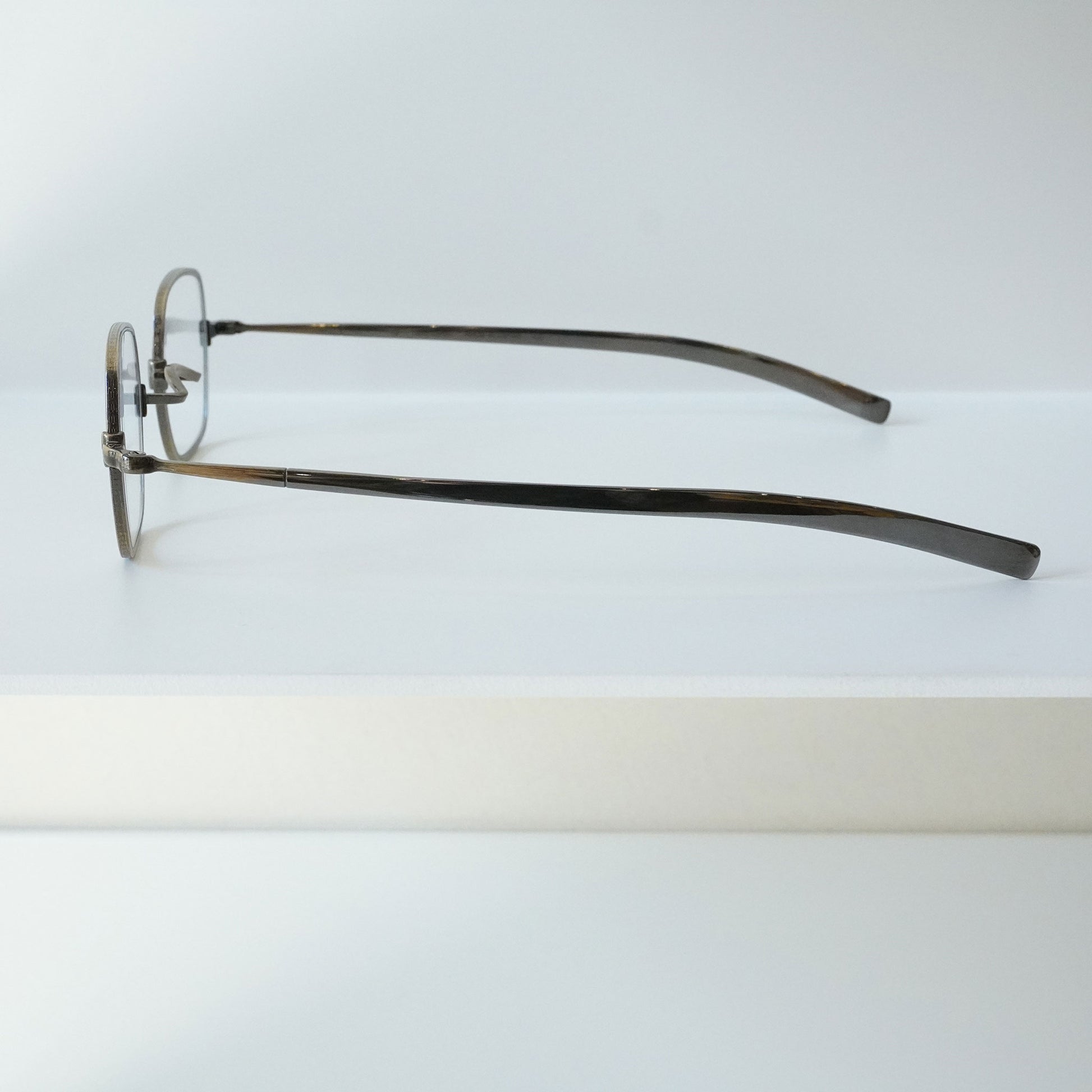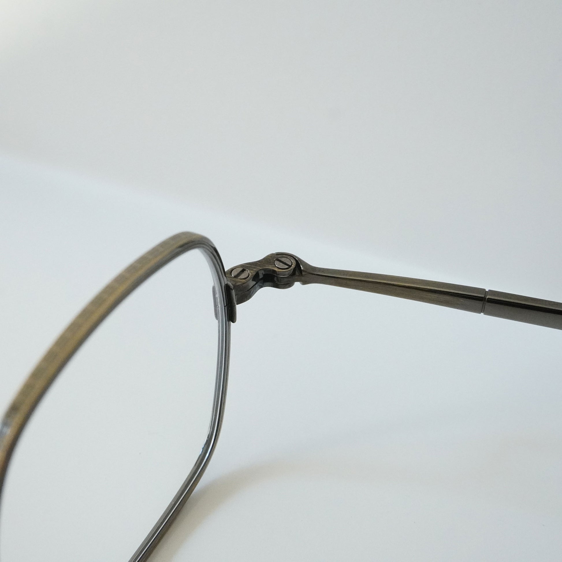 四角いレンズシェイプの一山メガネ。レトロだけど新しさを感じさせるオールチタンで製作された上品なモデルです。