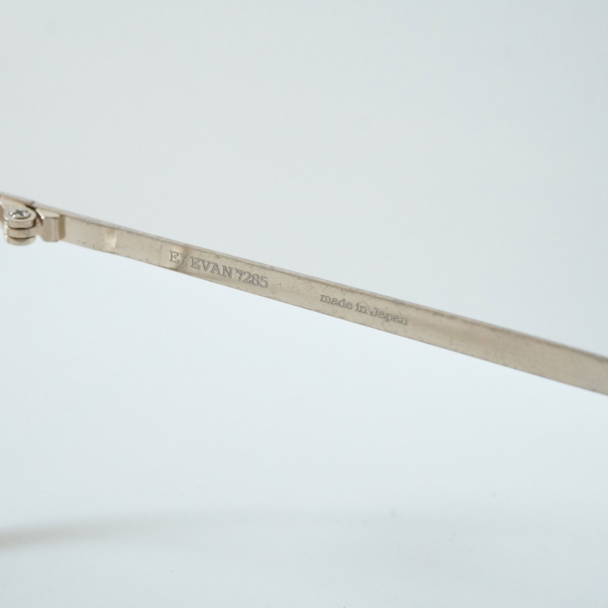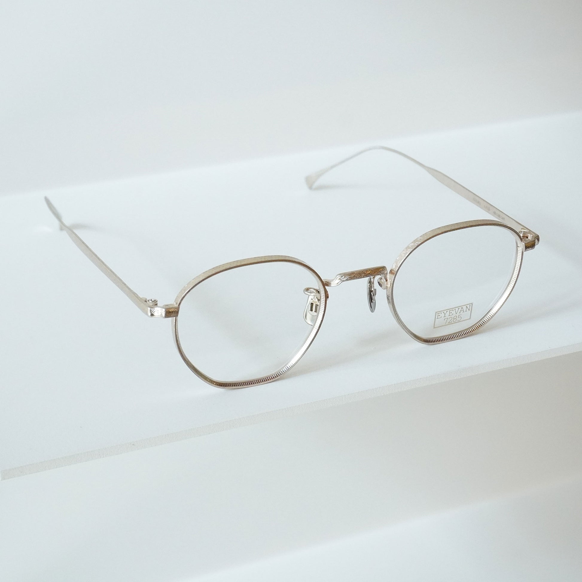 それらの膨大なデザインソースをブレンドし眼鏡というプロダクトに落とし込んでいます。40年代に製造されたフランス製のフォークをソースとしたテンプル、70年代の視力検査枠の構造を取り入れたメタルフレーム、日本の古い寺院の唐草柄からインスパイアされた模様を配したパーツなどが、その考えを具現化したものです。また、EYEVAN 7285の製品は、世界トップクラスの眼鏡生産地である福井県鯖江市の熟練した眼鏡職人の手作業と最新の機械によるマシンメイドの複合した生産工程により作り出されています。伝統的な製法と新しい製法を組み合わせて作り上げる眼鏡は、一見シンプルで何気ないデザインの物が多いですが、細部は非常に技巧的で、鯖江でも特に高い技術を持つ限られた職人の手作業による工程が多くを占めます。約400工程もの作業を経て丁寧に時間をかけて作り上げる眼鏡は工業製品というよりも現代の工芸品と言えるものです。