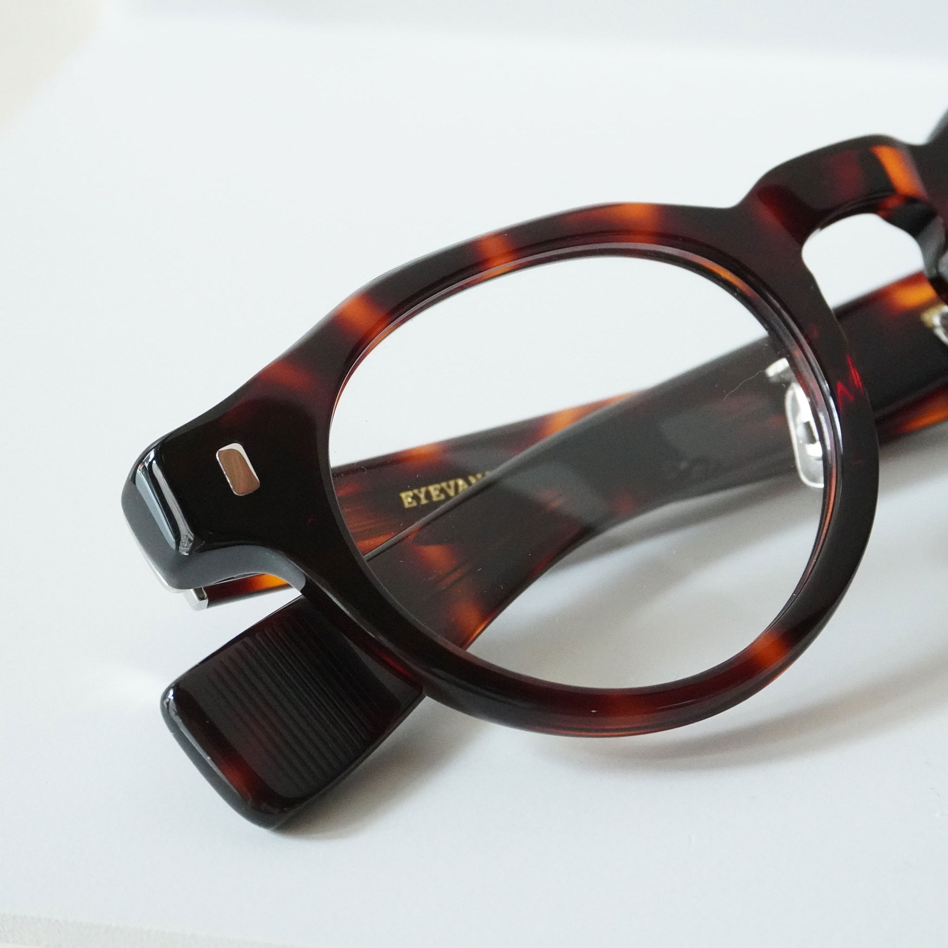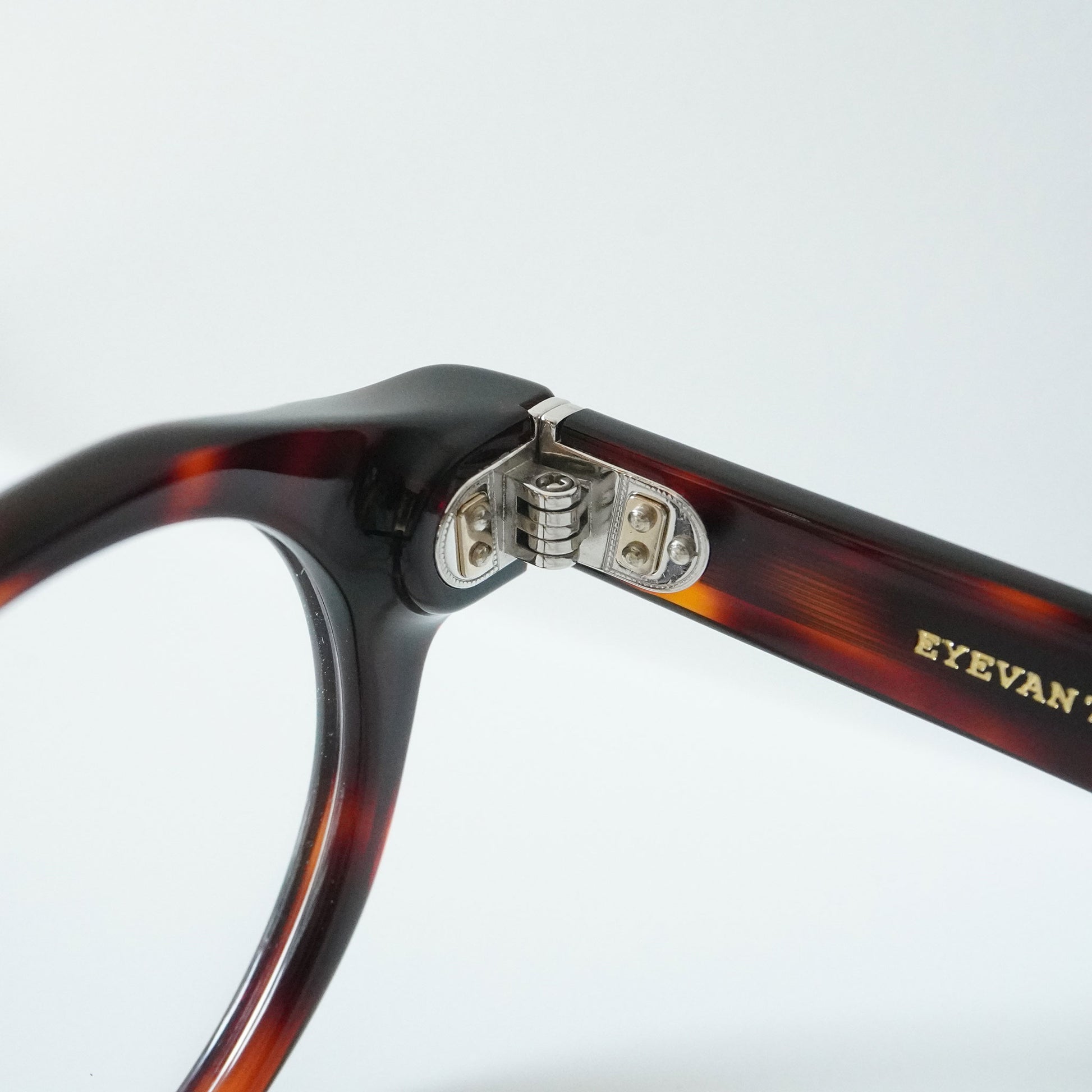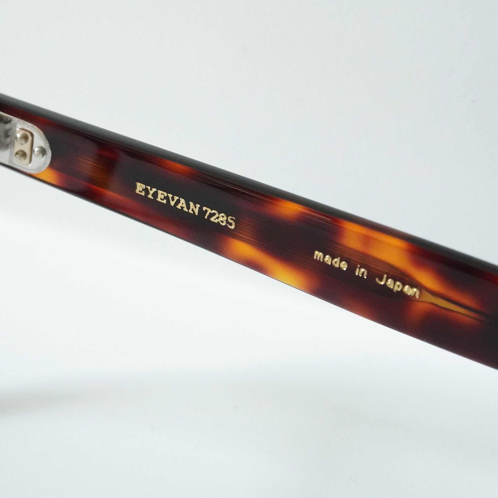 それらの膨大なデザインソースをブレンドし眼鏡というプロダクトに落とし込んでいます。40年代に製造されたフランス製のフォークをソースとしたテンプル、70年代の視力検査枠の構造を取り入れたメタルフレーム、日本の古い寺院の唐草柄からインスパイアされた模様を配したパーツなどが、その考えを具現化したものです。また、EYEVAN 7285の製品は、世界トップクラスの眼鏡生産地である福井県鯖江市の熟練した眼鏡職人の手作業と最新の機械によるマシンメイドの複合した生産工程により作り出されています。伝統的な製法と新しい製法を組み合わせて作り上げる眼鏡は、一見シンプルで何気ないデザインの物が多いですが、細部は非常に技巧的で、鯖江でも特に高い技術を持つ限られた職人の手作業による工程が多くを占めます。約400工程もの作業を経て丁寧に時間をかけて作り上げる眼鏡は工業製品というよりも現代の工芸品と言えるものです。