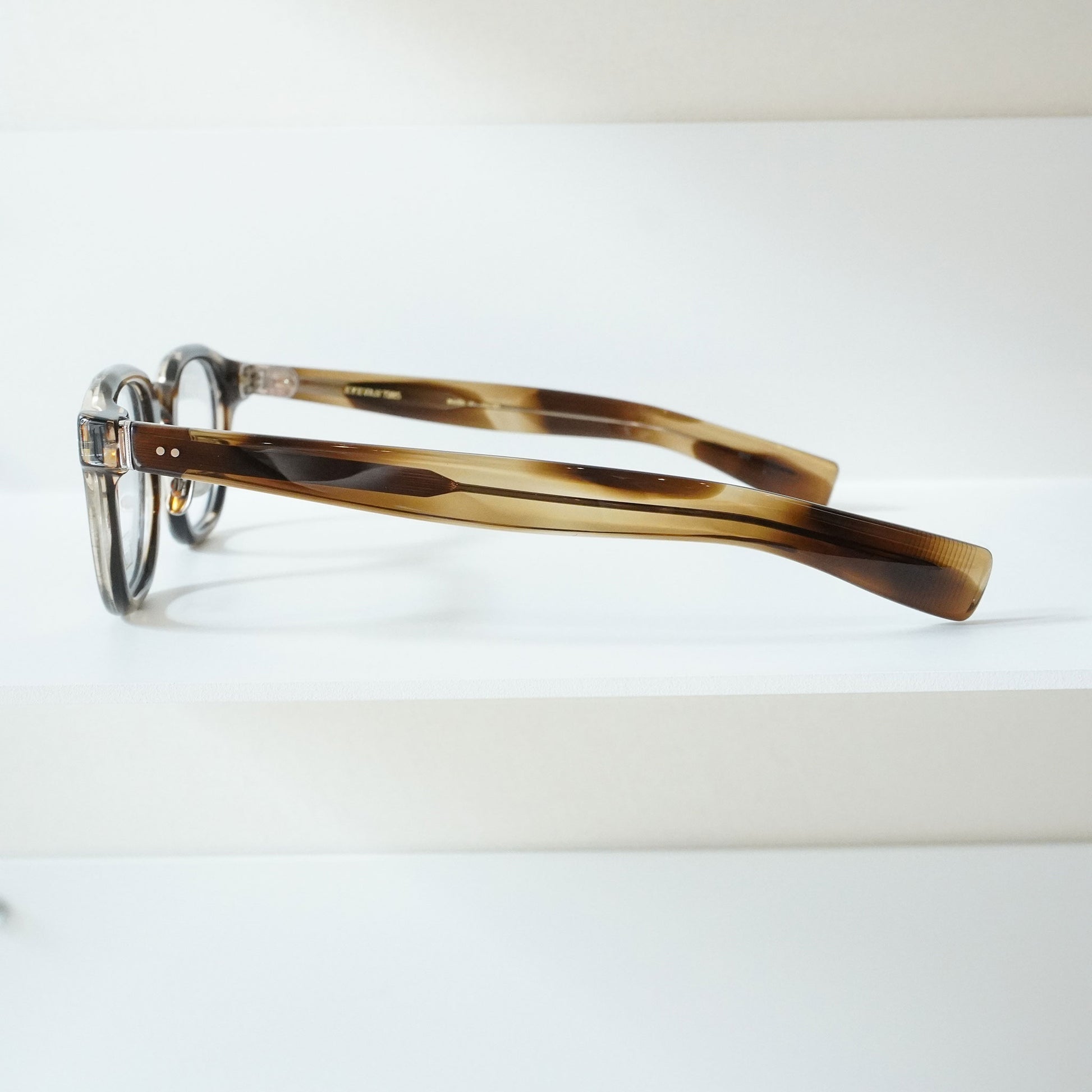 我们将这些众多的设计来源融合在一起,并融入到眼镜产品中。这一理念体现在受 1940 年代法式叉子启发的镜腿、融入 1970 年代眼镜架结构的金属框架,以及受日本古老寺庙的蔓藤花纹启发的图案部件。此外,EYEVAN 7285 产品采用复合生产工艺生产,既有世界级眼镜生产中心福井县鲭江市技艺精湛的眼镜工匠的手工作业,也有采用最新机械的机器制造的产品。这些眼镜融合了传统与新工艺制作而成,很多眼镜乍一看设计简洁随意,但细节却极为精细,许多工序都是由鲭江数量有限的技术精湛的工匠手工完成的。这些眼镜经过一段时间的精心制作,经过约400道工序,可以说是现代手工艺品,而不是工业产品。