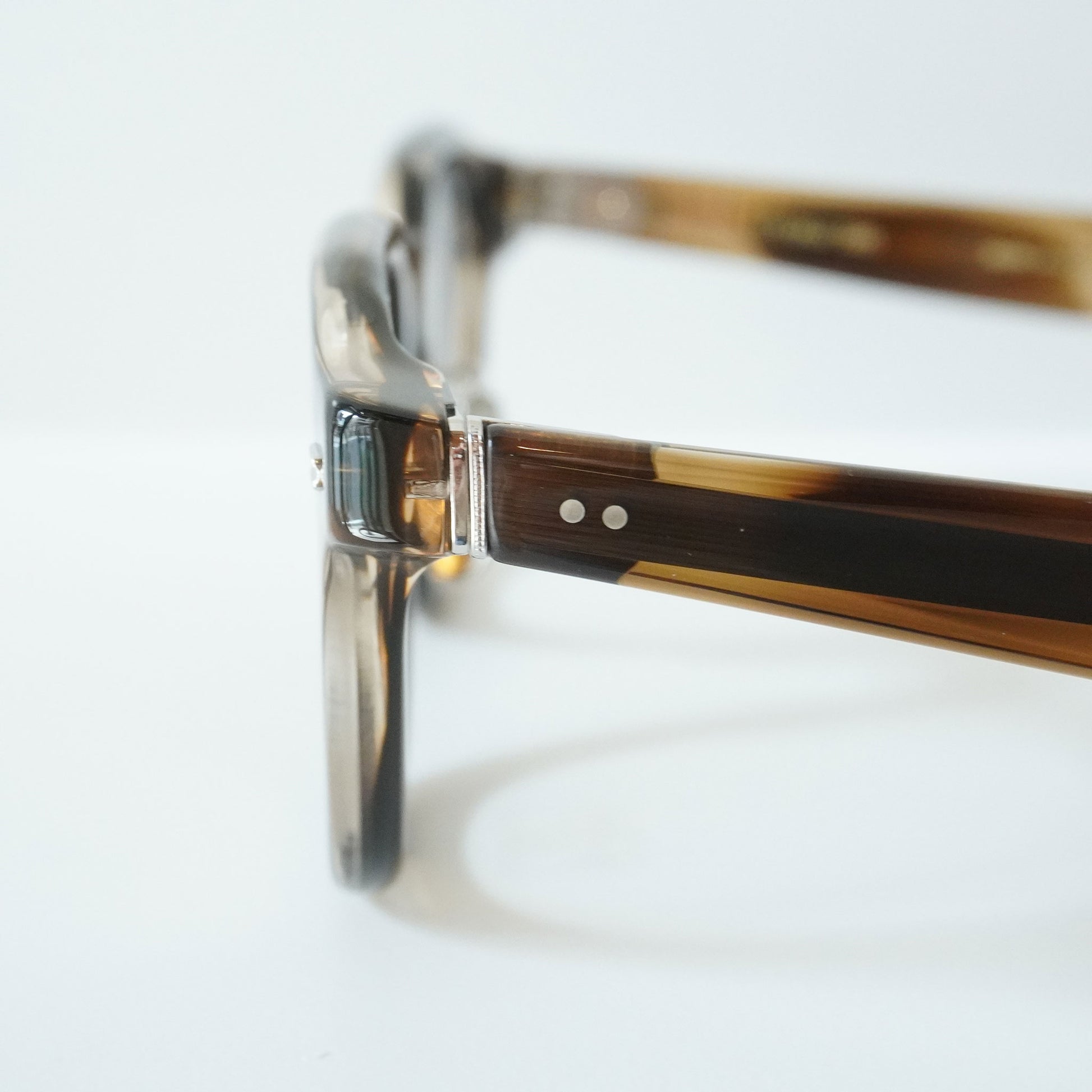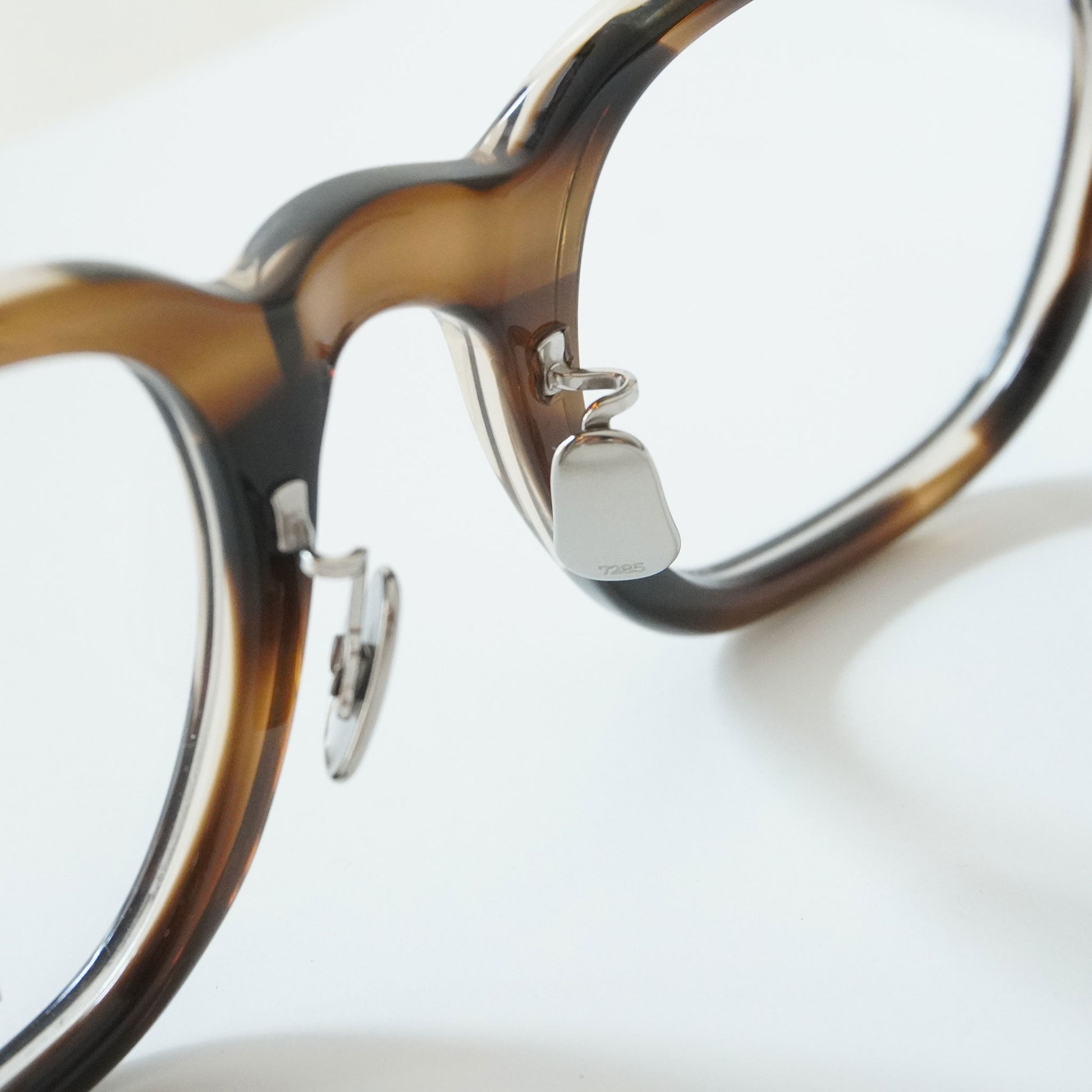 「ブリティッシュヴィンテージとフレンチヴィンテージの中間的なデザイン」という2018年リリースモデル[791]から継続して探求しているテーマに則って作り上げたモデル。ブリティッシュ的な少し野暮ったい雰囲気のスクエア型のレンズシェイプにフレンチを想起させる吊り上がった智を組み合わせ、コンセプトイメージを具現化。フロントには古い民家の屋根の瓦をデザインソースとしたサンプラチナ製の飾りカシメを設置した。