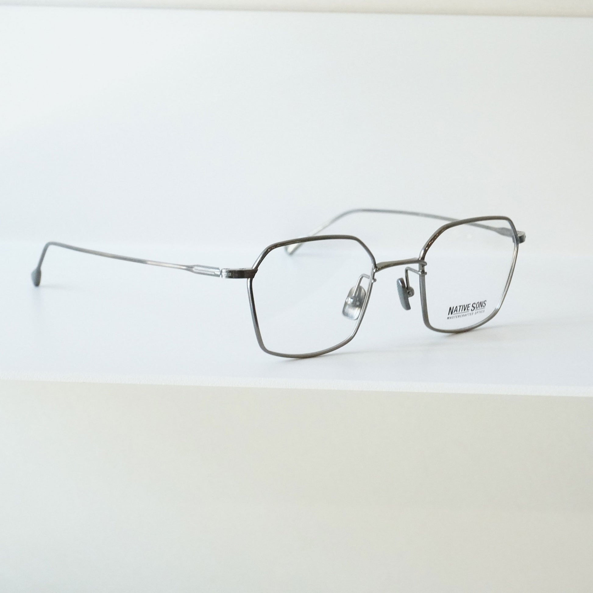 NATIVESONS 的简约金属系列。六边形的设计,简单却又略显古怪的设计,让你永远不会厌倦。由于尺寸较小,建议脸宽较小或中等的人使用。充满知性与性感气息的模特。