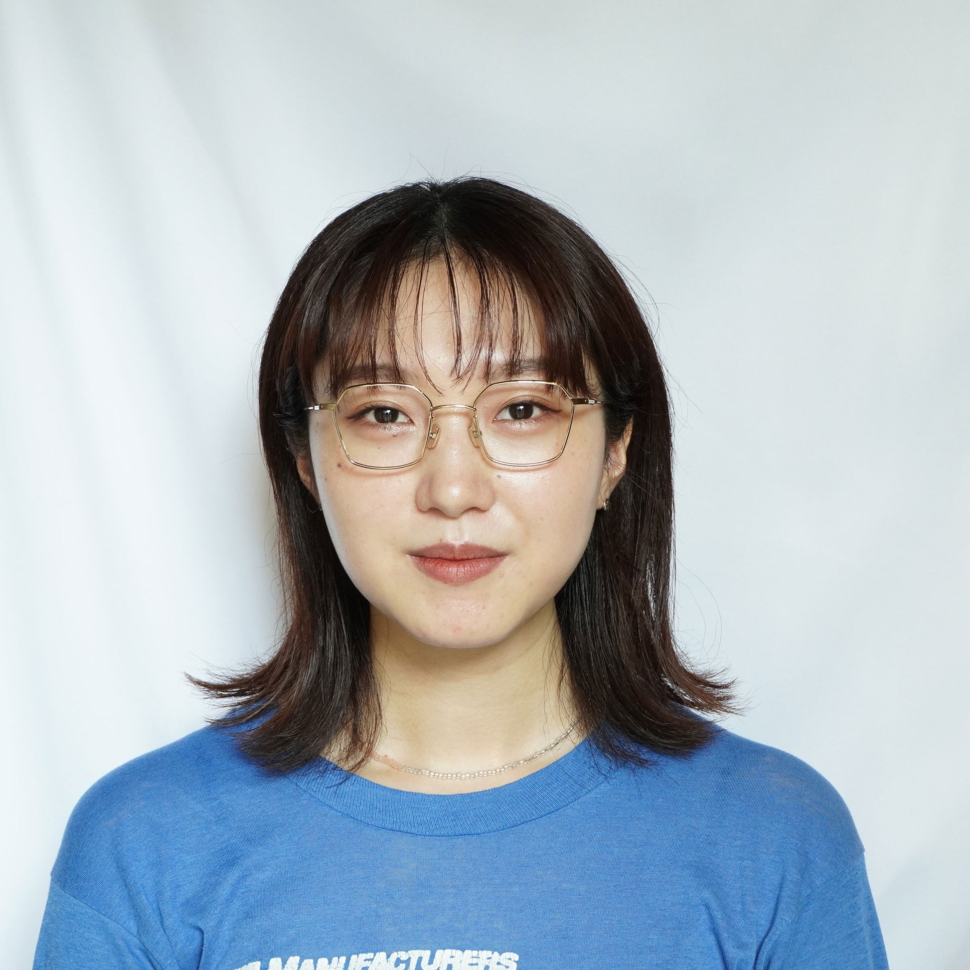 NATIVESONS 的简约金属系列。六边形的设计,简单却又略显古怪的设计,让你永远不会厌倦。由于尺寸较小,建议脸宽较小或中等的人使用。充满知性与性感气息的模特。
