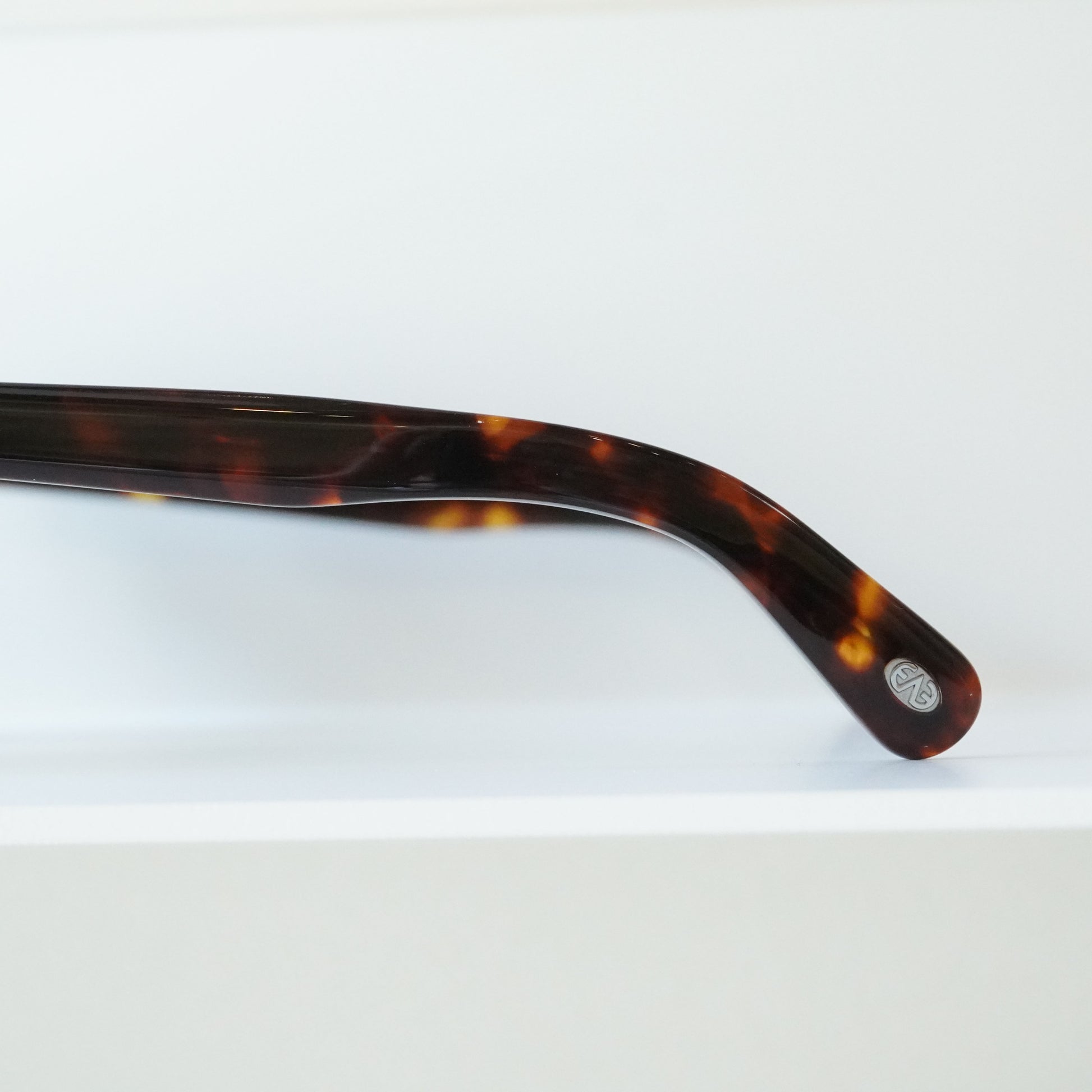 该款式的正面和镜腿略厚,顶部和底部有独特的斜角切割,这在 20 世纪 50 年代罕见的法国复古单品中很常见。正面有一个 3PIN 填缝铰链,镜腿有一个 2PIN 填缝铰链,打造真实的外观。