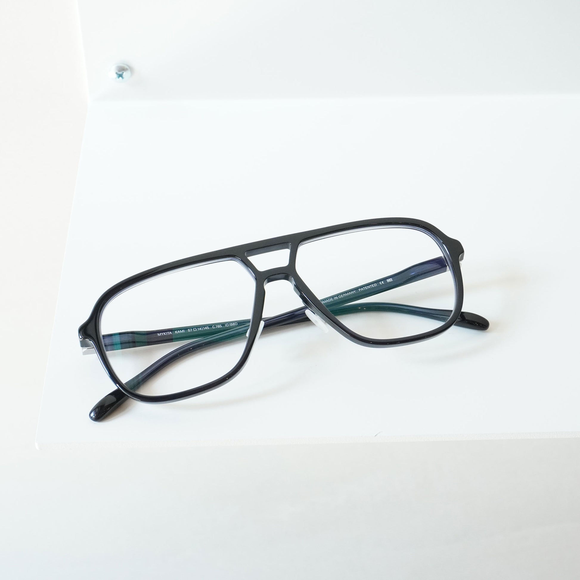 简单流线型的两桥框架。 MYKITA 典型的现代外观非常有吸引力。深靛蓝色与皮肤融合得很好,而且易于穿着。