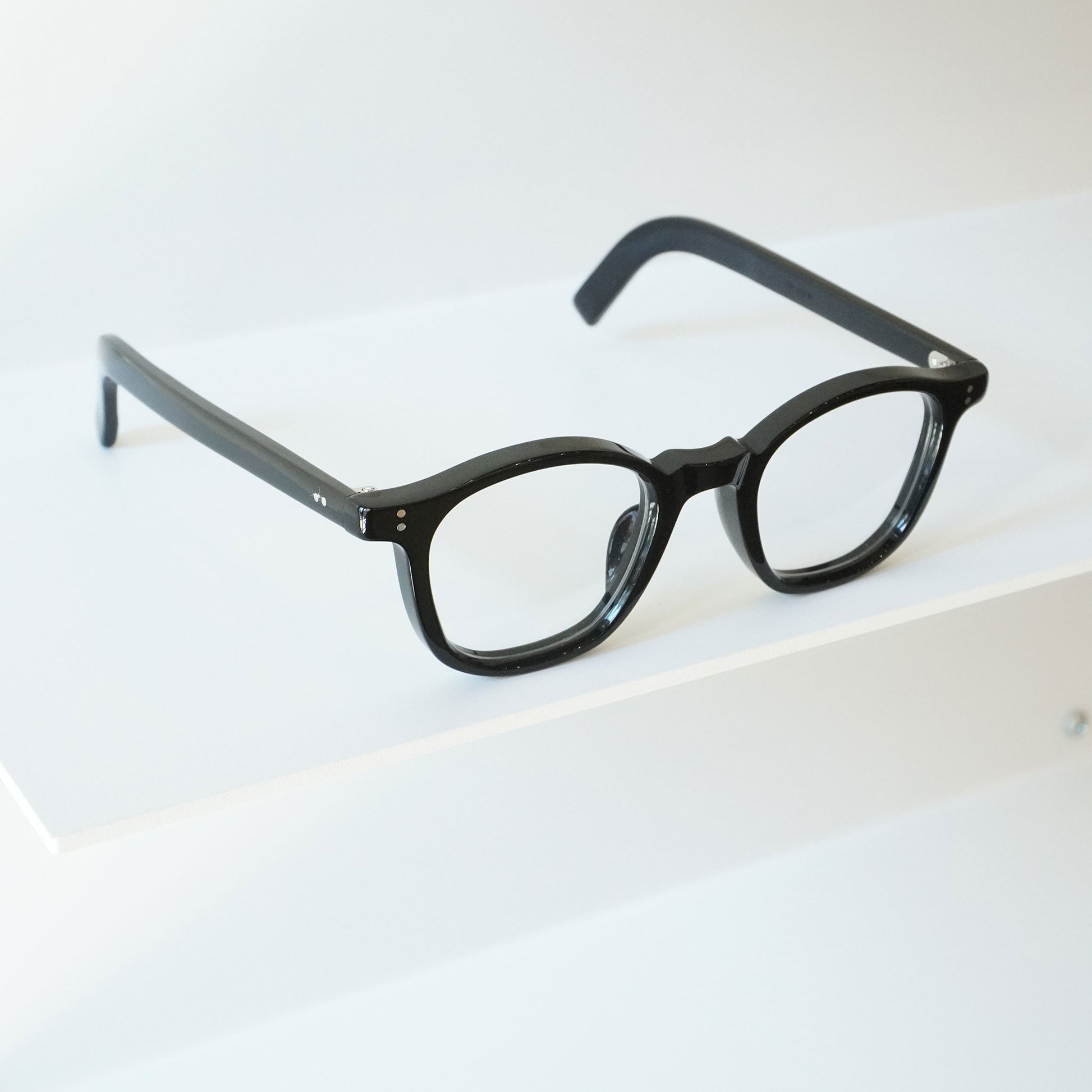 フレンチヴィンテージの中でも最も人気のあるパリジャンと呼ばれるデザイン。小ぶりですっきりとした印象です。四角めなレンズシェイプですが全体的に柔らかさのあるメガネです。