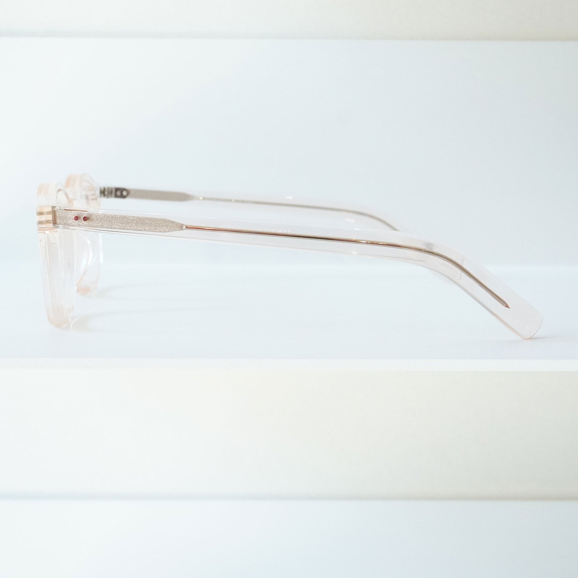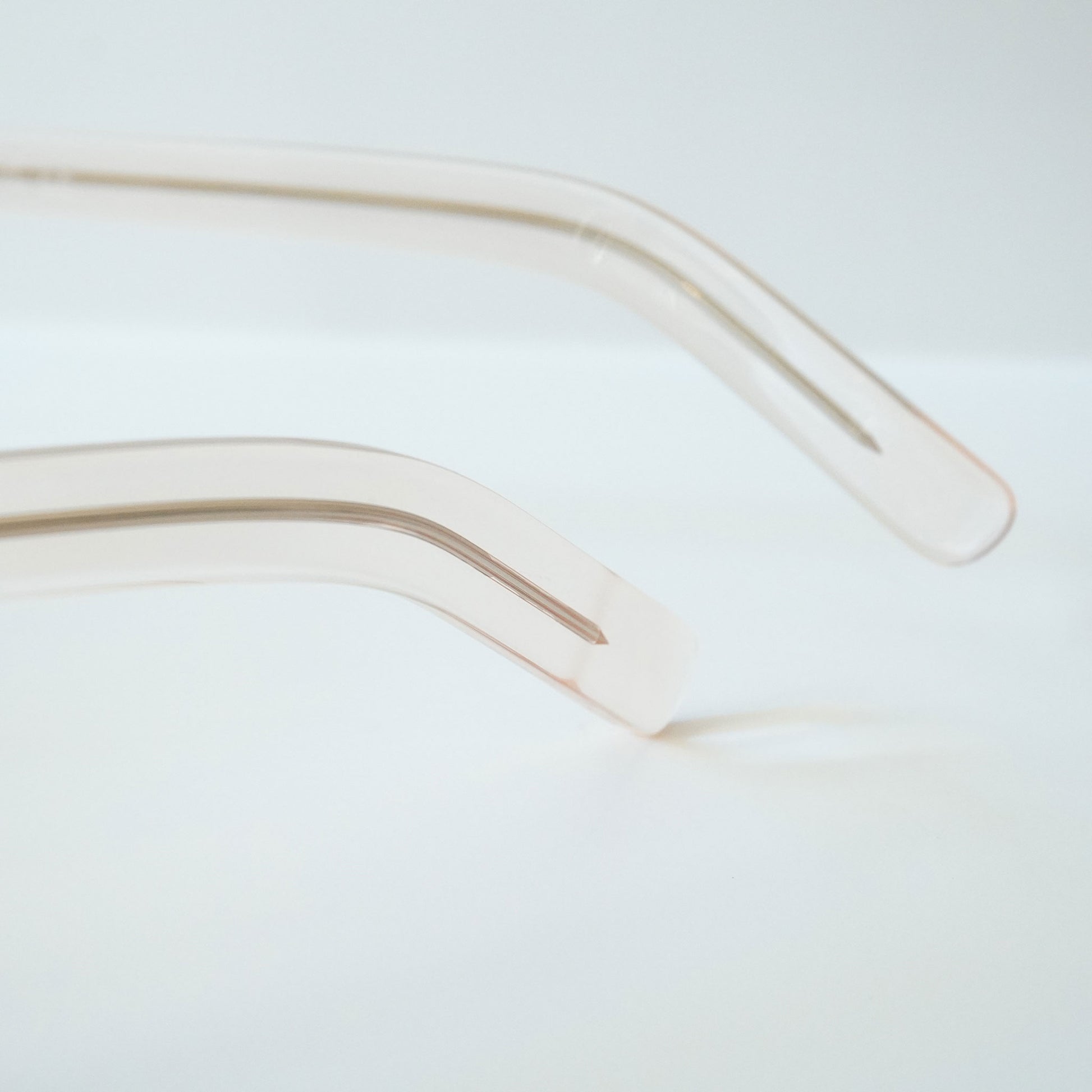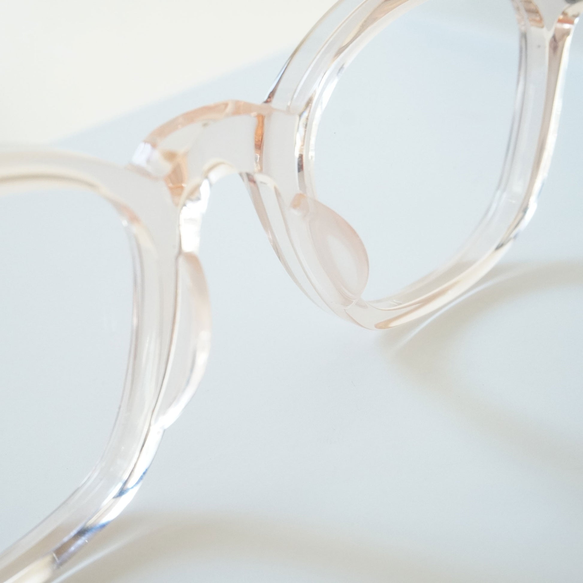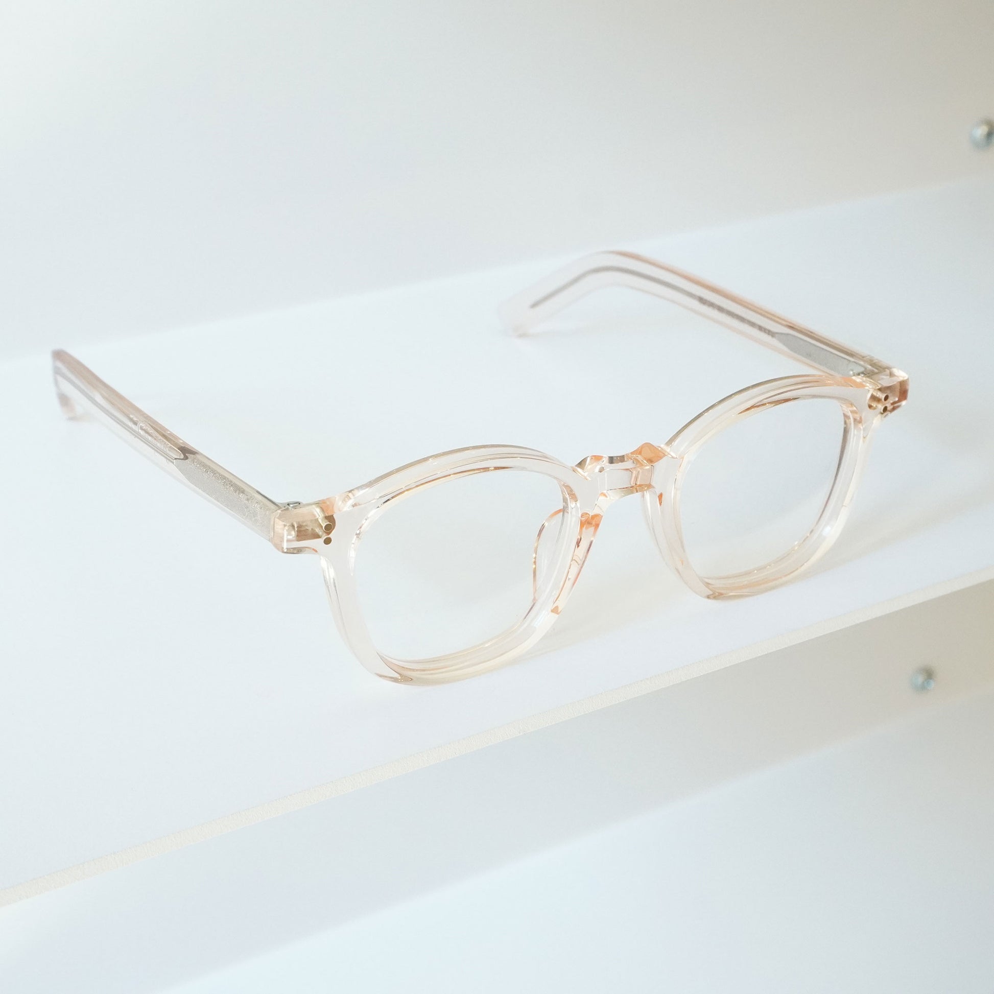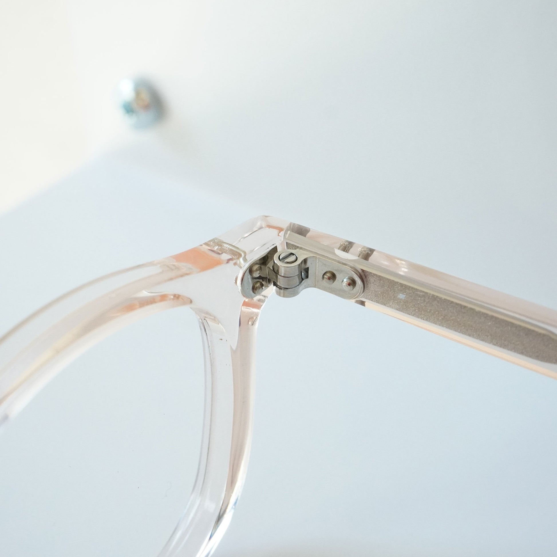 フレンチヴィンテージの中でも最も人気のあるパリジャンと呼ばれるデザイン。小ぶりですっきりとした印象です。四角めなレンズシェイプですが全体的に柔らかさのあるメガネです。