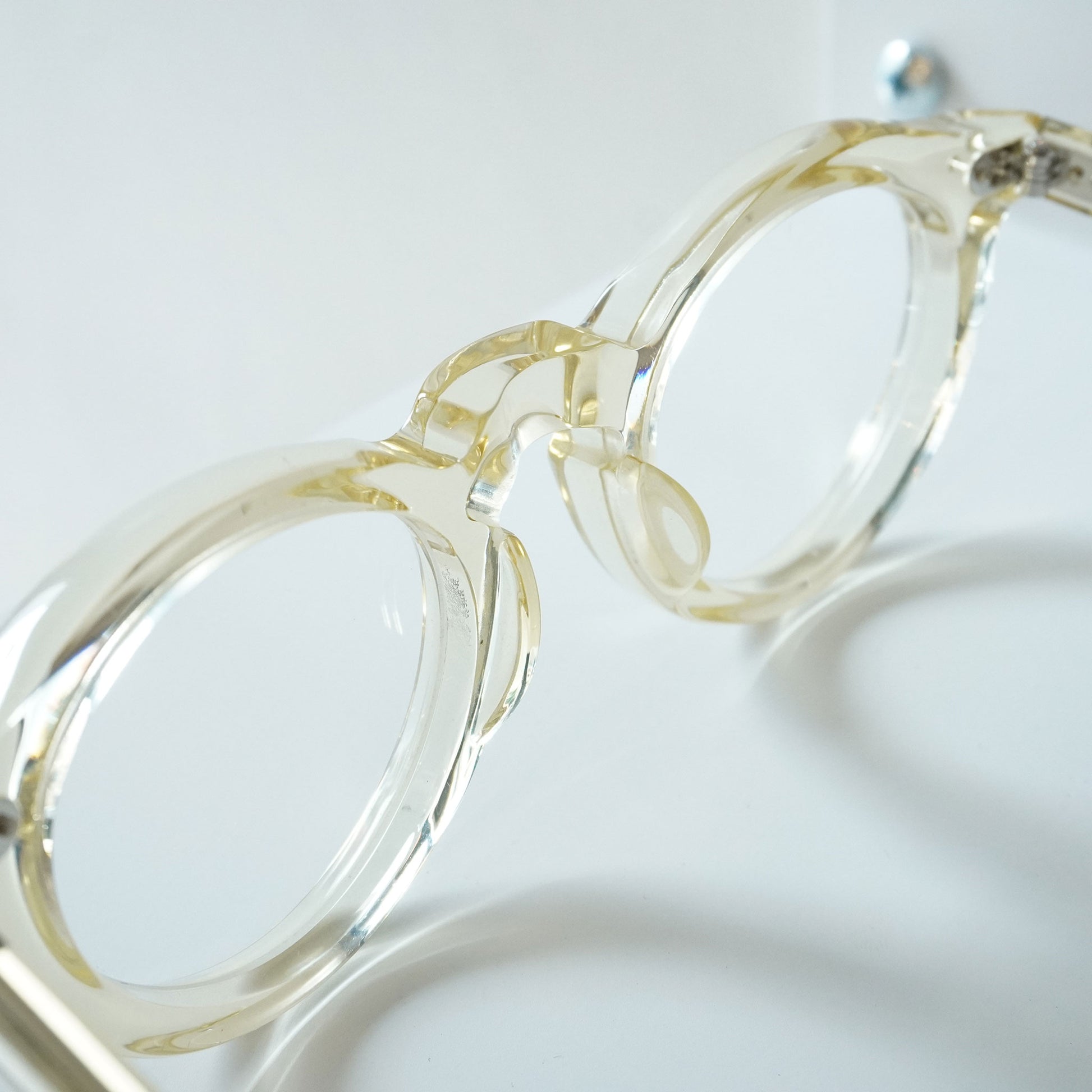 パントシェイプの丸みのある人気モデルです。8mmの厚みが存在感を引き立たせてくれるフレームフランスらしいメガネ。角のない柔らかく美しいベーシックなデザインです。小ぶりなサイズ感なので小顔さんや女性にオススメです。