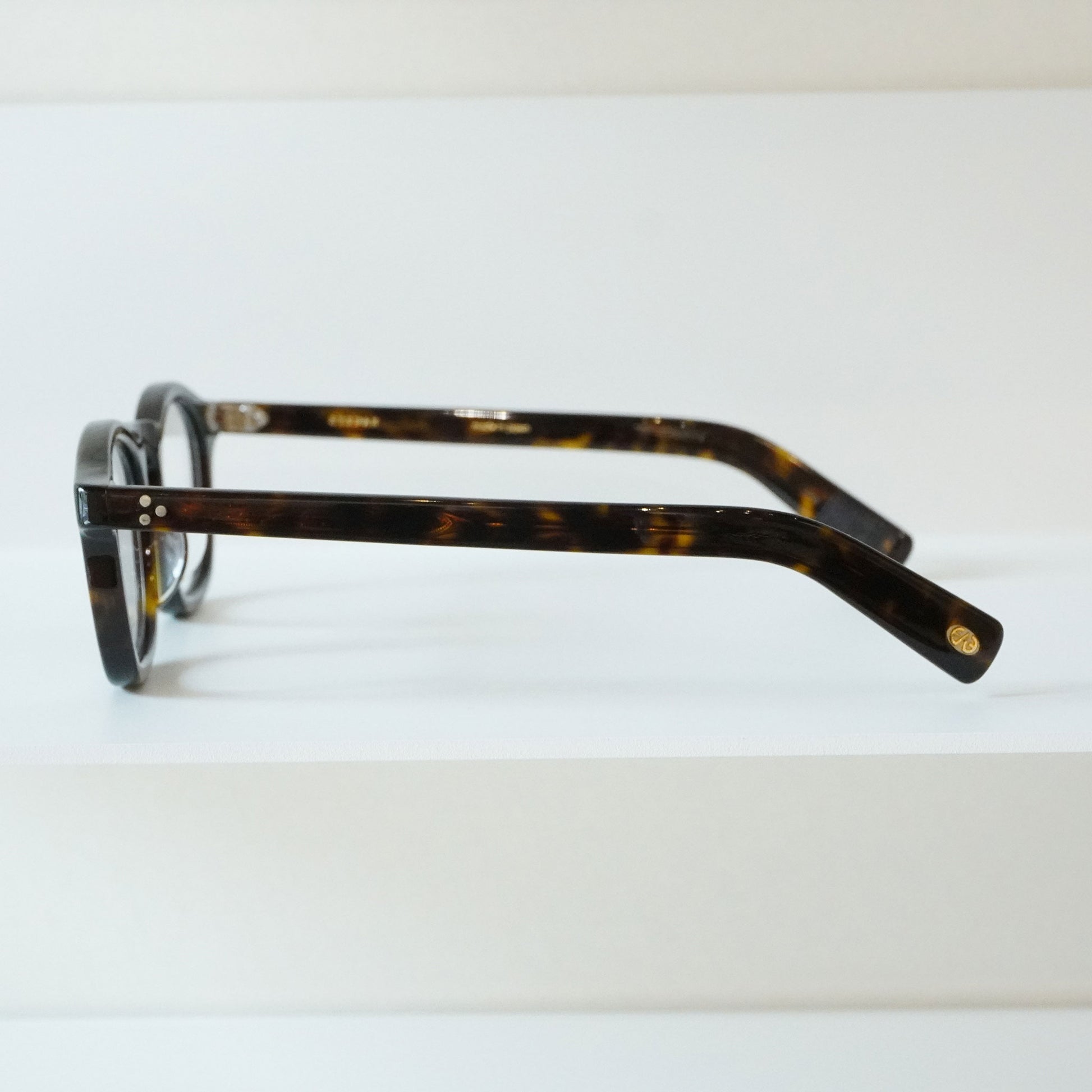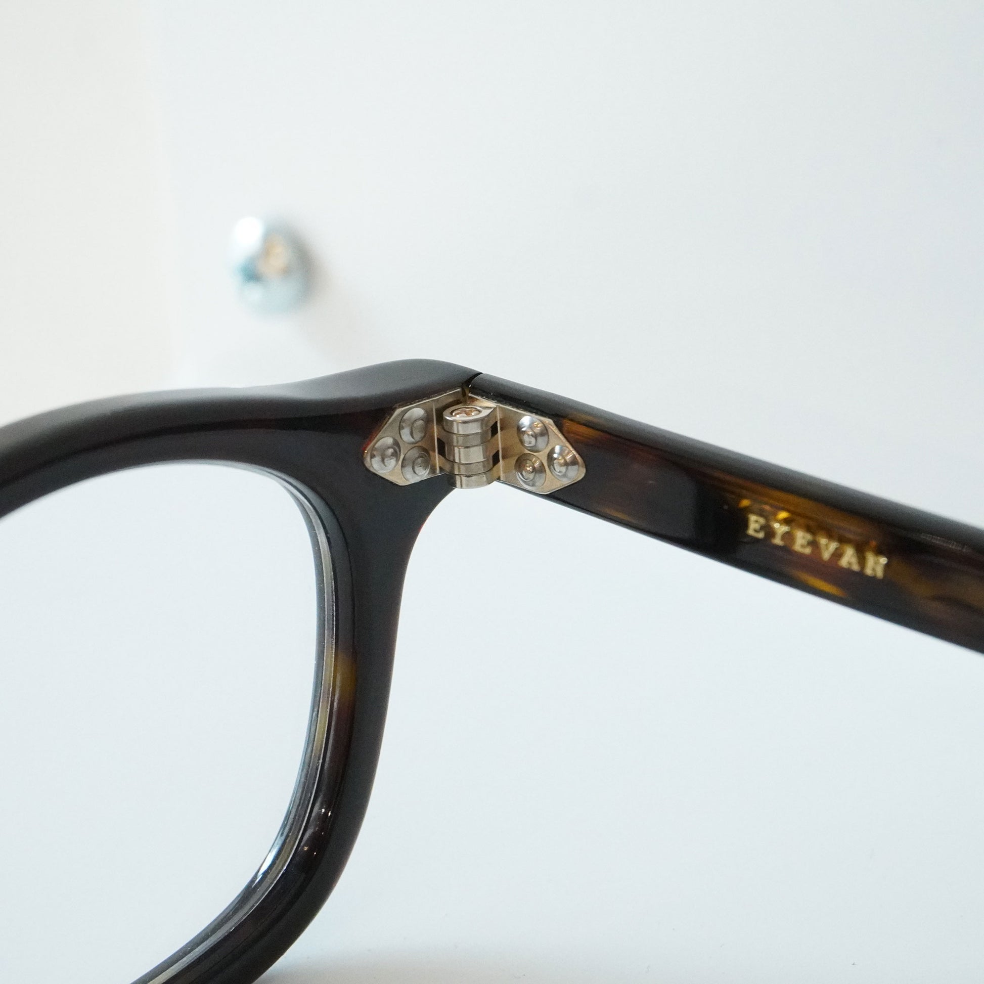 该款式的设计灵感源自法国复古风格,采用 EYEVAN 风格设计,正面厚重前卫,镜腿极粗宽大。正面和镜腿铰链是 EYEVAN 三角形基座铰链的原始复制品,该铰链用于工厂闲置的复古样品中。填缝 PIN 使用 90 年代使用的加固部件来防止其脱落。虽然简单,但还是很注重细节。
