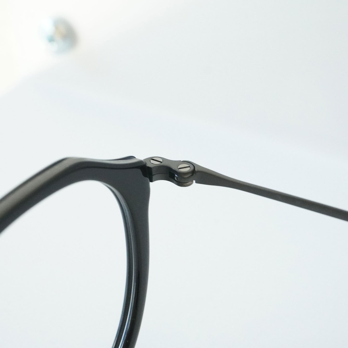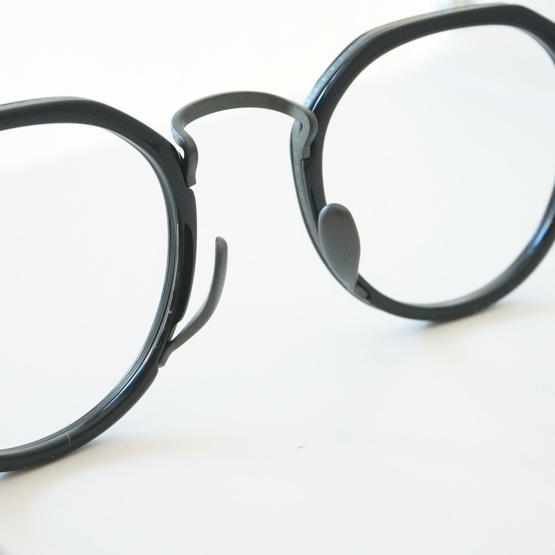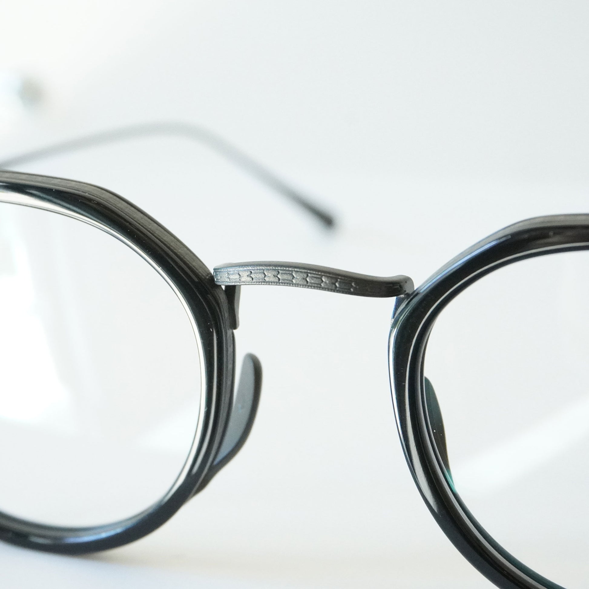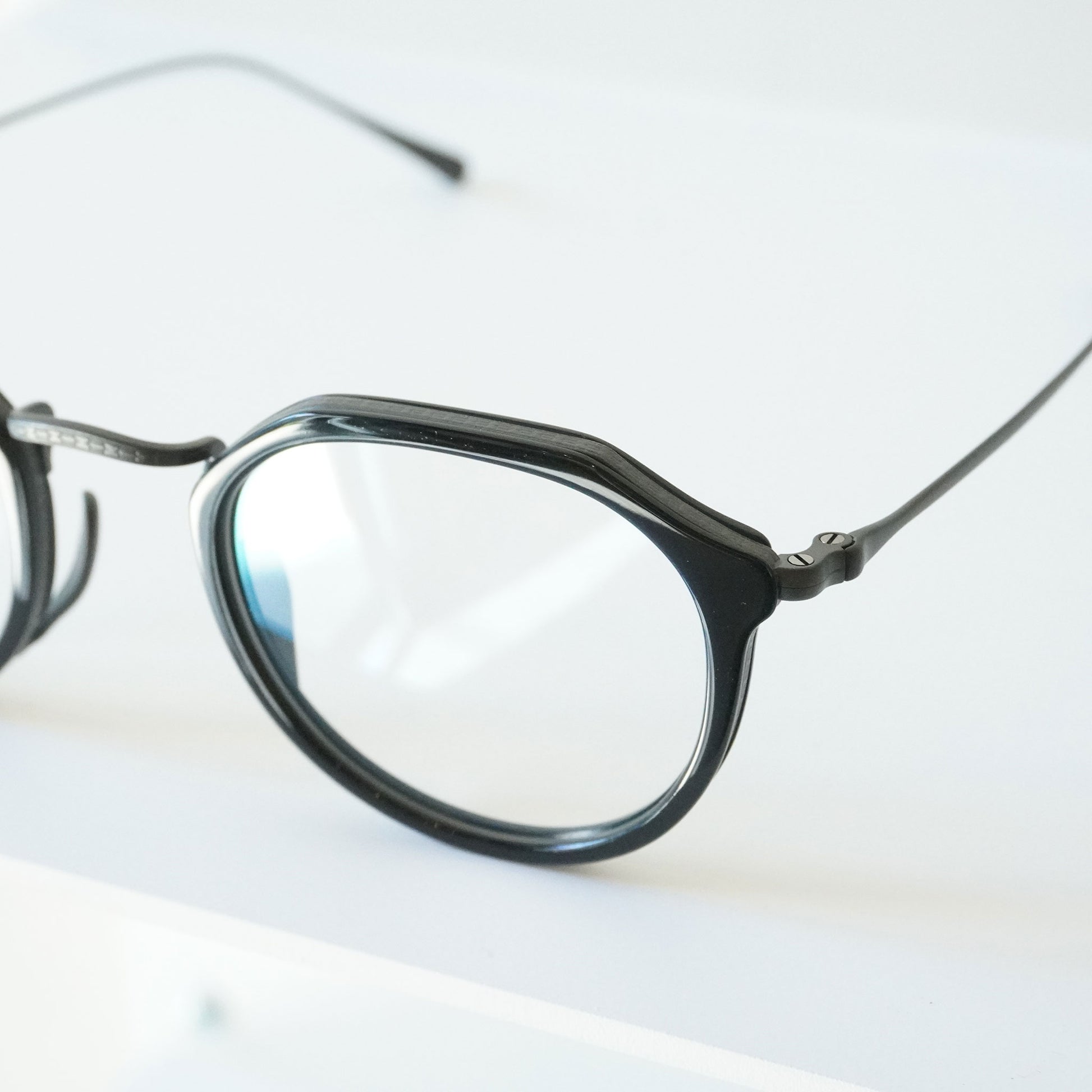 皇冠裤形眼镜,纤薄且易于佩戴。钛金属和醋酸纤维的组合重量轻且易于悬挂,深受男士和女士的欢迎。 KameManNen 标志刻在钛合金轮圈上,赋予其奢华外观。鼻托造型简洁美观,从底部延伸出来。适合广泛人群它具有中等尺寸的感觉。透明色是一种流行的颜色,给人一种轻盈、精致的氛围。