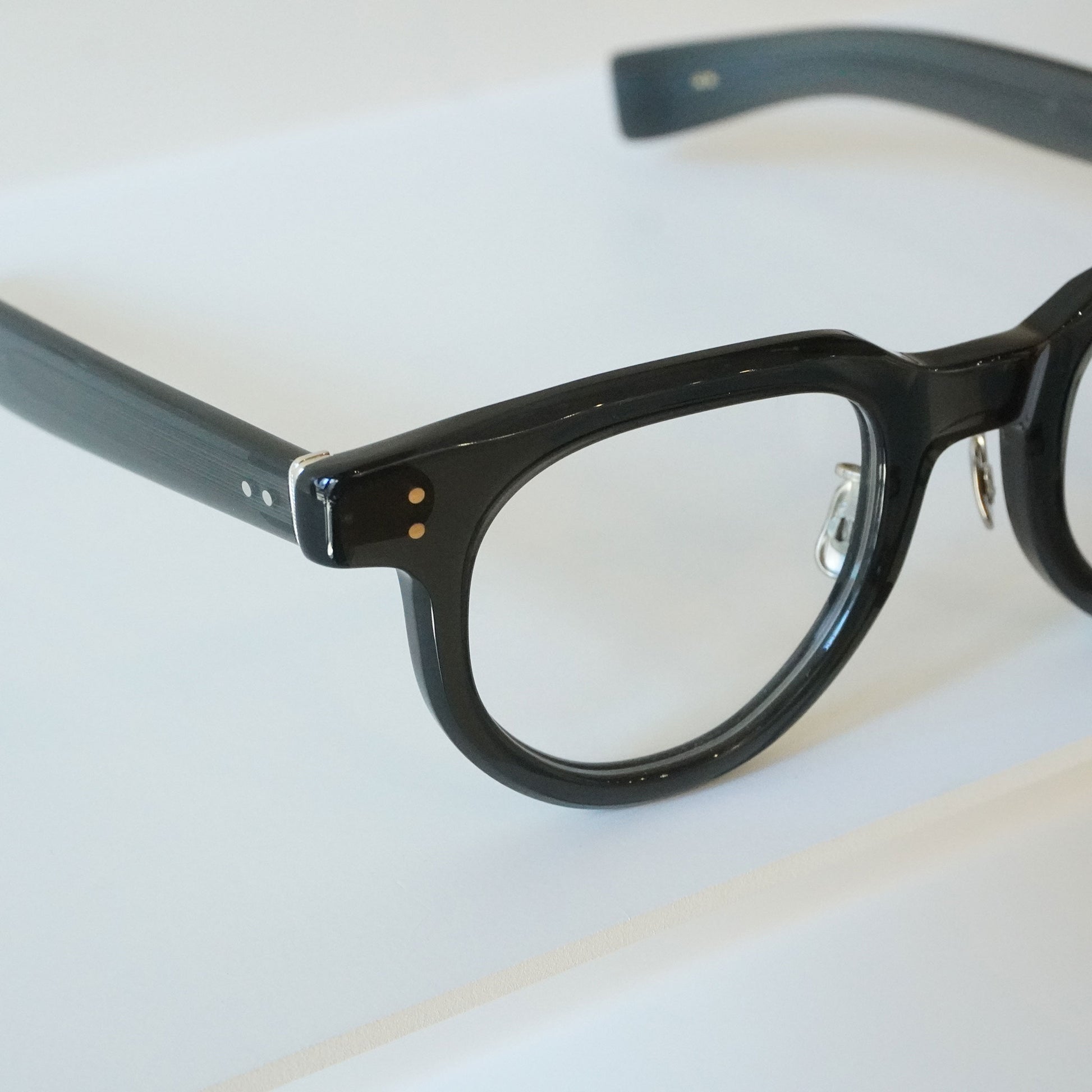 基于 1935 年出版的美国历史眼镜制造商目录中的镜片形状采样的模型。这种历经数季精炼而成的镜片形状,融入到镜框设计中,极具特色,乍一看难以区分左右。正面和镜腿配有军用铰链,并带有 2 针间隔的嵌缝。该铰链和平垫圈是该型号新制造的零件。细节和创意都很经典,但整体设计却让人想起当下的氛围。这款太阳镜采用原创的“伊万曲线镜片”,这是一种日本制造的玻璃镜片,通过混合金属颗粒产生色调,将其熔化,然后逐一模制而成。