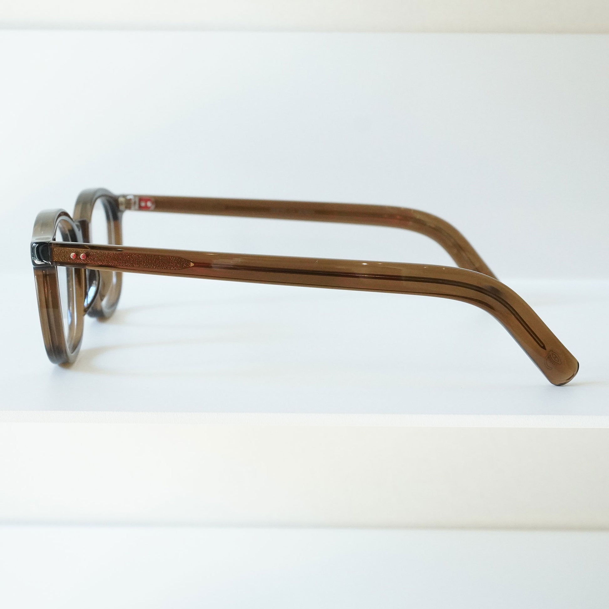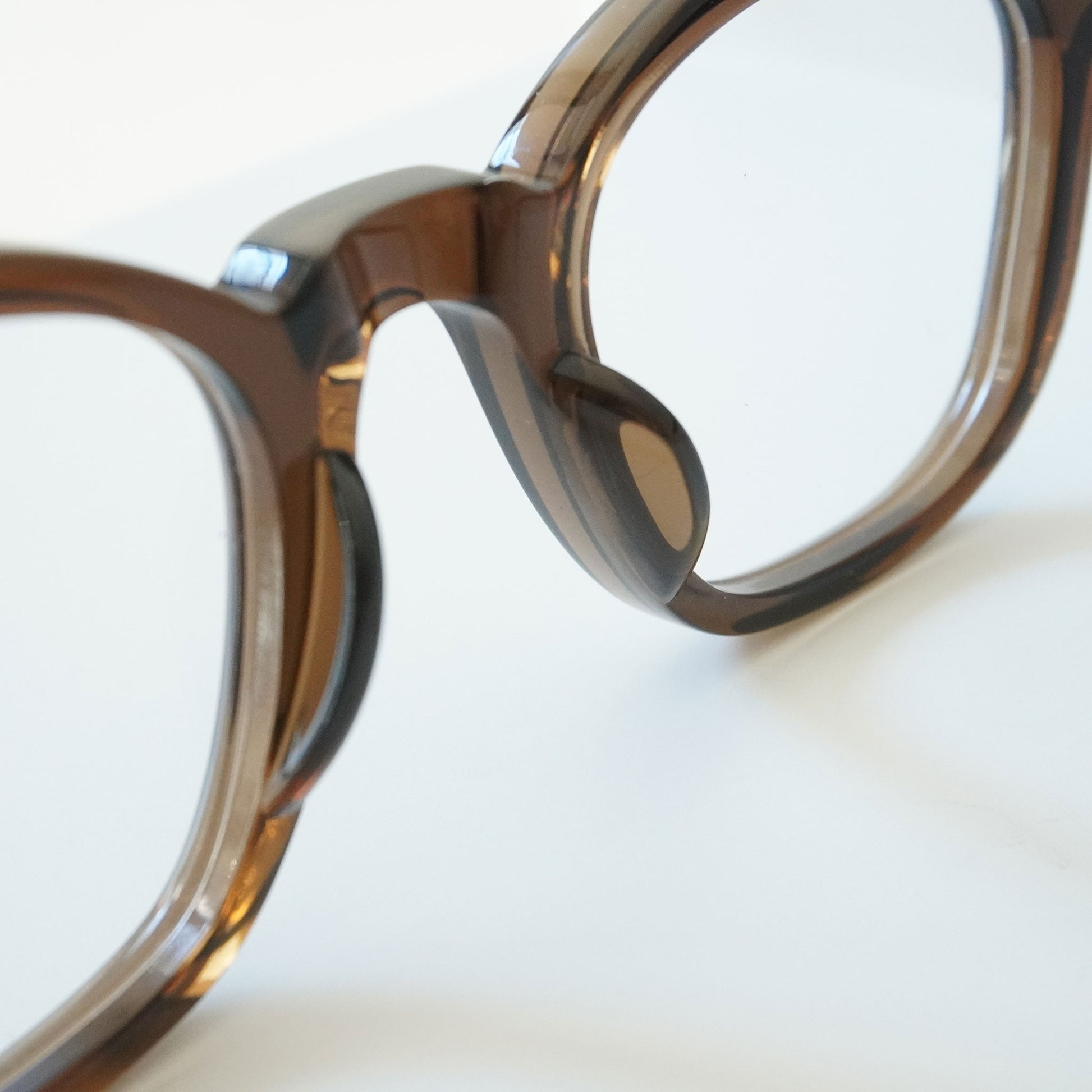 フレンチヴィンテージの中でも最も人気のあるパリジャンと呼ばれるデザイン。小ぶりですっきりとした印象です。四角めなレンズシェイプですが全体的に柔らかさのあるメガネです。