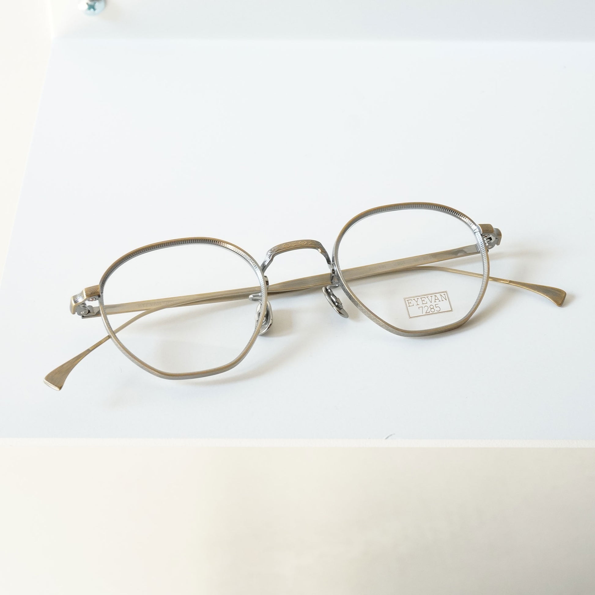 我们将这些众多的设计来源融合在一起,并融入到眼镜产品中。这一理念体现在受 1940 年代法式叉子启发的镜腿、融入 1970 年代眼镜架结构的金属框架,以及受日本古老寺庙的蔓藤花纹启发的图案部件。此外,EYEVAN 7285 产品采用复合生产工艺生产,既有世界级眼镜生产中心福井县鲭江市技艺精湛的眼镜工匠的手工作业,也有采用最新机械的机器制造的产品。这些眼镜融合了传统与新工艺制作而成,很多眼镜乍一看设计简洁随意,但细节却极为精细,许多工序都是由鲭江数量有限的技术精湛的工匠手工完成的。这些眼镜经过一段时间的精心制作,经过约400道工序,可以说是现代手工艺品,而不是工业产品。