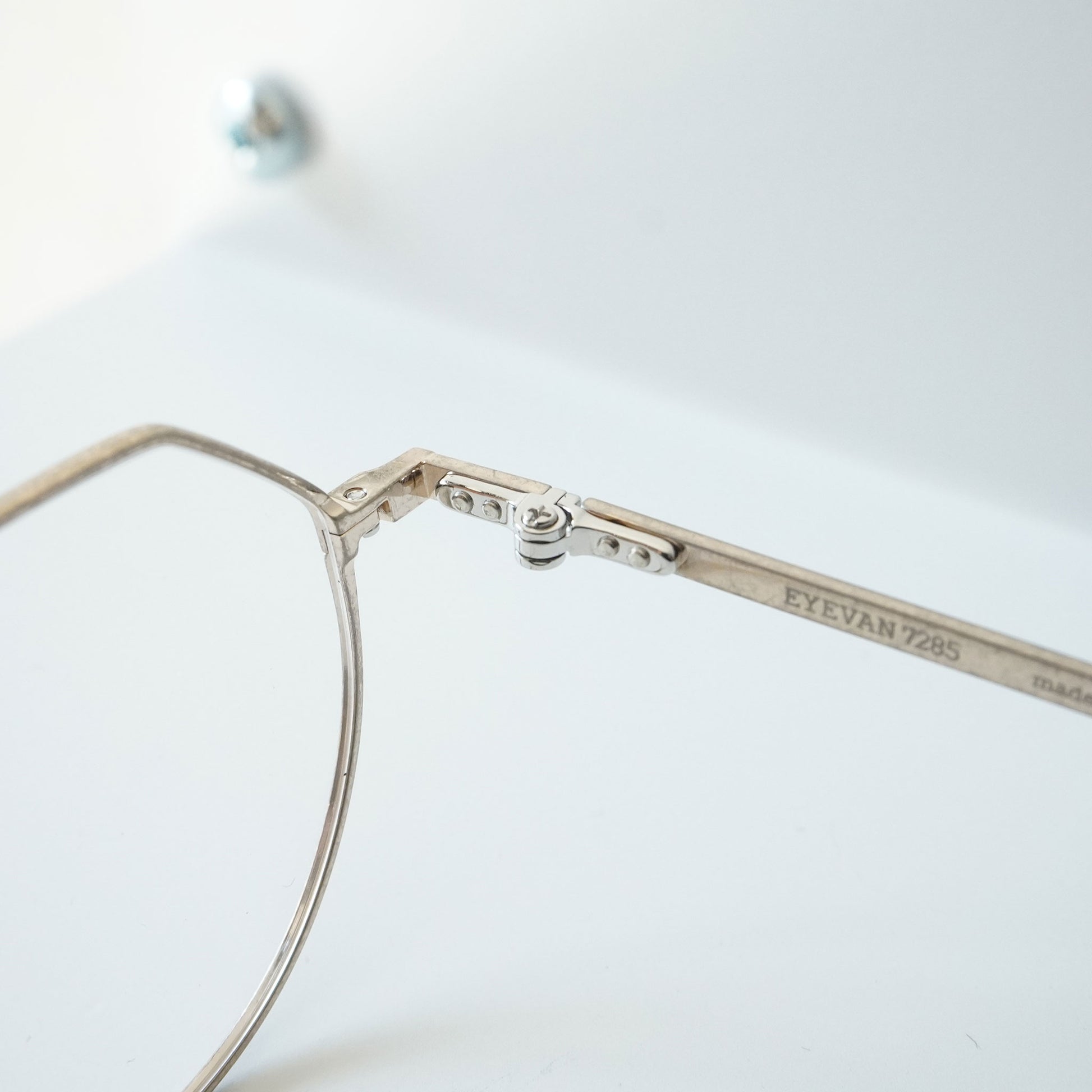 我们将这些众多的设计来源融合在一起,并融入到眼镜产品中。这一理念体现在受 1940 年代法式叉子启发的镜腿、融入 1970 年代眼镜架结构的金属框架,以及受日本古老寺庙的蔓藤花纹启发的图案部件。此外,EYEVAN 7285 产品采用复合生产工艺生产,既有世界级眼镜生产中心福井县鲭江市技艺精湛的眼镜工匠的手工作业,也有采用最新机械的机器制造的产品。这些眼镜融合了传统与新工艺制作而成,很多眼镜乍一看设计简洁随意,但细节却极为精细,许多工序都是由鲭江数量有限的技术精湛的工匠手工完成的。这些眼镜经过一段时间的精心制作,经过约400道工序,可以说是现代手工艺品,而不是工业产品。