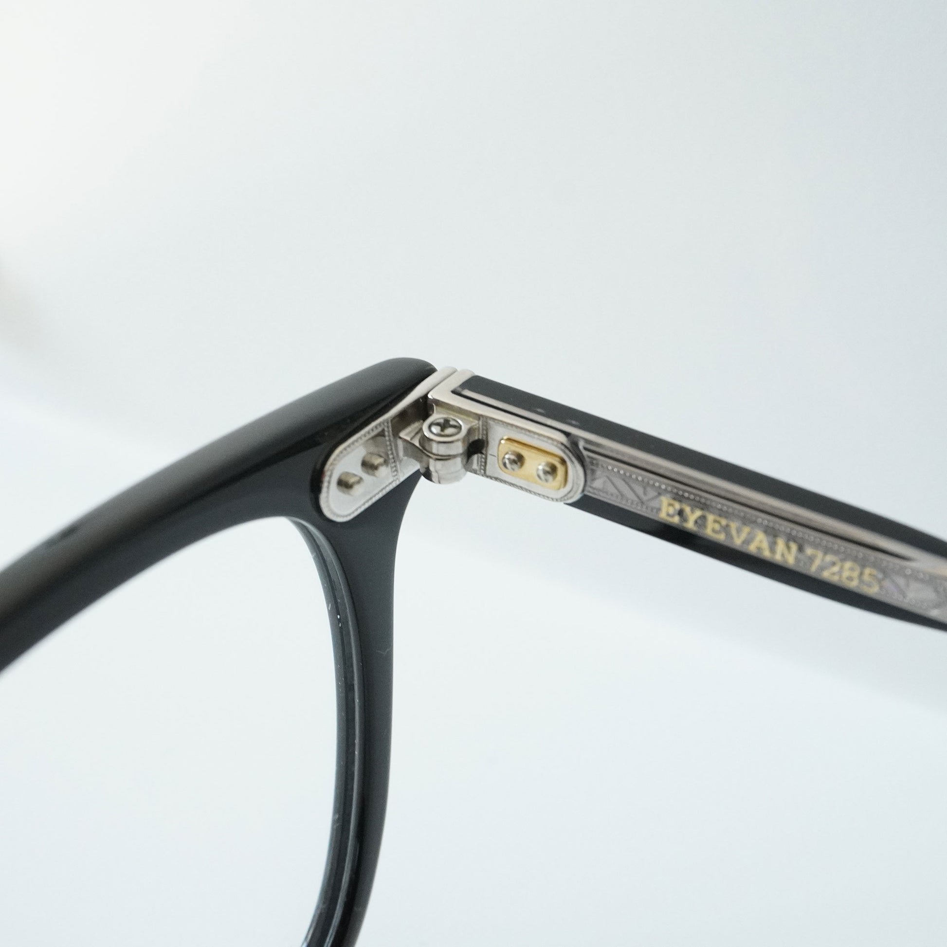 我们将这些众多的设计来源融合在一起,并融入到眼镜产品中。这一理念体现在受 1940 年代法式叉子启发的镜腿、融入 1970 年代眼镜架结构的金属框架,以及受日本古老寺庙的蔓藤花纹启发的图案部件。此外,EYEVAN 7285 产品采用复合生产工艺生产,既有世界级眼镜生产中心福井县鲭江市技艺精湛的眼镜工匠的手工作业,也有采用最新机械的机器制造的产品。这些眼镜融合了传统与新工艺制作而成,很多眼镜乍一看设计简洁随意,但细节却极为精细,许多工序都是由鲭江数量有限的技术精湛的工匠手工完成的。这些眼镜经过一段时间的精心制作,经过约400道工序,可以说是现代手工艺品,而不是工业产品。