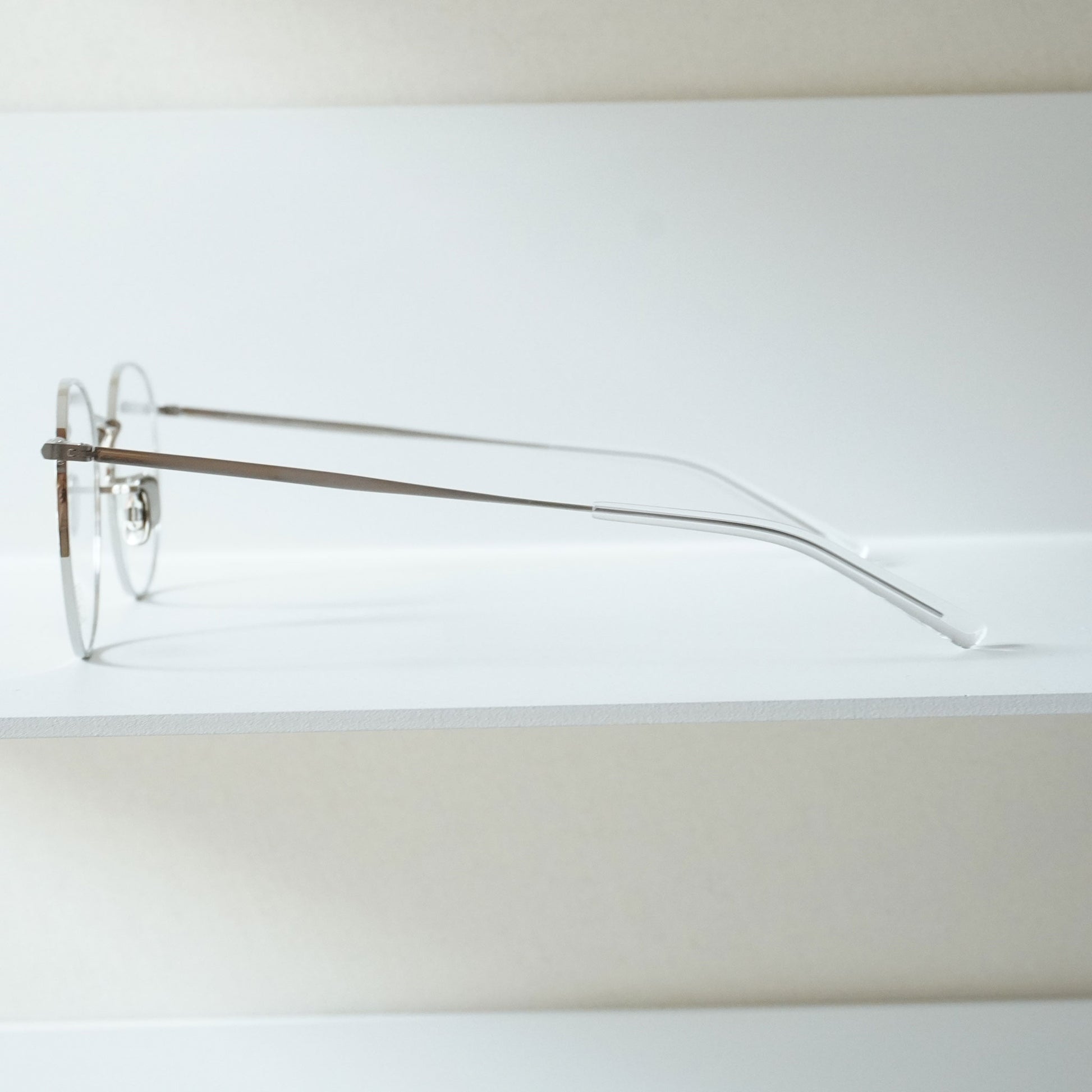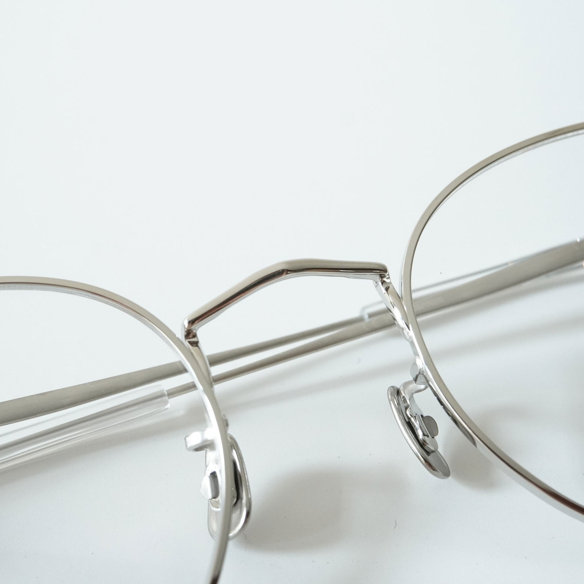 80年代後半にリバー・フェニックスが着用していた眼鏡がデザインソース。その時代感を象徴する大振りなメタルのボストン型が印象的。特徴的な形を有した鎧は一点ずつチタンのブロックから削り出して製造される精緻なパーツ。ブランドのスタンダードになりつつあるアウトセットテンプルやアセテートモダンは本モデルのために新たに作製したもの。ソースとなる時代のざっくりとしたある意味チープな空気感は明確に表現しながら、作り込まれた部位や構造はもっと古い年代の緻密な要素で構成された製品を想起させる不思議な存在感のプロダクト。