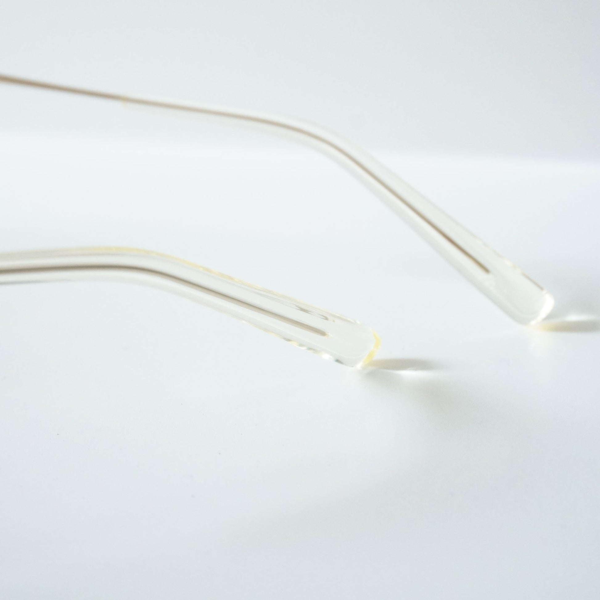 80年代後半にリバー・フェニックスが着用していた眼鏡がデザインソース。その時代感を象徴する大振りなメタルのボストン型が印象的。特徴的な形を有した鎧は一点ずつチタンのブロックから削り出して製造される精緻なパーツ。ブランドのスタンダードになりつつあるアウトセットテンプルやアセテートモダンは本モデルのために新たに作製したもの。ソースとなる時代のざっくりとしたある意味チープな空気感は明確に表現しながら、作り込まれた部位や構造はもっと古い年代の緻密な要素で構成された製品を想起させる不思議な存在感のプロダクト。
