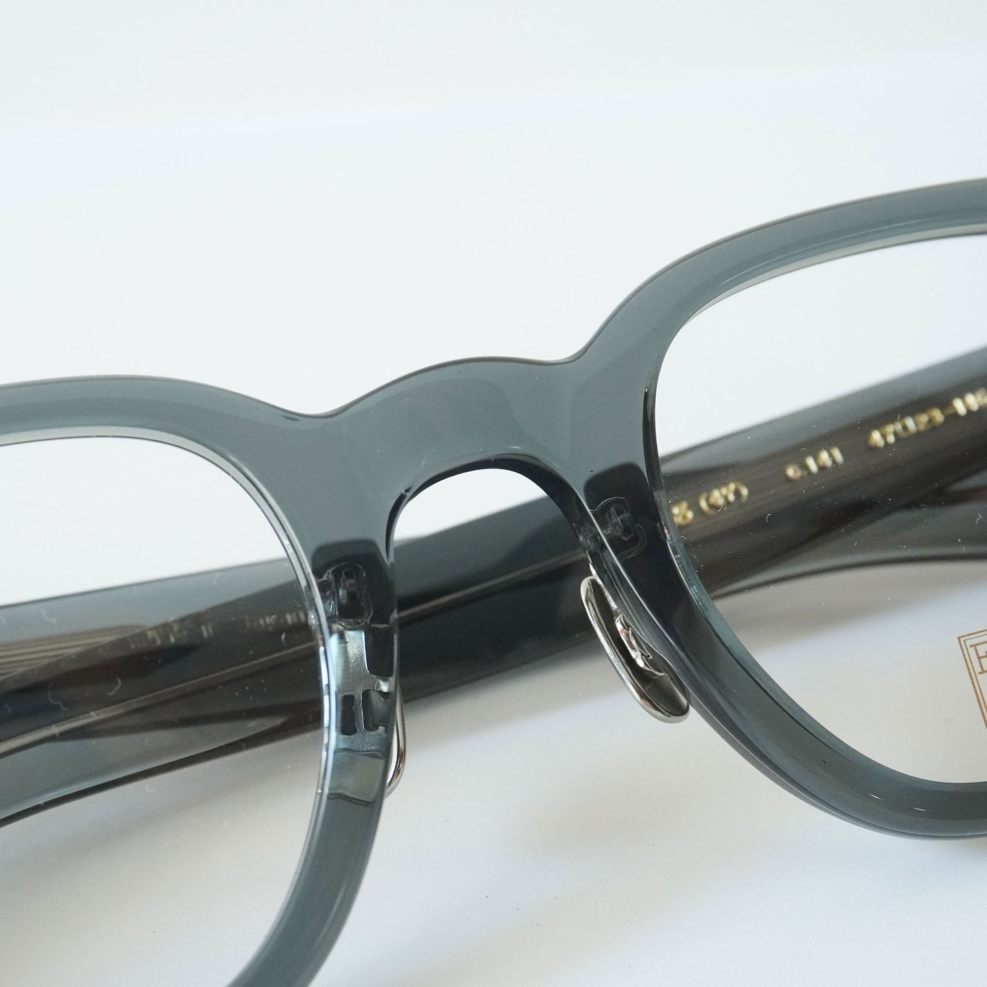 「ブリティッシュヴィンテージとフレンチヴィンテージの中間的なデザイン」という2018年リリースモデル[791]から継続して探求しているテーマに則って作り上げたモデル。ブリティッシュ的な少し野暮ったい雰囲気のスクエア型のレンズシェイプにフレンチを想起させる吊り上がった智を組み合わせ、コンセプトイメージを具現化。フロントには古い民家の屋根の瓦をデザインソースとしたサンプラチナ製の飾りカシメを設置した。