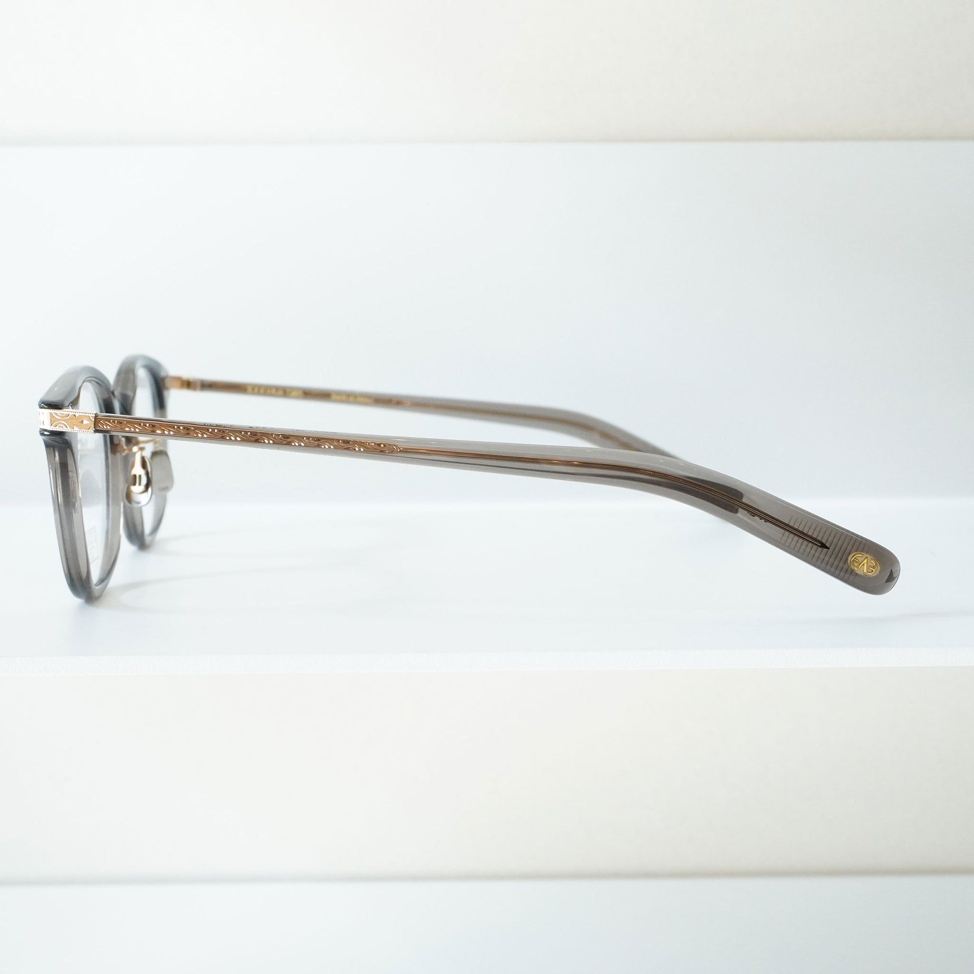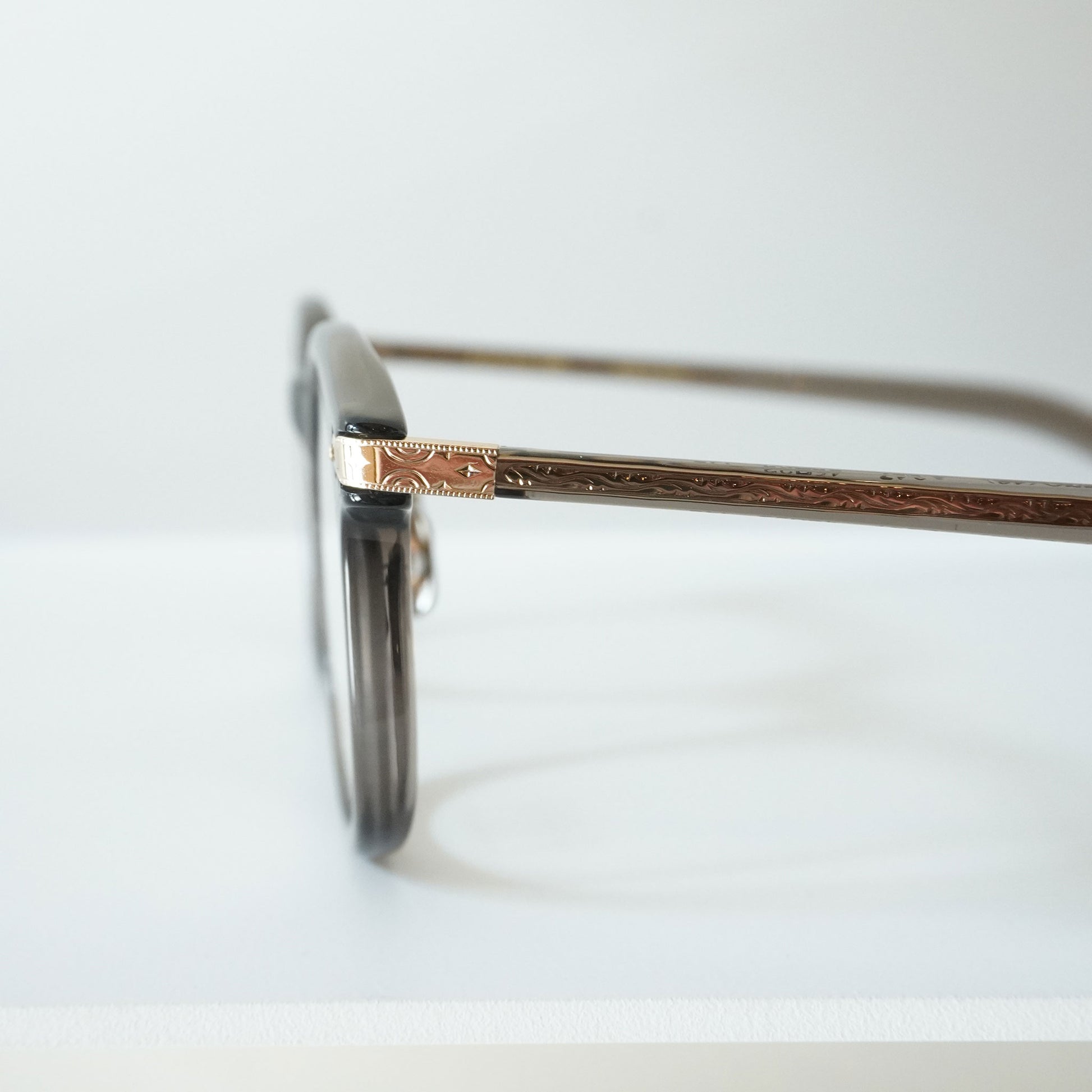 2017年発売の[770]で採用した唐草ヨロイパーツを用いた新型。掛けやすいウェリントン型、ビジネスシーンでも使用できる知的で上品な印象のメガネです。太すぎず細すぎずなちょうどいい厚みと幅広い方に合いやすいサイズ感が人気です。
