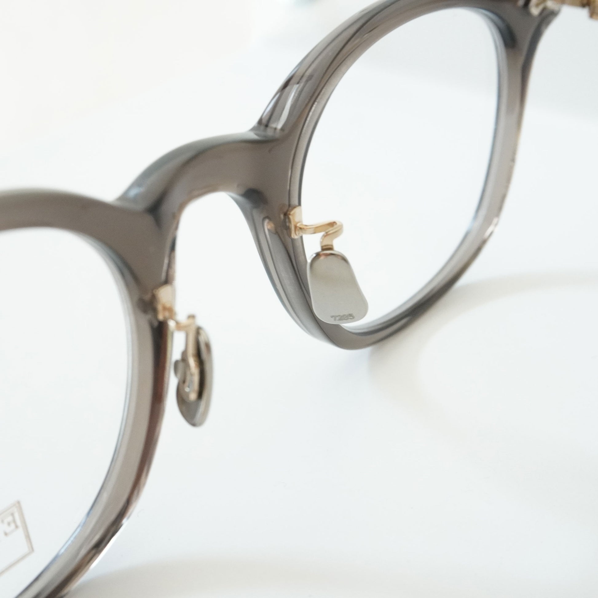 ヨロイ裏側に表側と同じ形の台座を設置し、カシメピンとマイナスネジのWロックで強固に固定するという7285独自の構造。オーセンティックかつ独自性のあるレンズシェイプが特徴的な[770]を46サイズにリサイズしました。