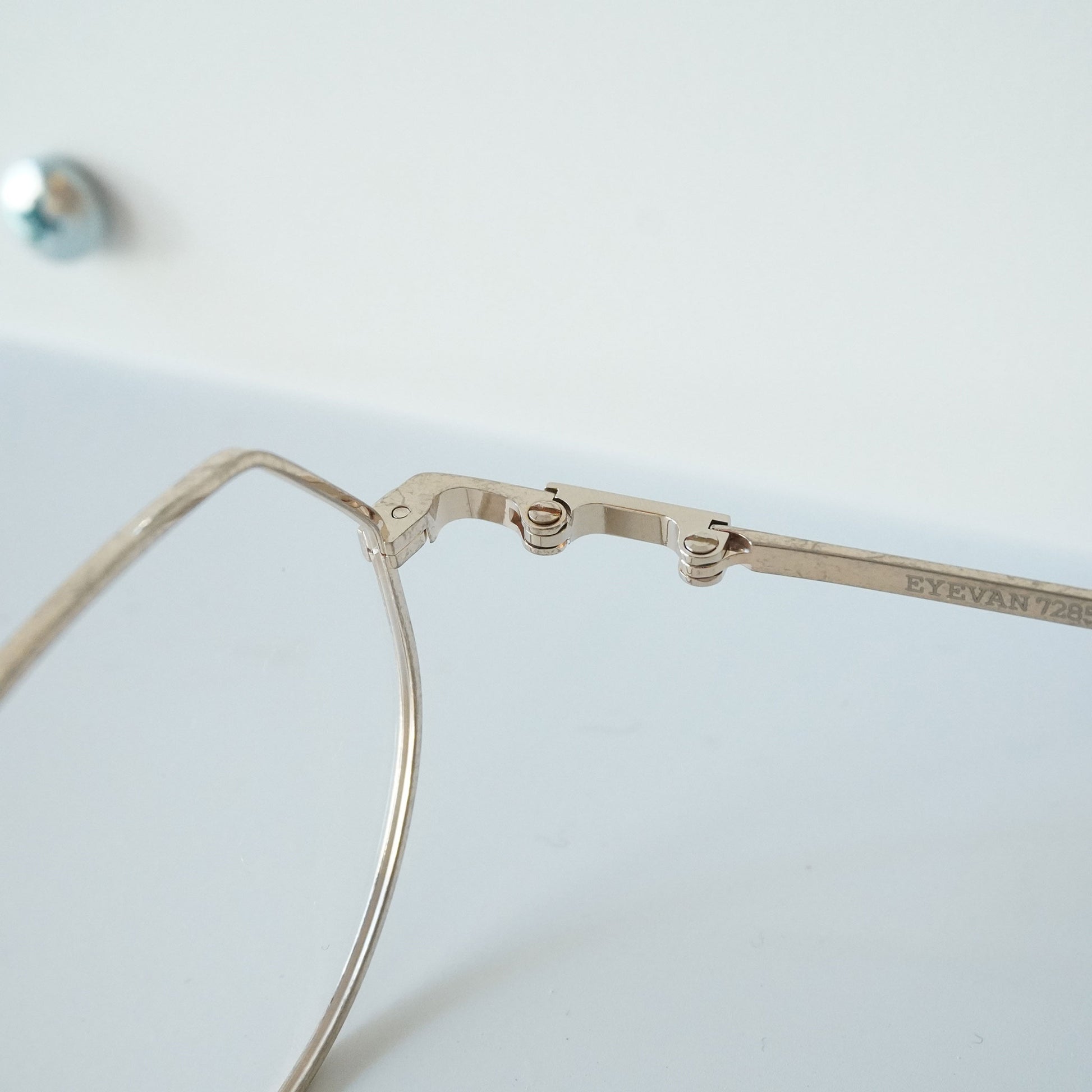 我们将这些众多的设计来源融合在一起,并融入到眼镜产品中。这一理念体现在受 1940 年代法式叉子启发的镜腿、融入 1970 年代眼镜架结构的金属框架,以及受日本古老寺庙的蔓藤花纹启发的图案部件。此外,EYEVAN 7285 产品采用复合生产工艺生产,既有世界级眼镜生产中心福井县鲭江市技艺精湛的眼镜工匠的手工作业,也有采用最新机械的机器制造的产品。这些眼镜融合了传统与新工艺制作而成,很多眼镜乍一看设计简洁随意,但细节却极为精细,许多工序都是由鲭江数量有限的技术精湛的工匠手工完成的。这些眼镜经过一段时间的精心制作,经过约400道工序,可以说是现代手工艺品,而不是工业产品。