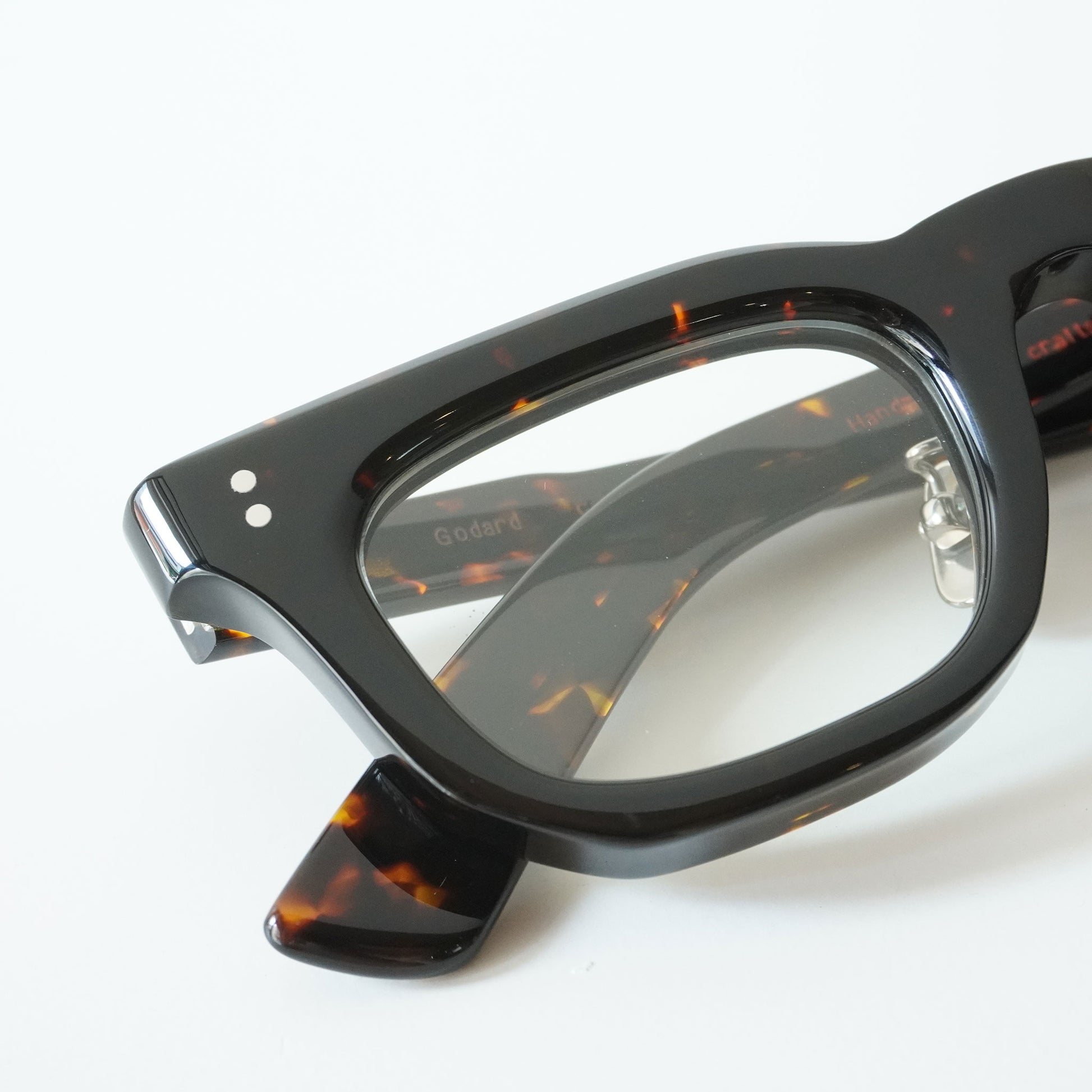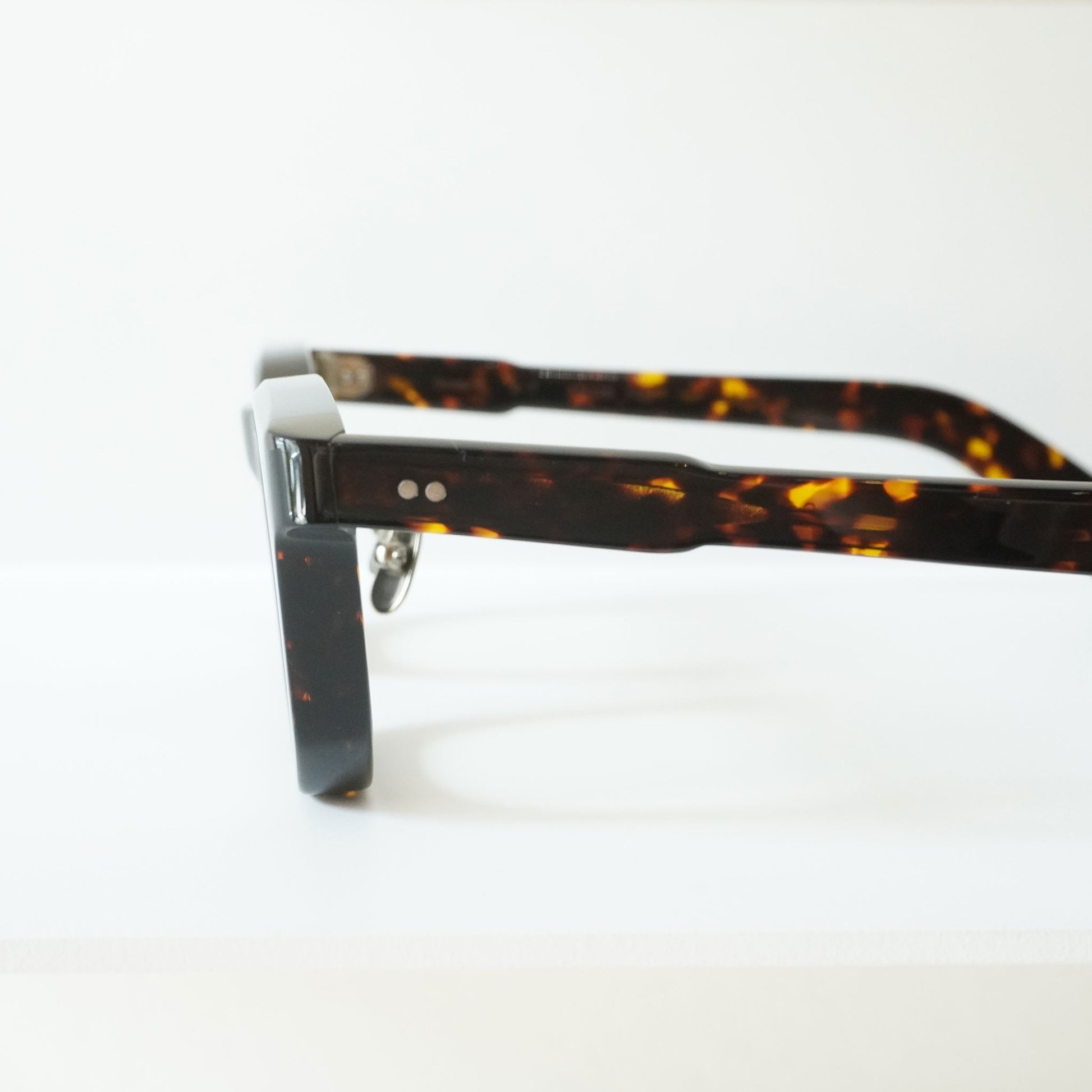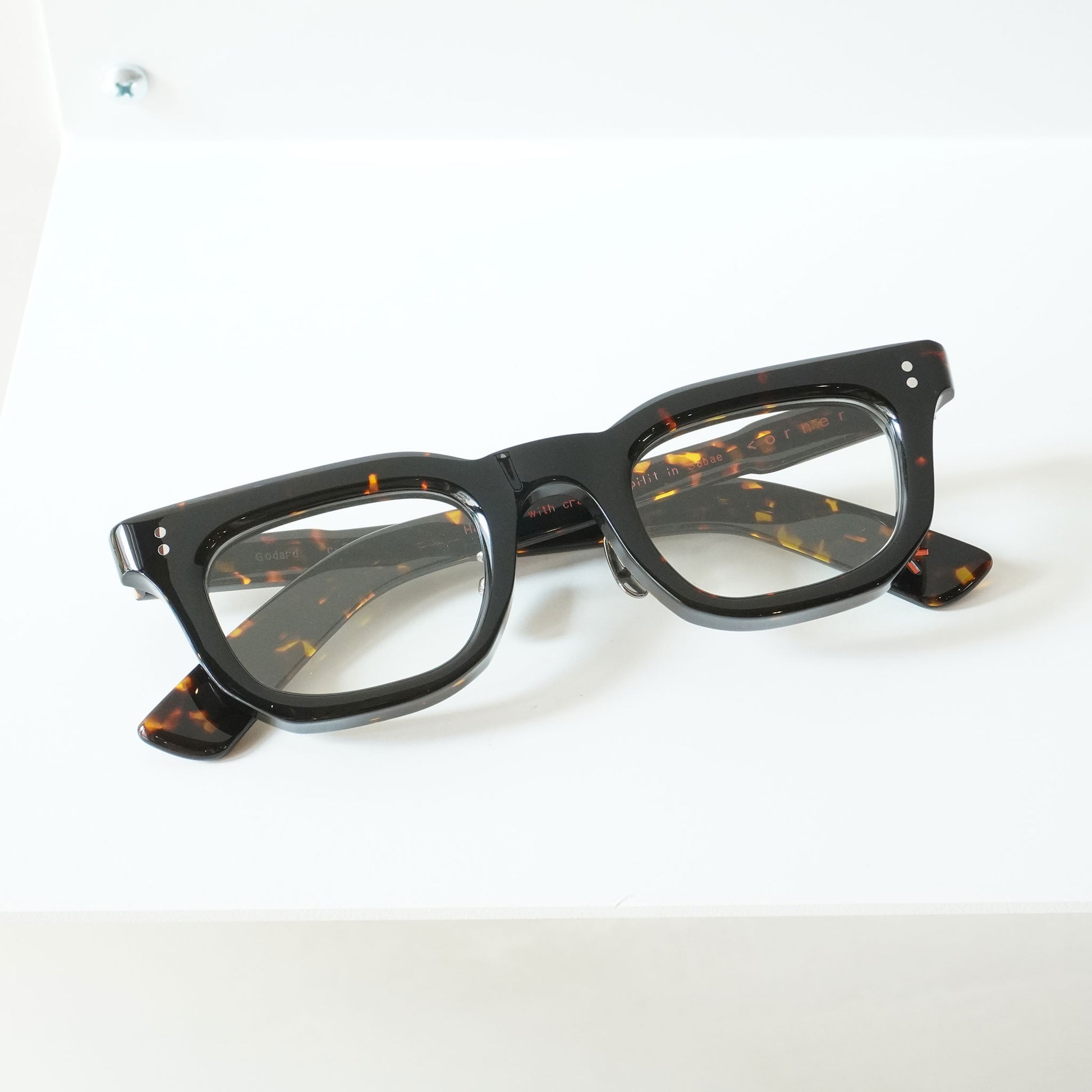 フランスを代表する映画監督ジャン=リュック・ゴダール氏をイメージして作成されたデザイン。ベースはフレンチアーネルでありながらゴダール氏のミステリアスな色気を落とし込み独特な存在感を演出しています。7mm厚のリムとシャープで直線的なデザインがクラシック×現代的を表現しています。
