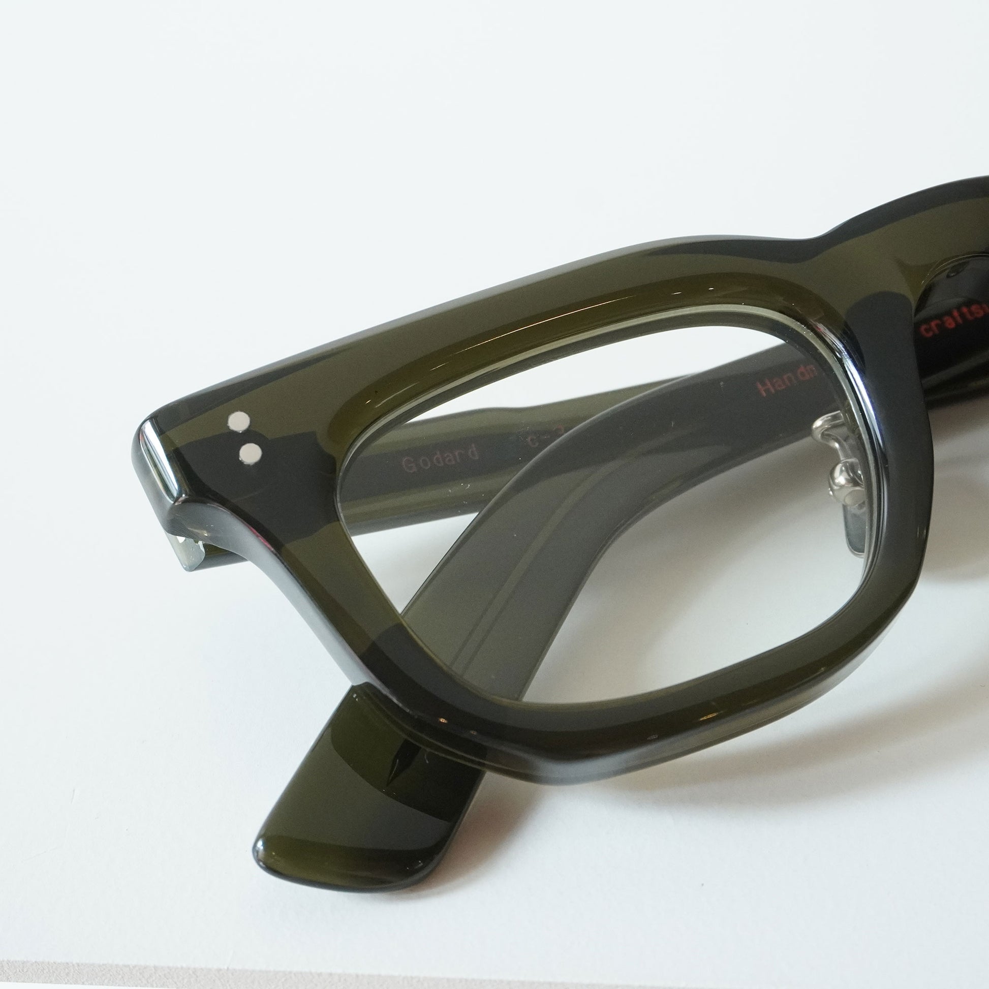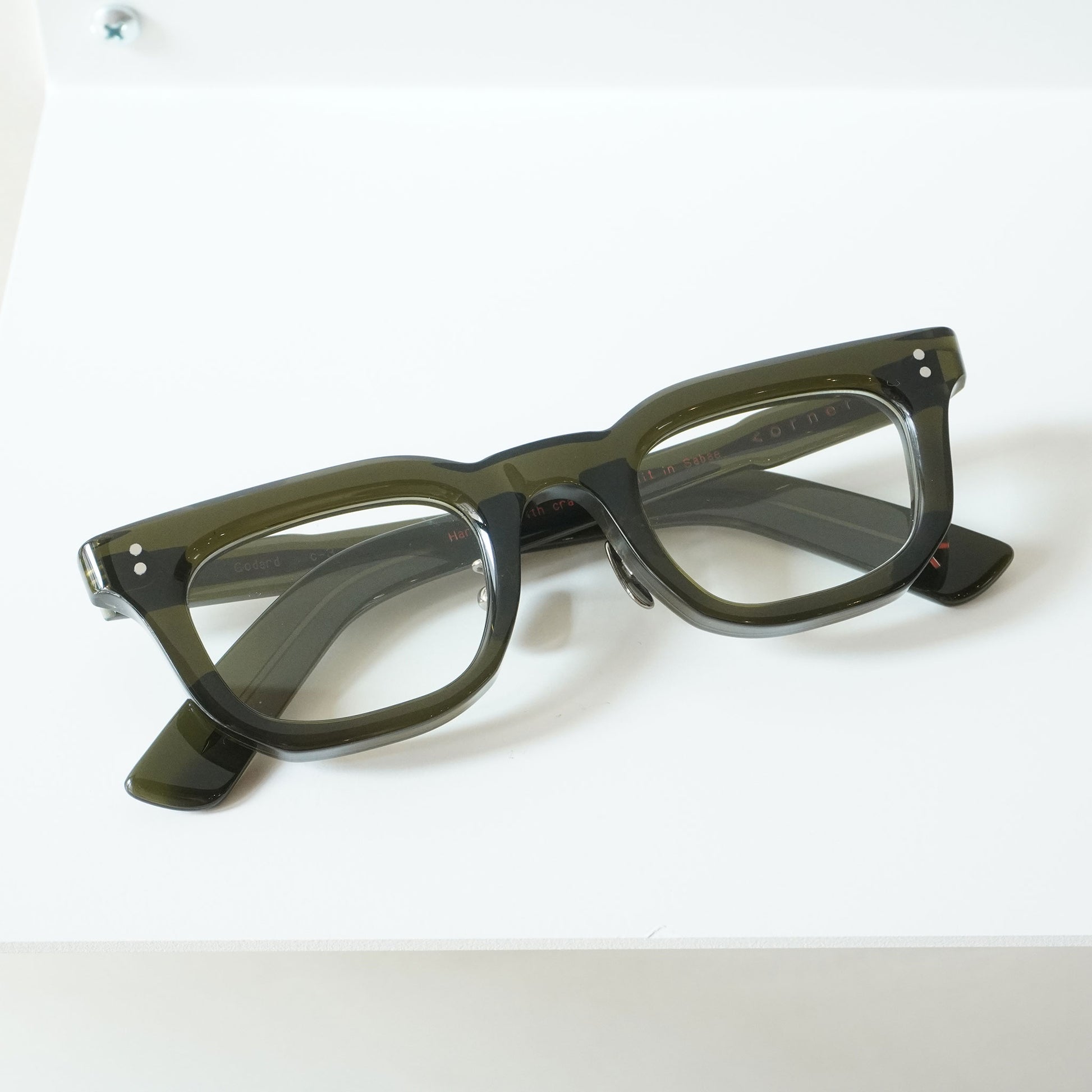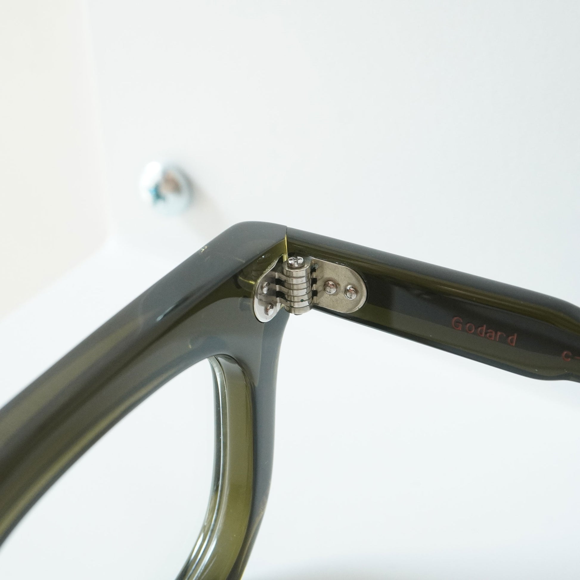 フランスを代表する映画監督ジャン=リュック・ゴダール氏をイメージして作成されたデザイン。ベースはフレンチアーネルでありながらゴダール氏のミステリアスな色気を落とし込み独特な存在感を演出しています。7mm厚のリムとシャープで直線的なデザインがクラシック×現代的を表現しています。