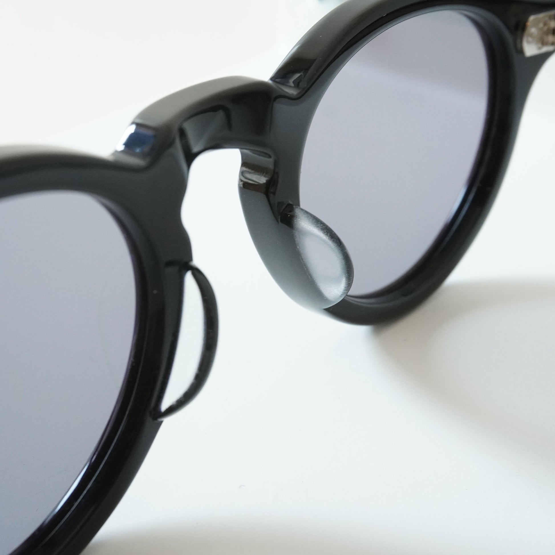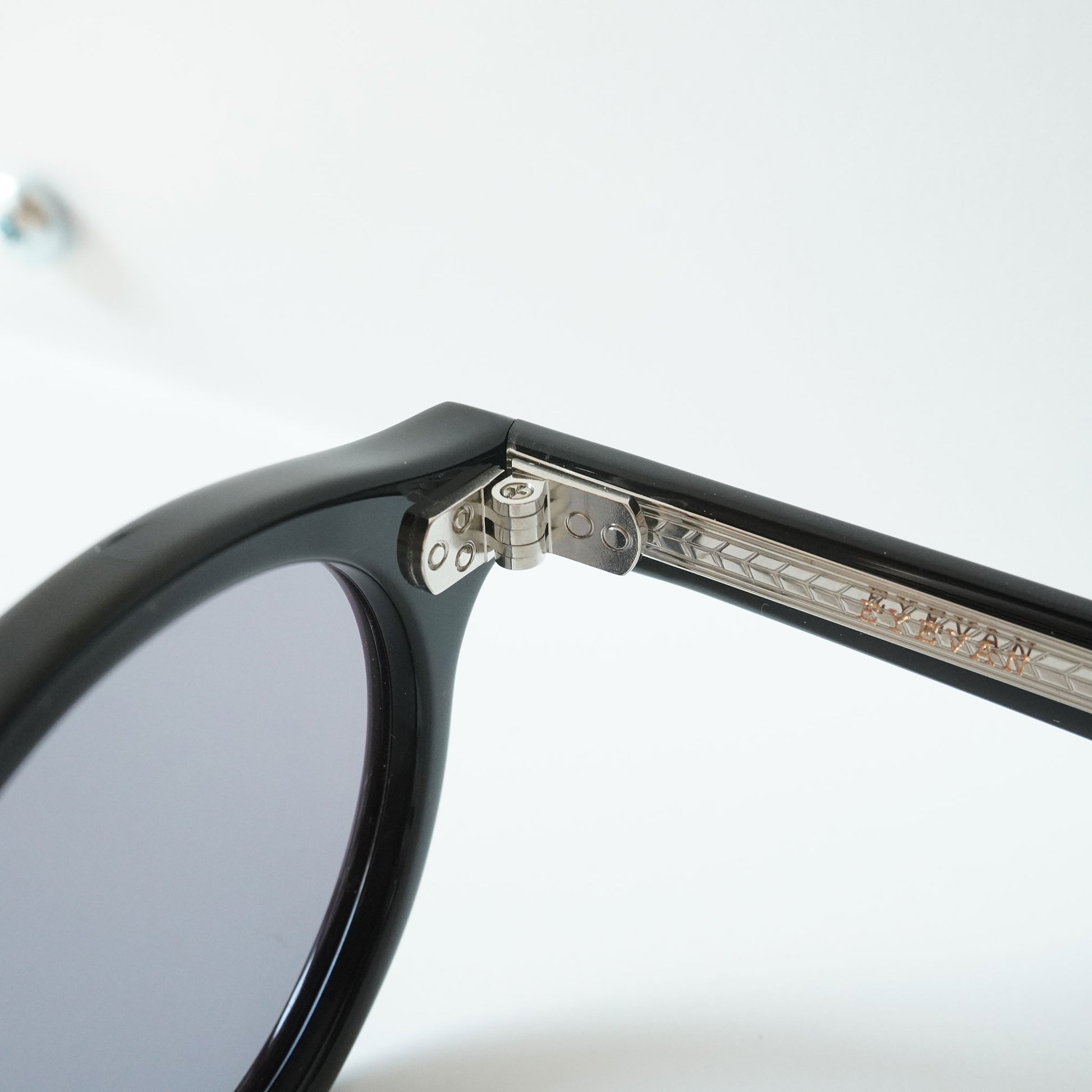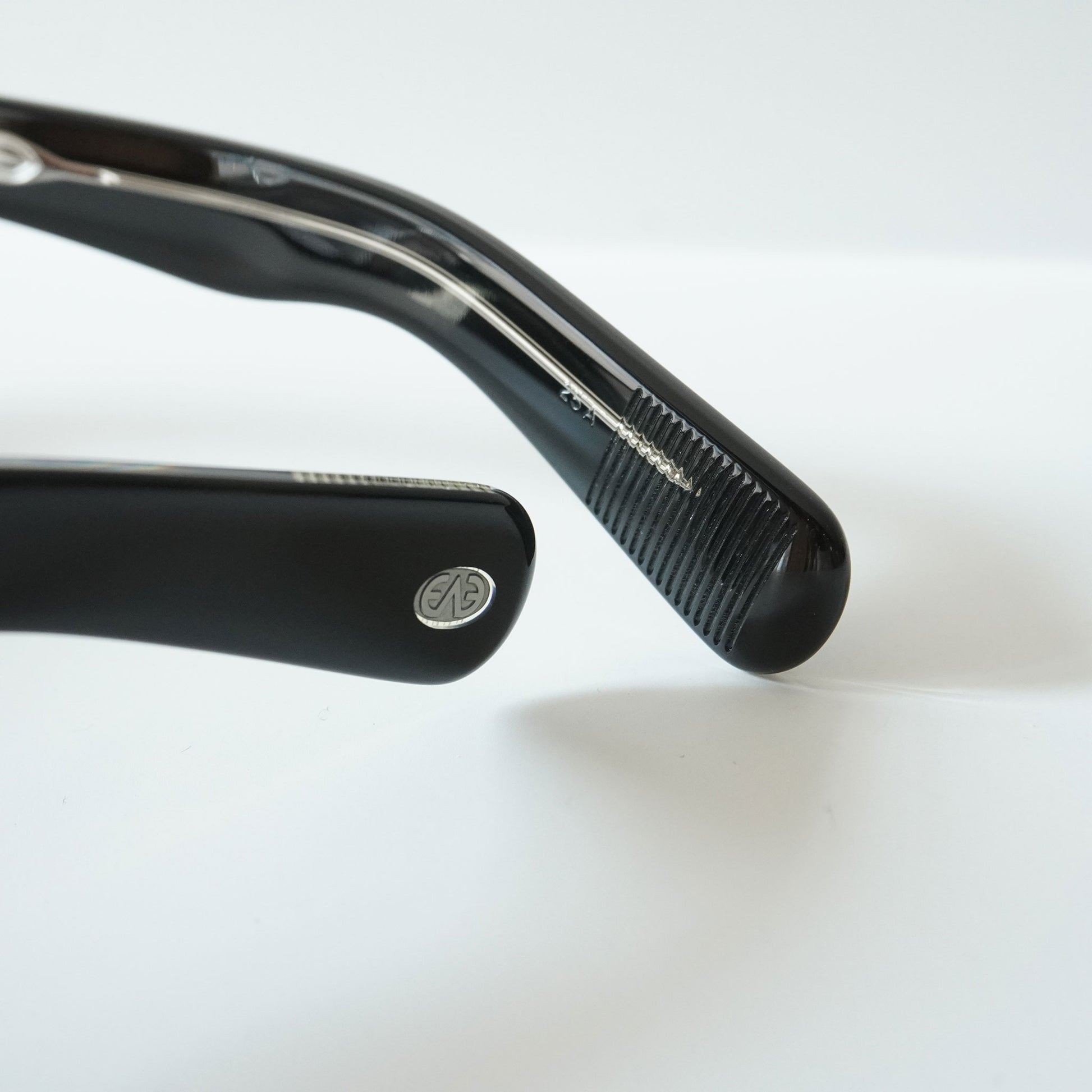 エッヂのある肉厚なフロントと極太なワイドテンプルによって表現した、フレンチヴィンテージシリーズのニューモデル。60年代のフレンチヴィンテージの中でも名作として知られるラウンドパントフレームをベースに徐々に厚みを加えてリデザインしたフロントに、40年代以前のノー芯で作られたヴィンテージフレームの独特な雰囲気を持つテンプルデザインをあわせた。製法は独自の置き丁番でのカシメ技法を採用し、EYEVANが考えるフレンチヴィンテージをネクストヴィンテージとして更に一歩先へ進めたモデル。