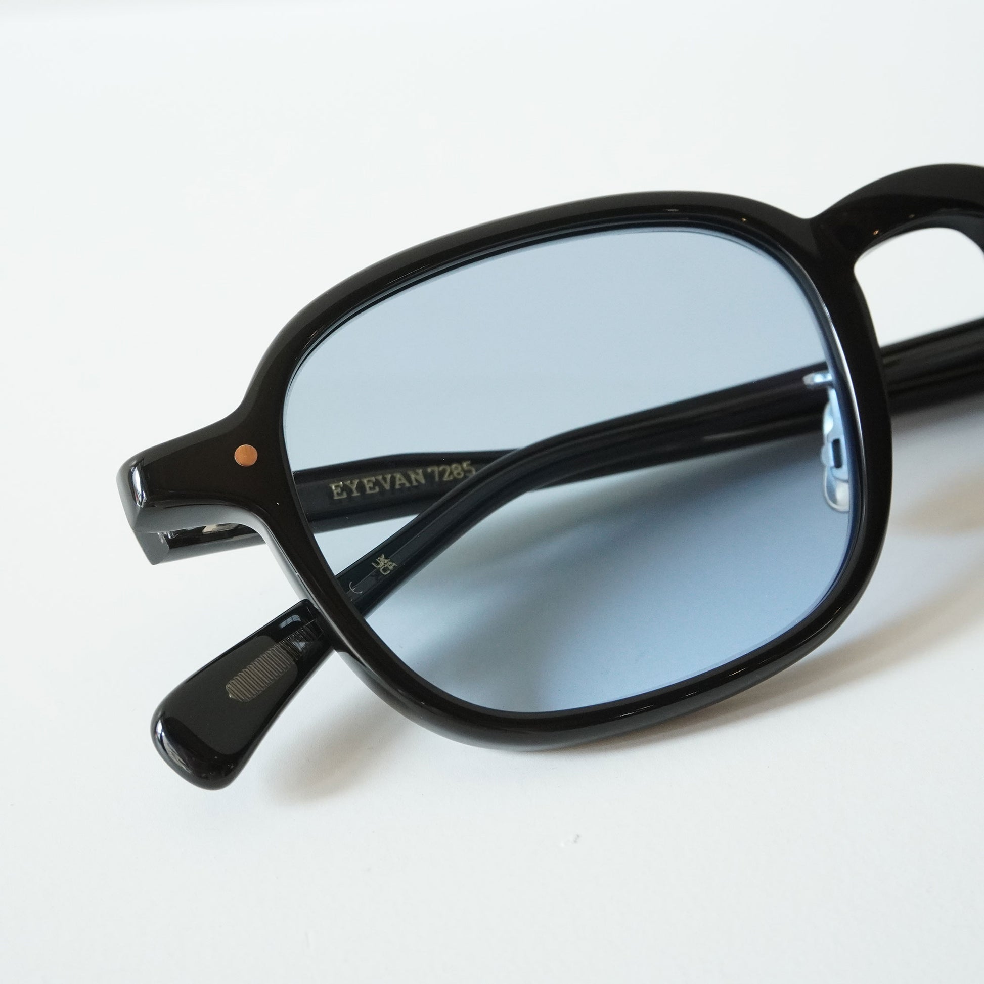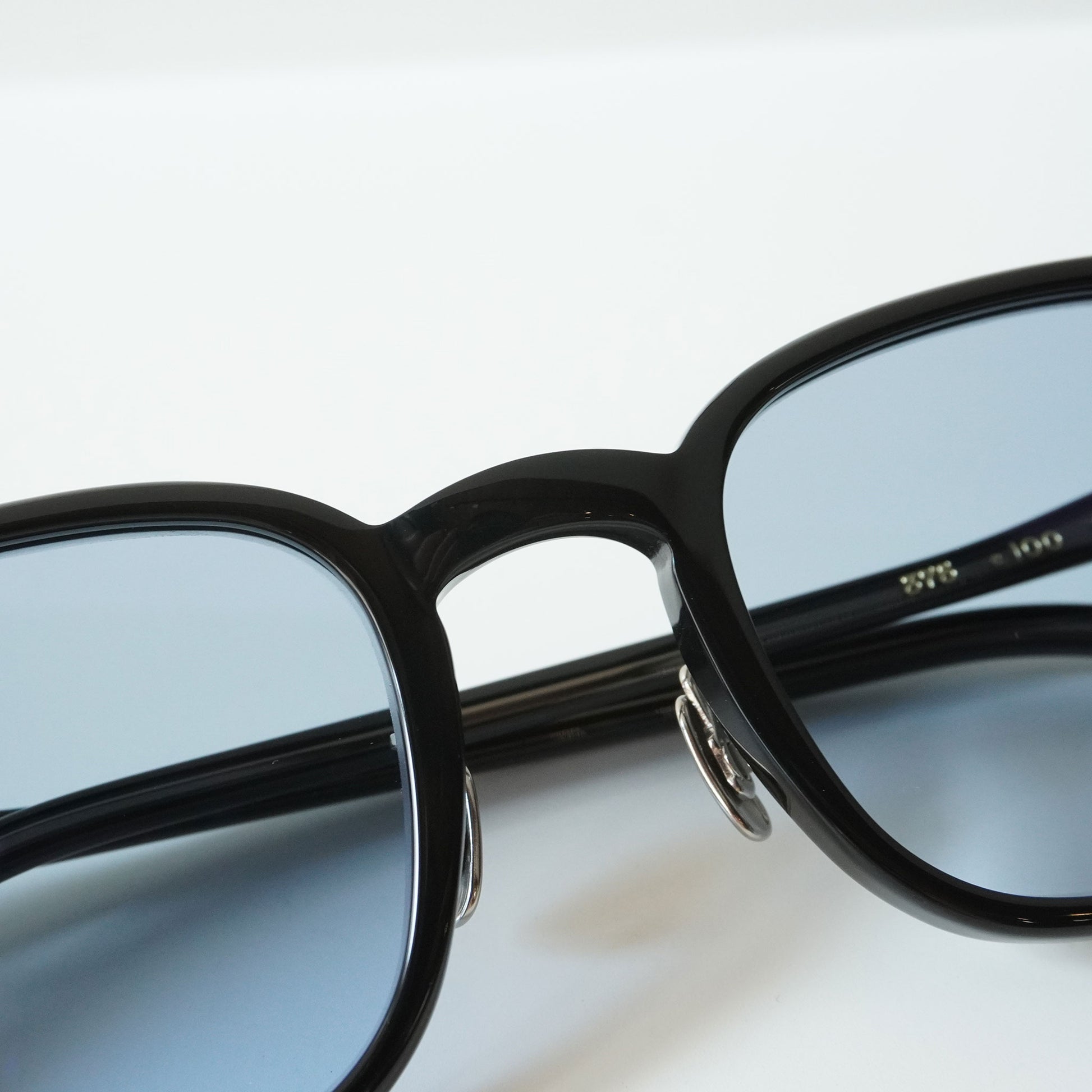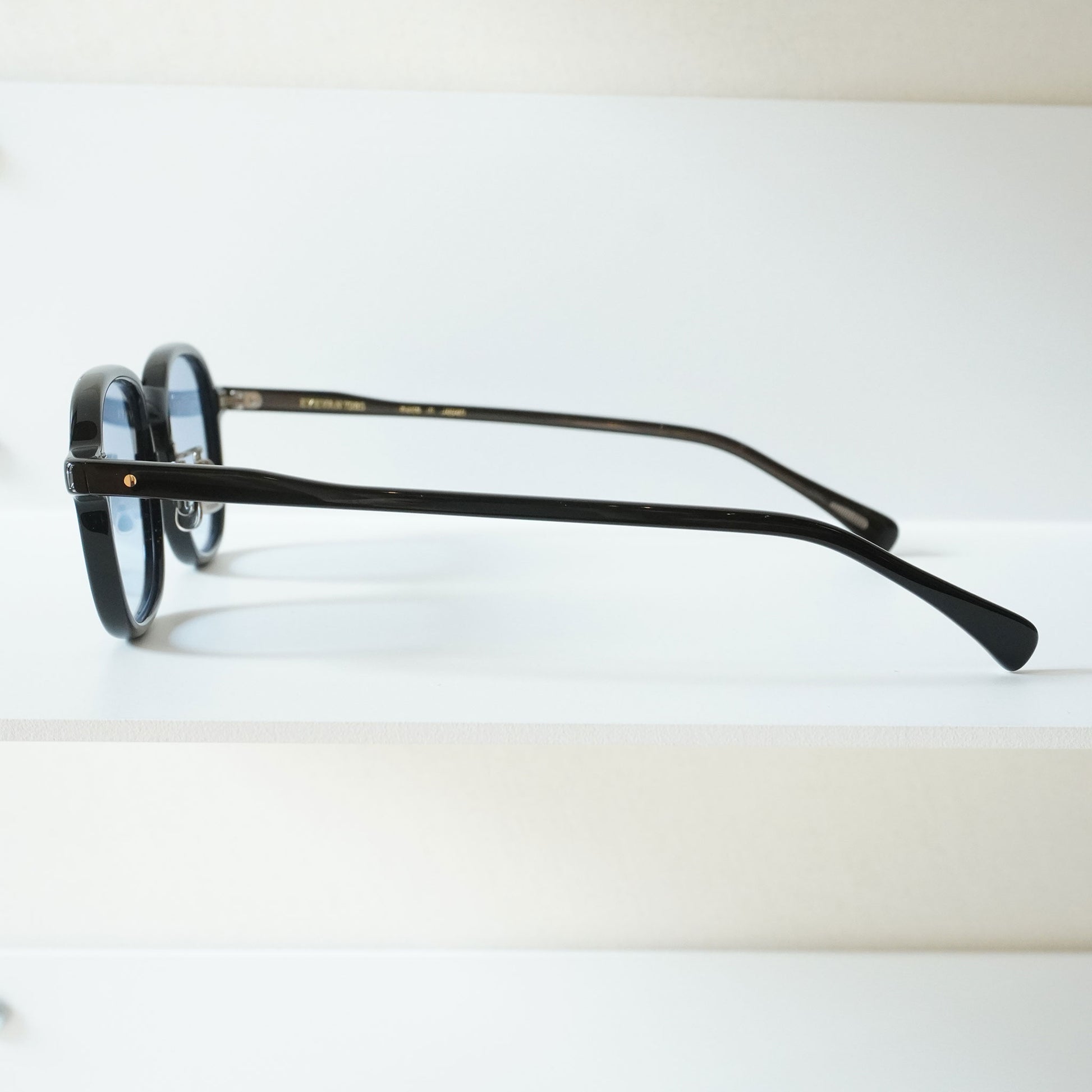 25SSでリリースした「365」型芯張りテンプルを採用したモデル。やや下がった智と柔らかい線で構成された温かみのあるスクエア シェイプは工場で使用する“カニメ”という呼称の治具に形が近いことから蟹目型と呼ばれている。合口部に向けて膨らんだ形状を有したテンプルは50年代のフレンチヴィンテージからサンプリングしたもの。華美なテンプル芯を見せることを目的とした芯張りではなく、シューティングでは作れない特徴的なテンプルのアウトラインを具現化する手段としてこの製法を用いた。ブランドのシグネチャーとなる埋め込み丁番1PINカシメ構造はK10のリベットを採用。執拗なまでのこだわりや創作思考を基調としながらも完成像は極めて静かな存在感に収めている。サングラスは色味の調合を金属の粒子などを混ぜ合わせて調色し、溶解後に一枚ずつ成形して製作する日本製ガラスレンズのオリジナル“アイヴァンカーブレンズ”を採用。