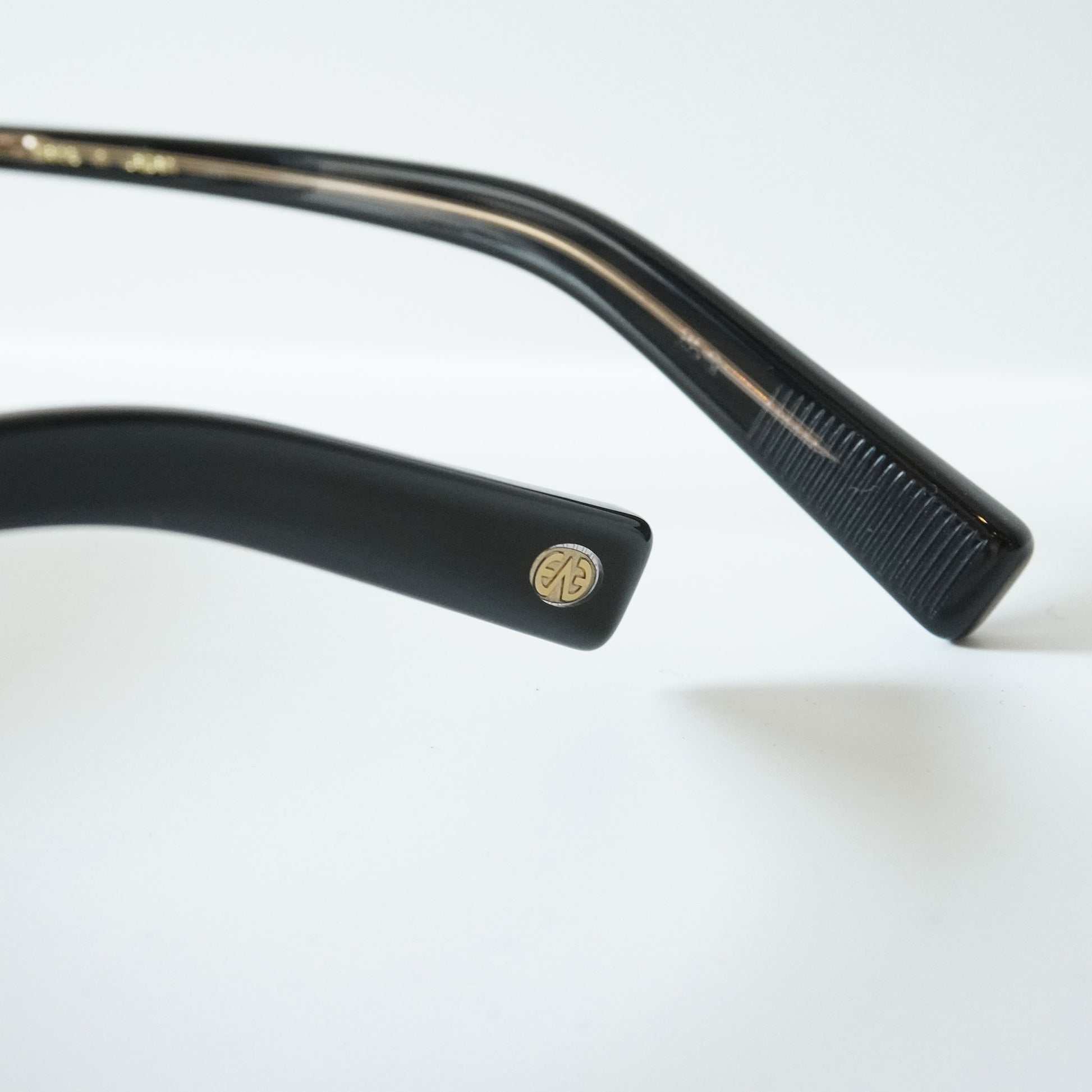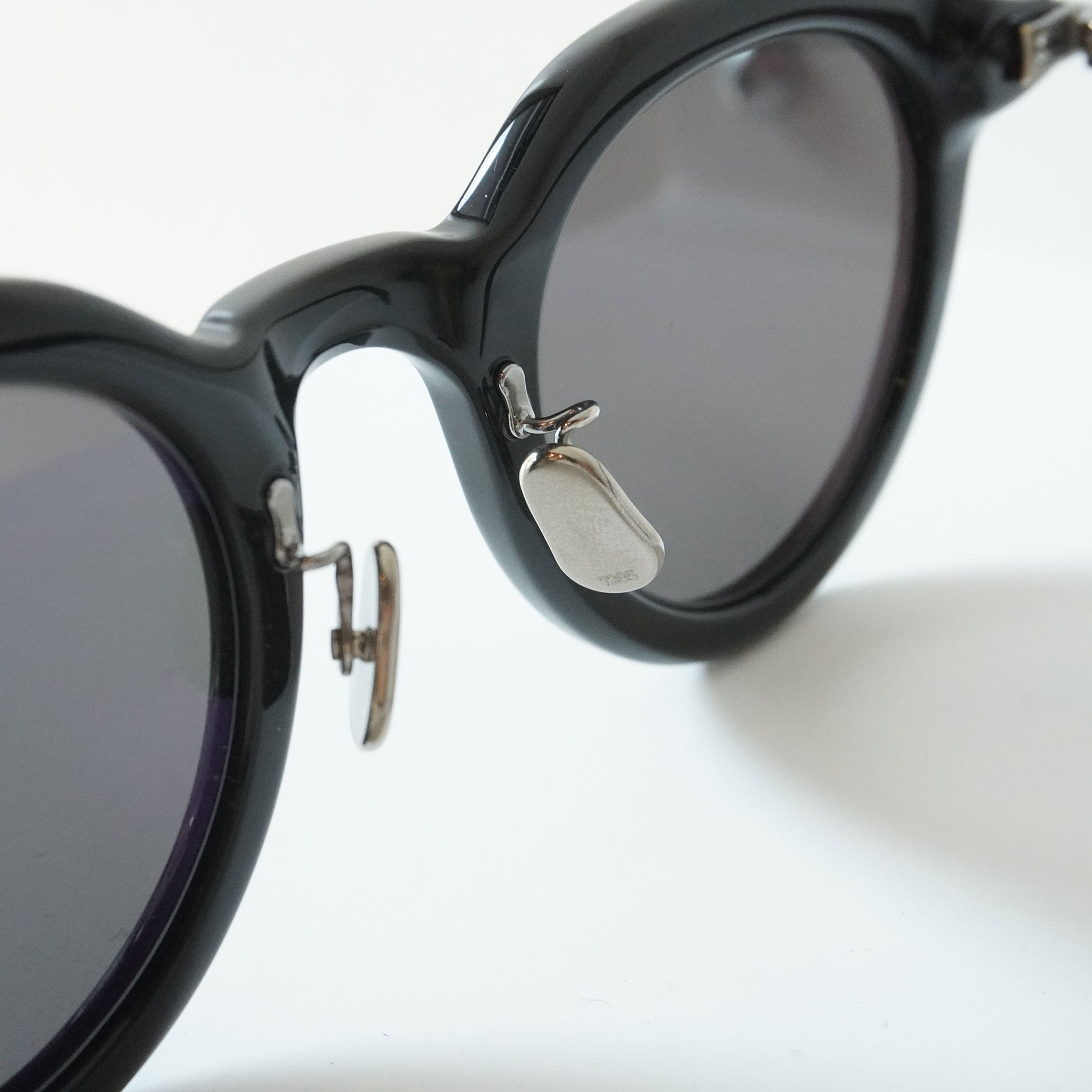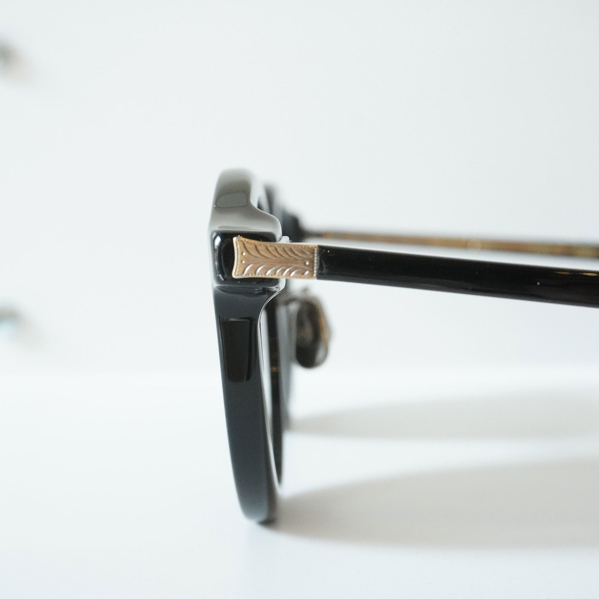 新たにオリジナルで作製した日本製の偏光フラットガラスレンズを採用したモデル。この特別なレンズに合わせて開発したヨロイパーツは横から座掘りを入れて取り付けたパーツを後ろからネジ止めするという特殊な構造。ヨロイの柄が持つクラシックな印象に、少しモダンなイメージでデザインした玉型を組み合わせ、古さと新しさが同居する独創的な雰囲気に仕上げた。上部のラインがシャープな印象のボストン型の740と、智が落ちた柔らかいラインのウェリントン型の741の2型で展開。