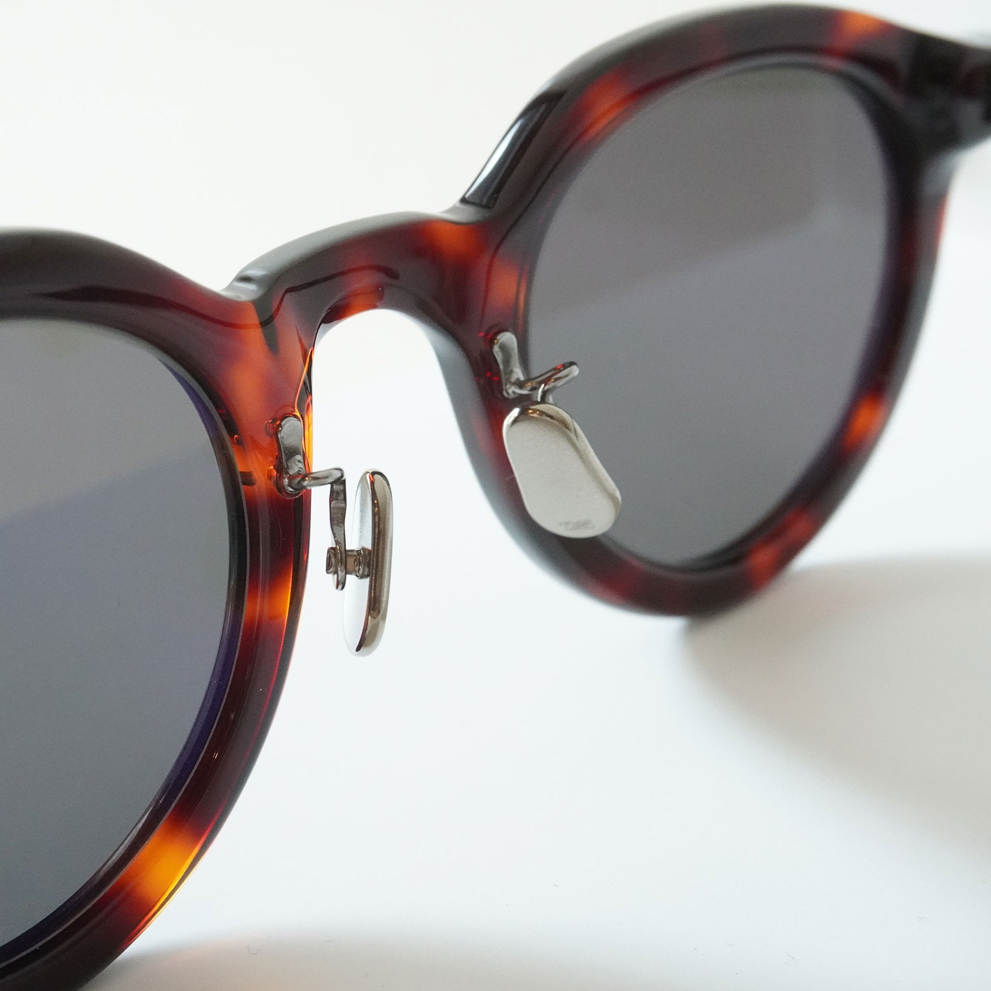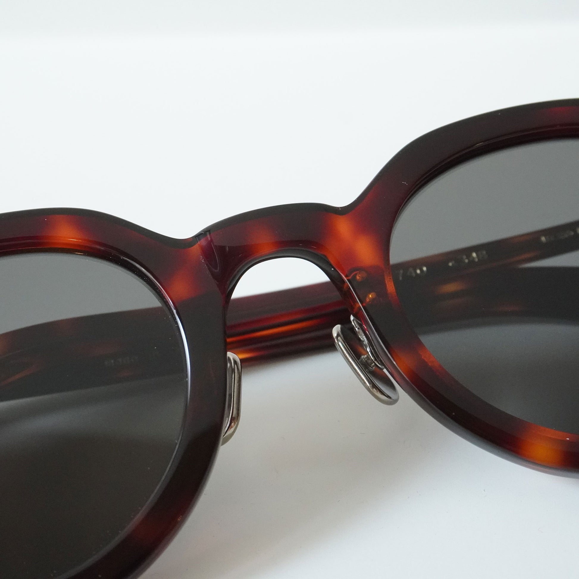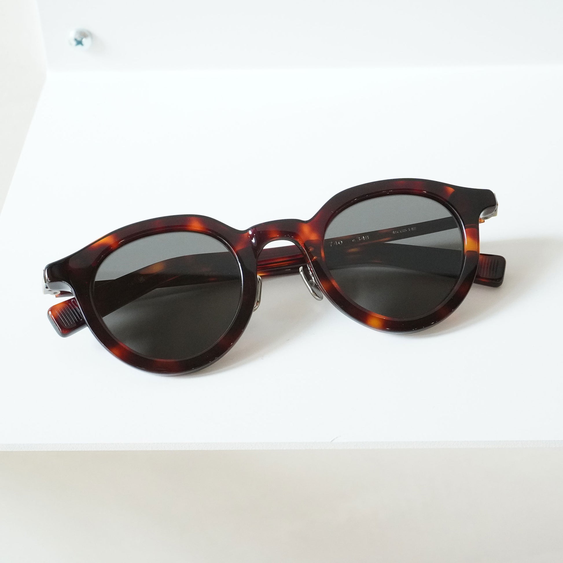 新たにオリジナルで作製した日本製の偏光フラットガラスレンズを採用したモデル。この特別なレンズに合わせて開発したヨロイパーツは横から座掘りを入れて取り付けたパーツを後ろからネジ止めするという特殊な構造。ヨロイの柄が持つクラシックな印象に、少しモダンなイメージでデザインした玉型を組み合わせ、古さと新しさが同居する独創的な雰囲気に仕上げた。上部のラインがシャープな印象のボストン型の740と、智が落ちた柔らかいラインのウェリントン型の741の2型で展開。